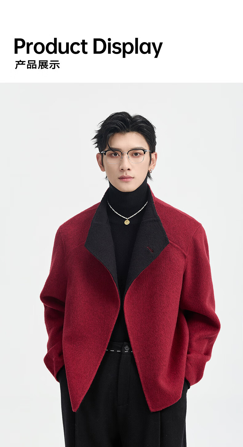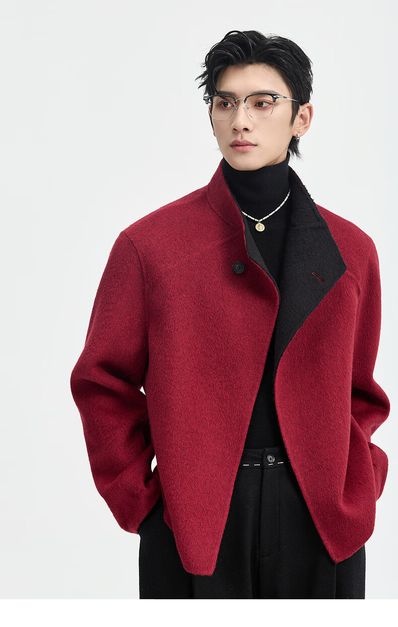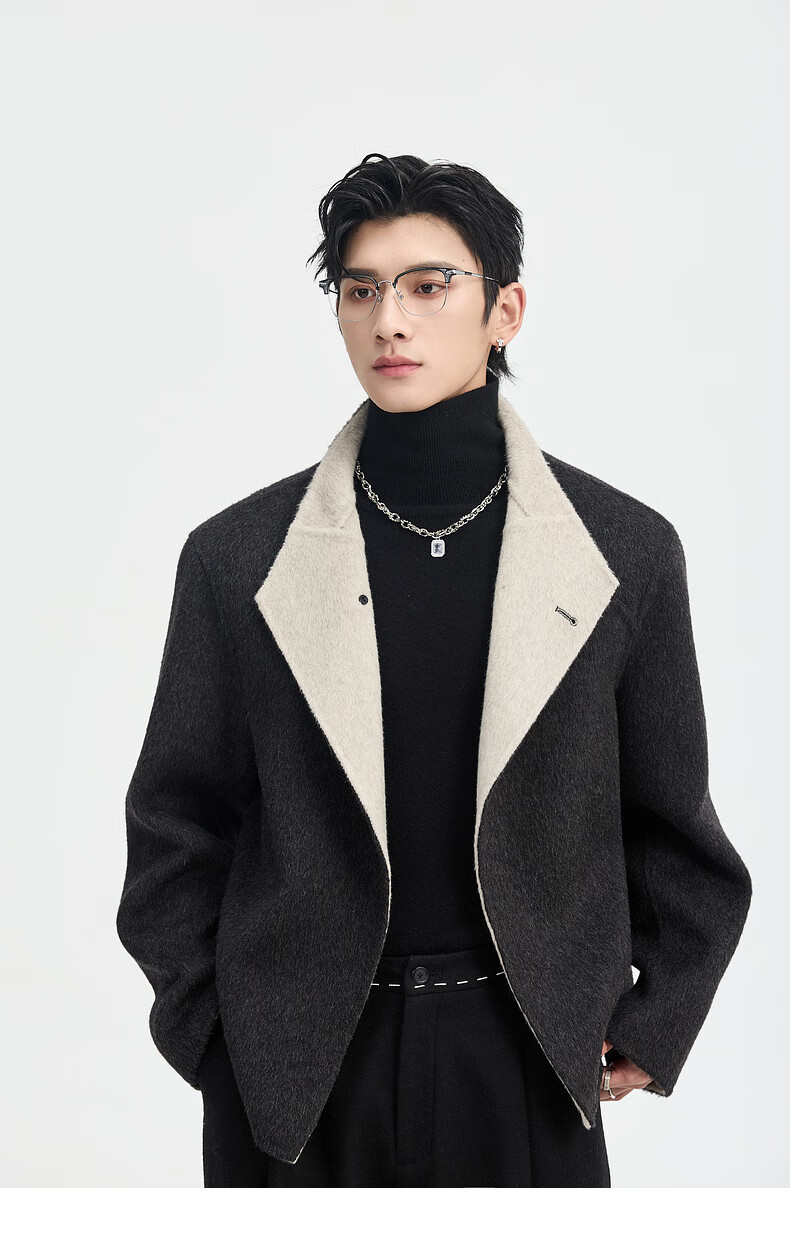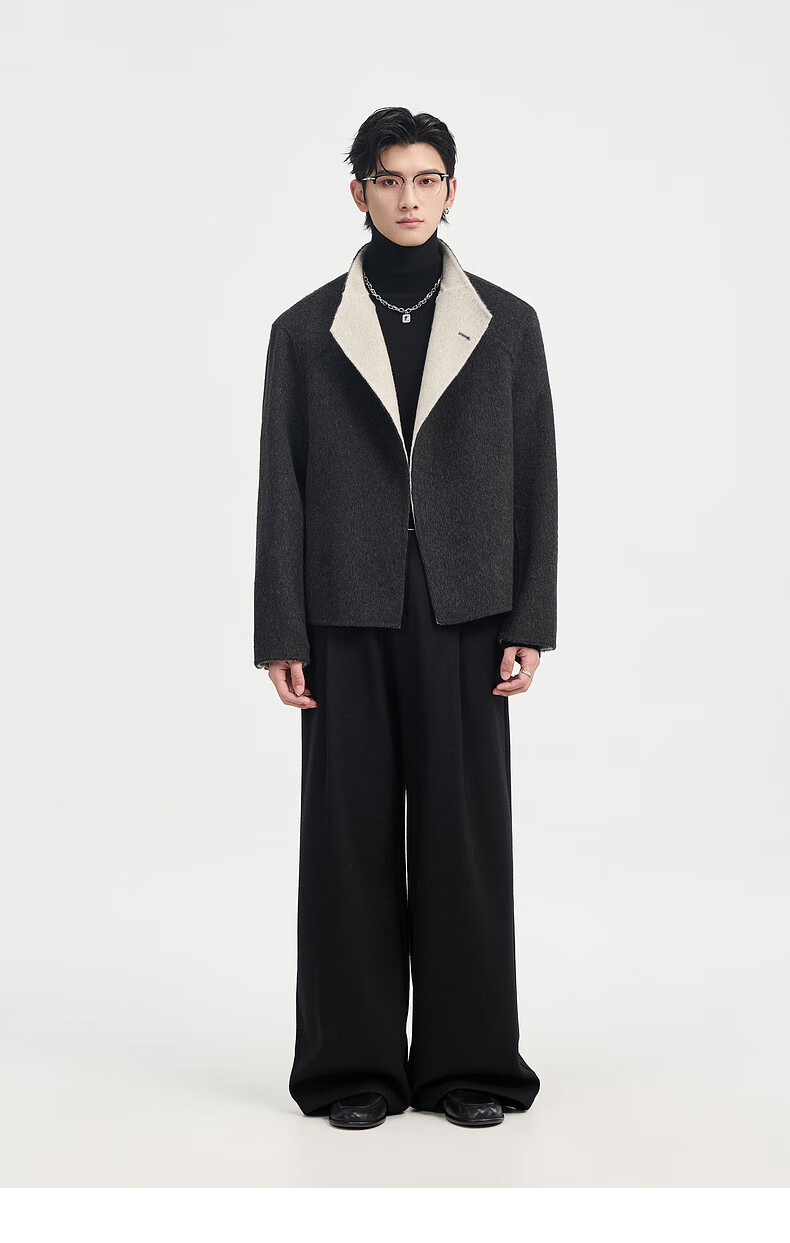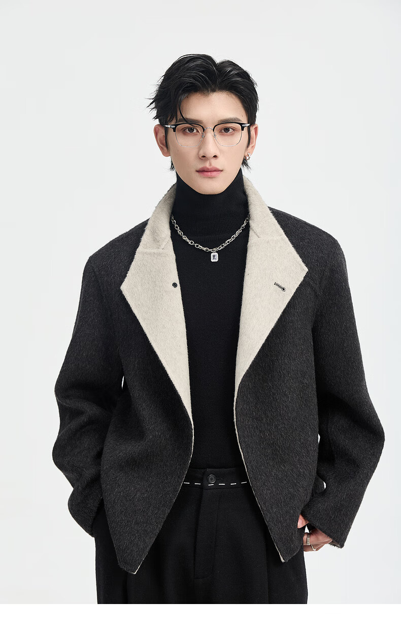 Earl Zall Wool Stand Collar Contrast Color Double-sided Wool Jacket Men's 2025 Autumn and Winter Short New Year's Coat Z541605 Moon Shadow Gray L (175)