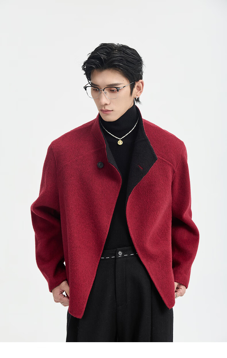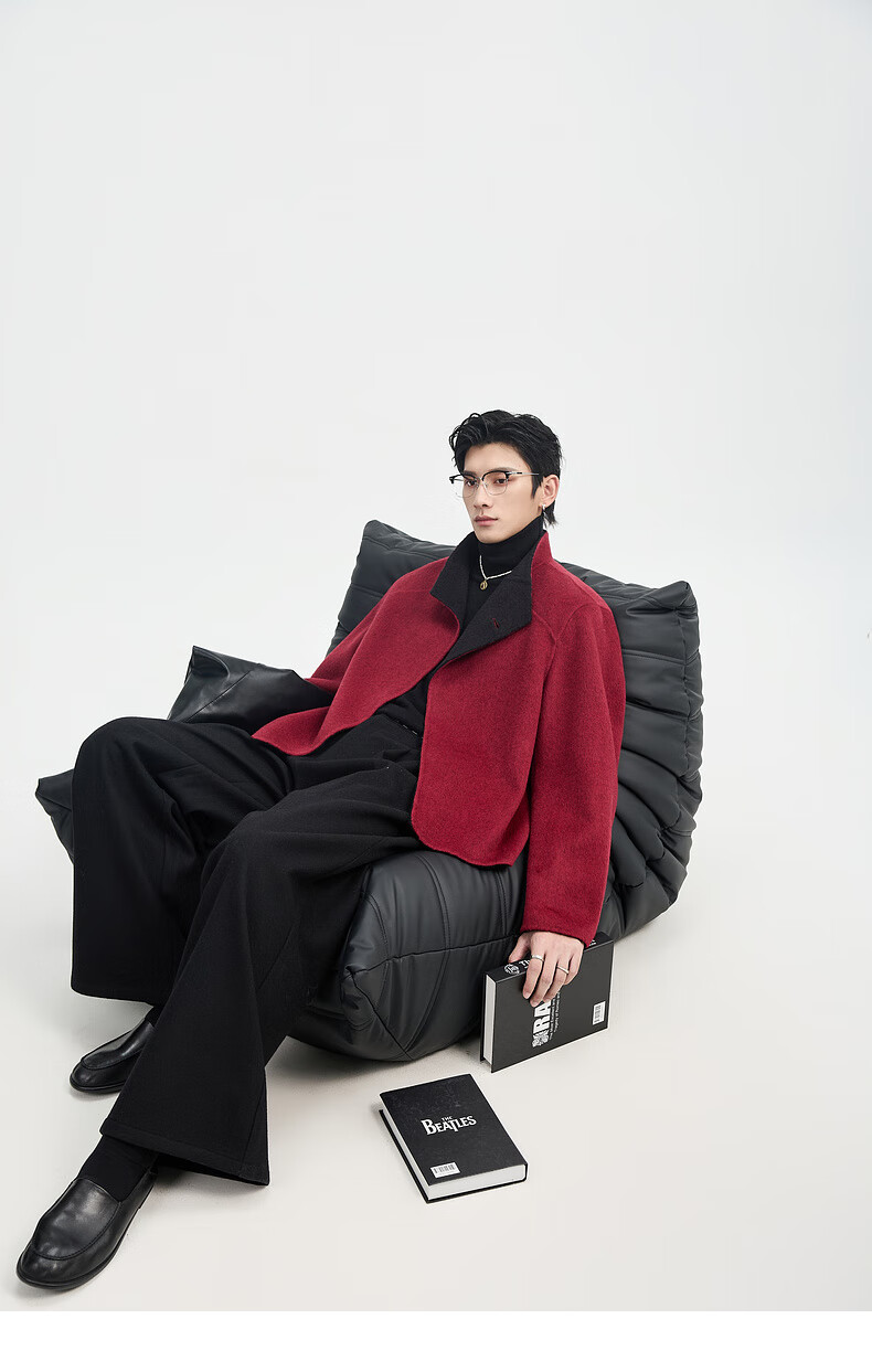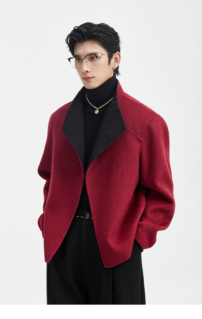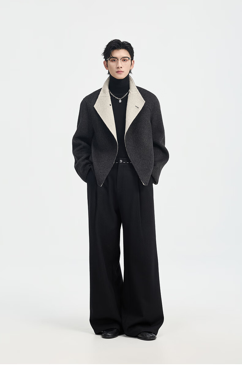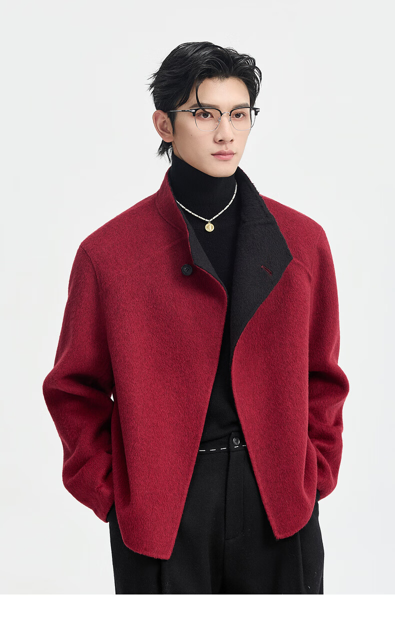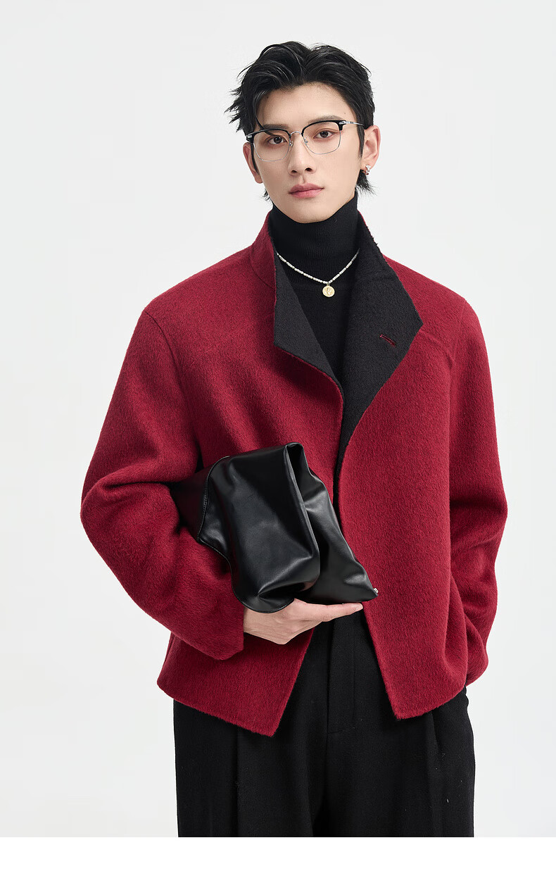 Earl Zall Wool Stand Collar Contrast Color Double-sided Wool Jacket Men's 2025 Autumn and Winter Short New Year's Coat Z541605 Moon Shadow Gray L (175)