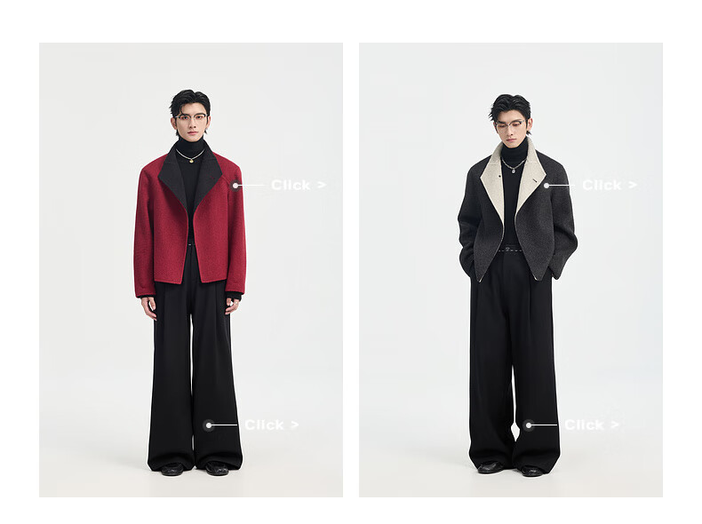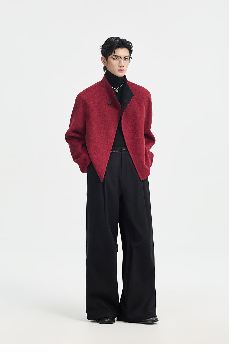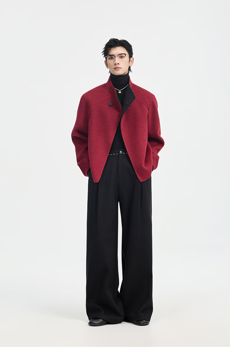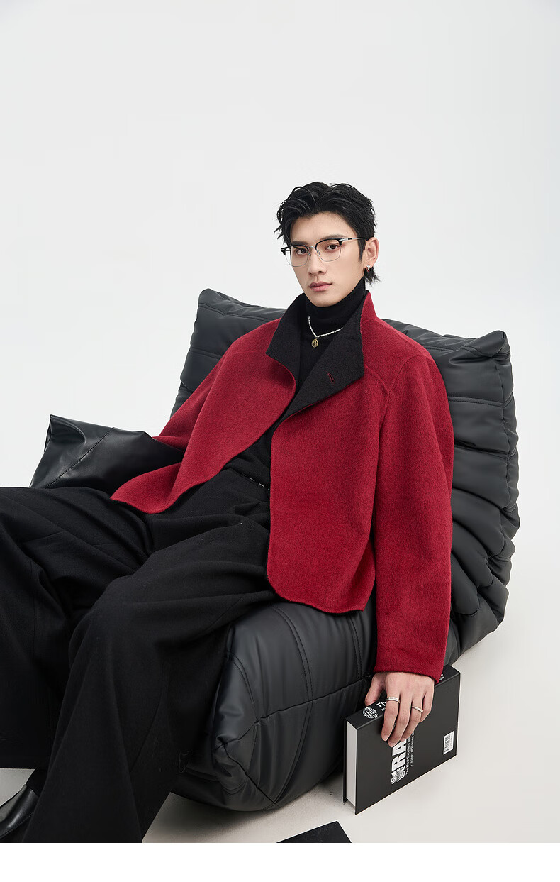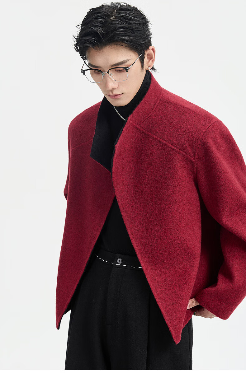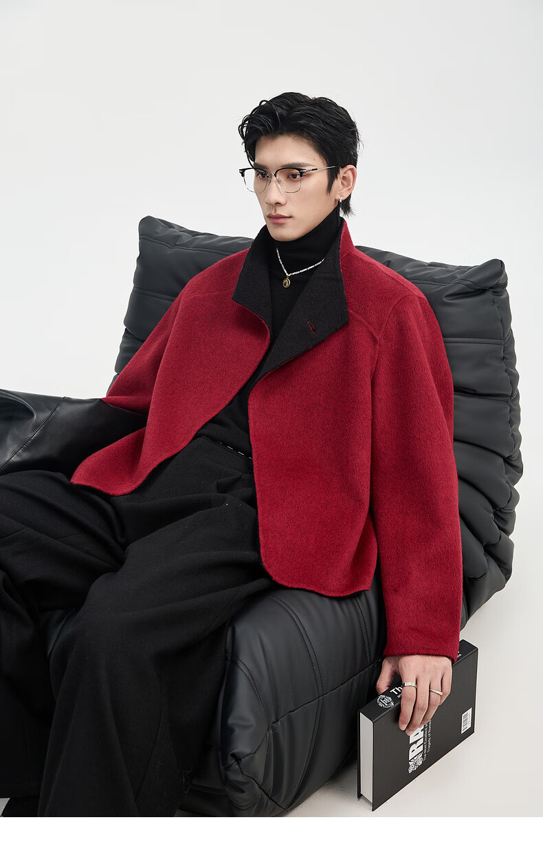 Earl Zall Wool Stand Collar Contrast Color Double-sided Wool Jacket Men's 2025 Autumn and Winter Short New Year's Coat Z541605 Moon Shadow Gray L (175)