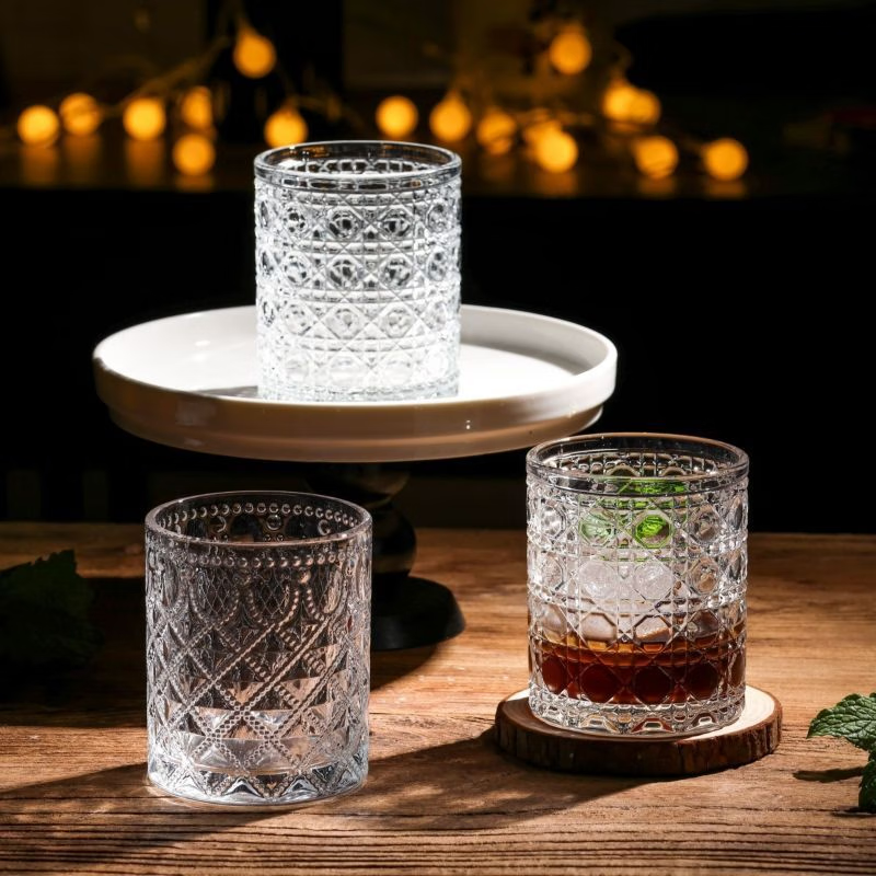 Retro embossed glass, high-looking wine glass, large-capacity juice drink cup, water cup 180ml, gem-style large embossed cup, 1 pack
