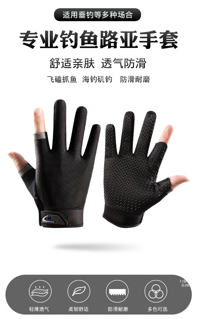 Tongrubi Fishing Gloves Summer Thin Lure Special Non-Slip Anti-thorn Bait Summer Sea Fishing Fly Knock Catching Fish Rub Bait Mesh Three Finger-Black Orange