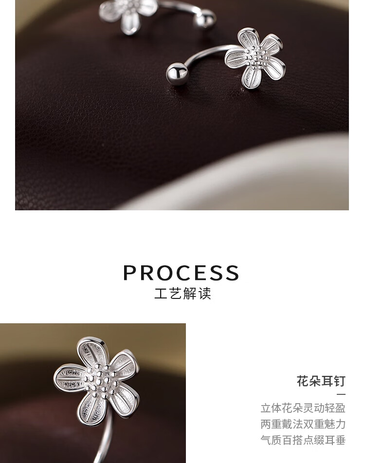Qi Xiaomi (QI XIAO MI) S999 sterling silver flower earrings for women screw-buckle earrings for ear piercing 2025 new high-end white earrings jewelry a pair of flower earrings 999 pure silver