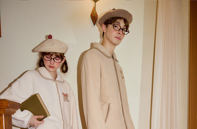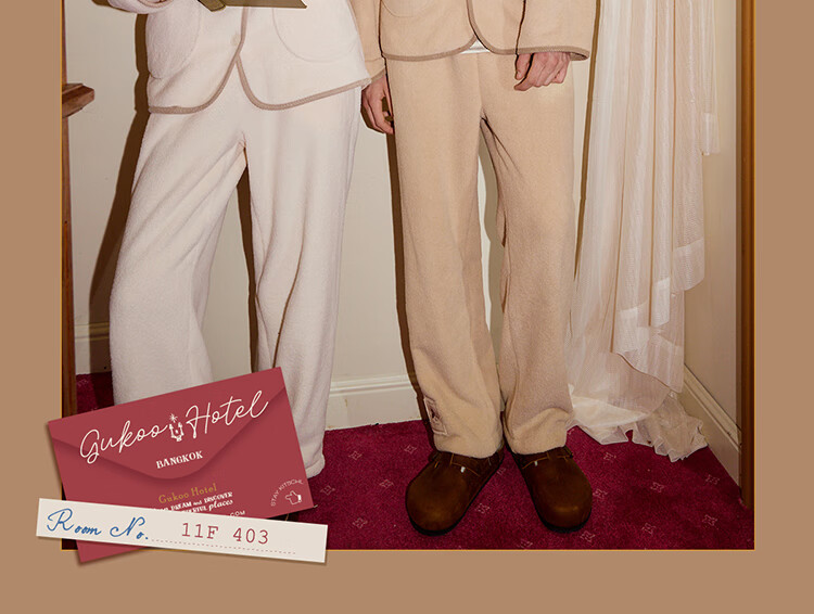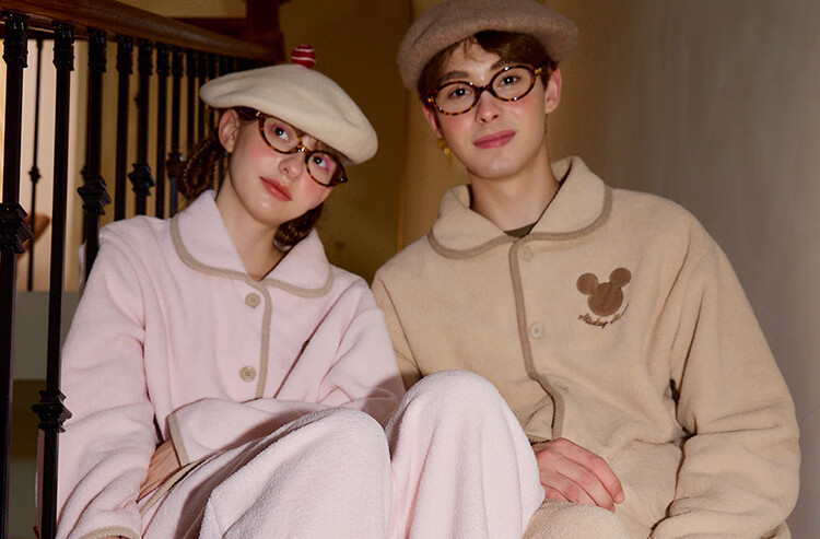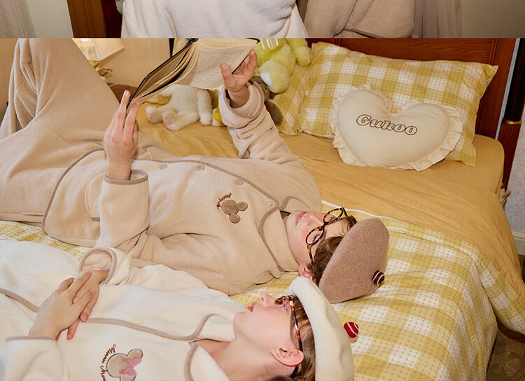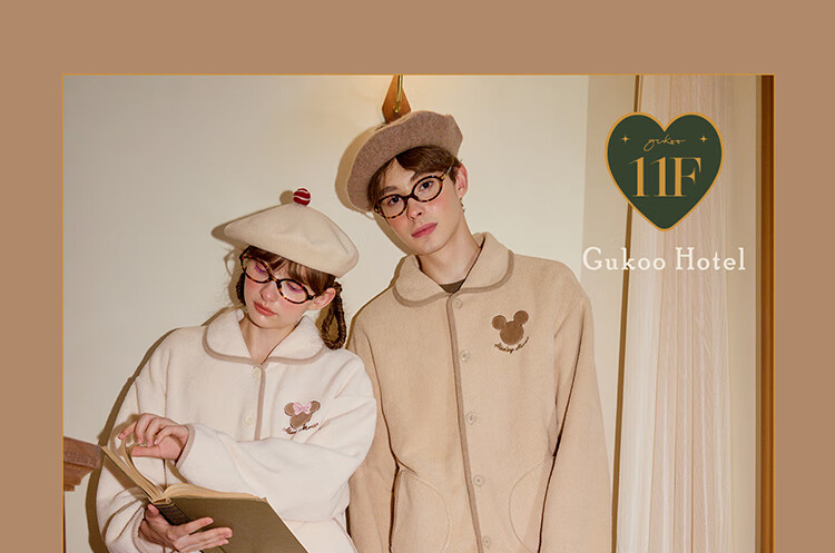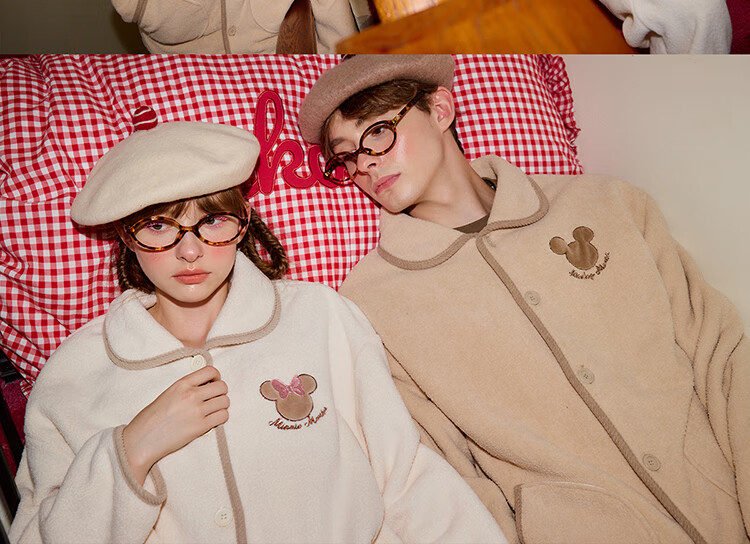 Gukoo Couple Pajamas Winter Disney Co-branded New Lapel Warm Simple Ladies Home Clothes Set Men's Pajamas D Milky White Women's Suit S