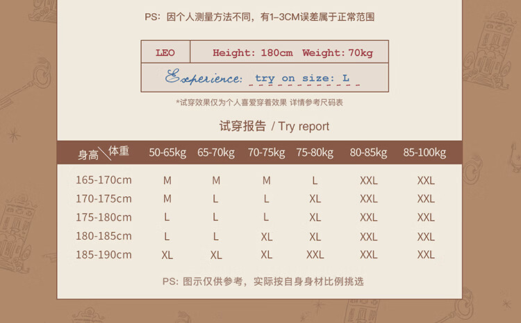 China (cm) 165 / 88-90 170 / 96-98 175 / 108-110 180 / 118-122 185 / 126-130