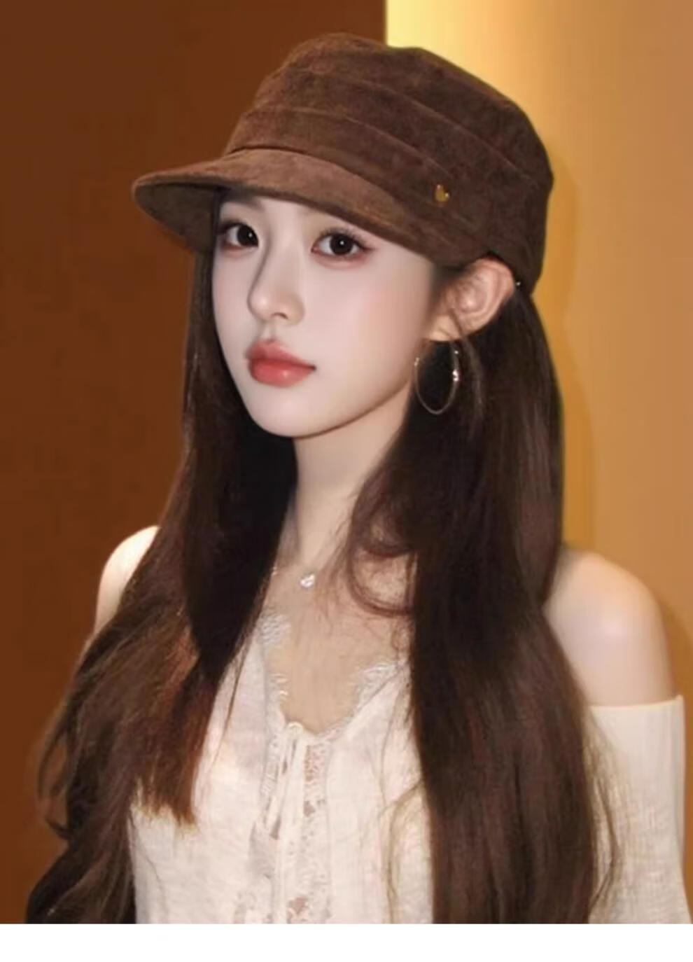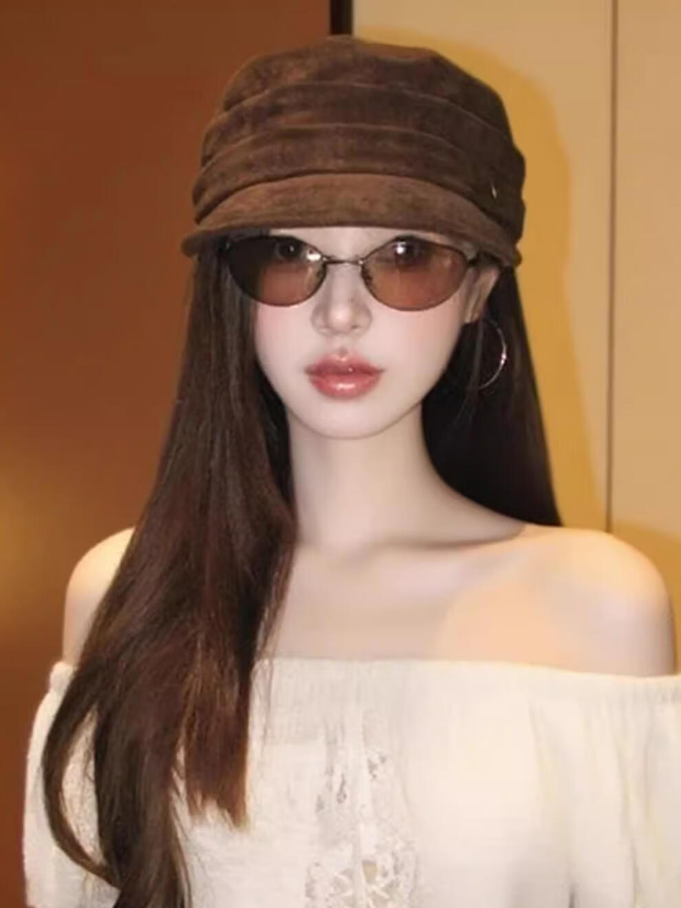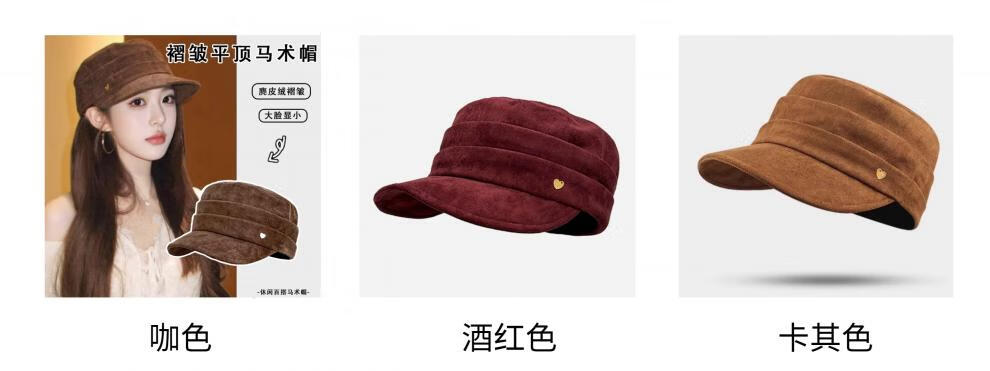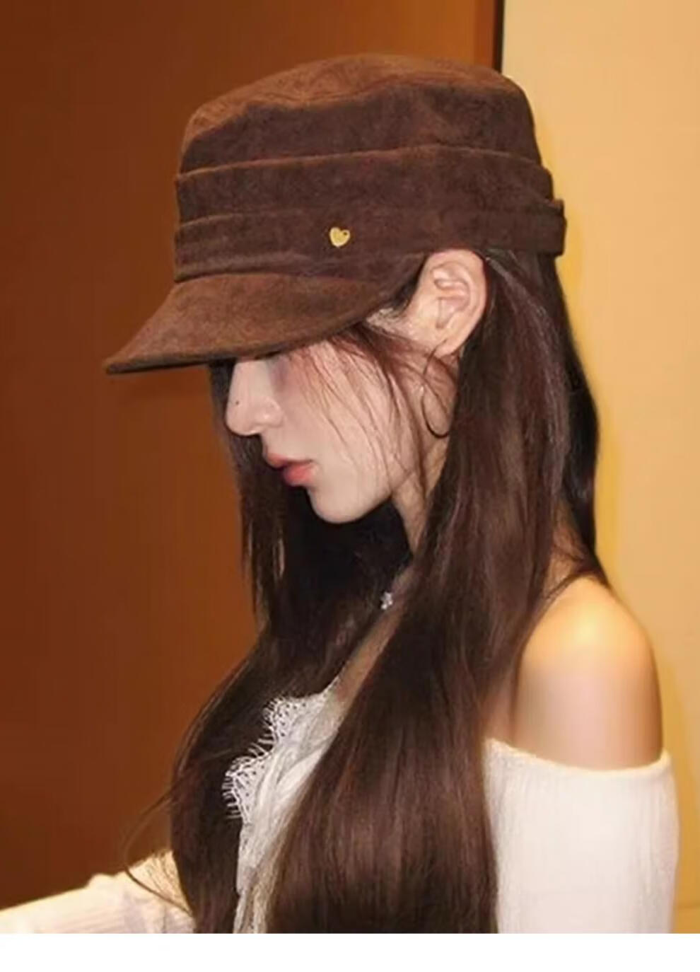 Woodpecker suede pleated flat-top equestrian hat for women 2025 new autumn and winter Maillard retro all-match painter hat trendy off-white suede & equestrian hat one size (56-58cm)