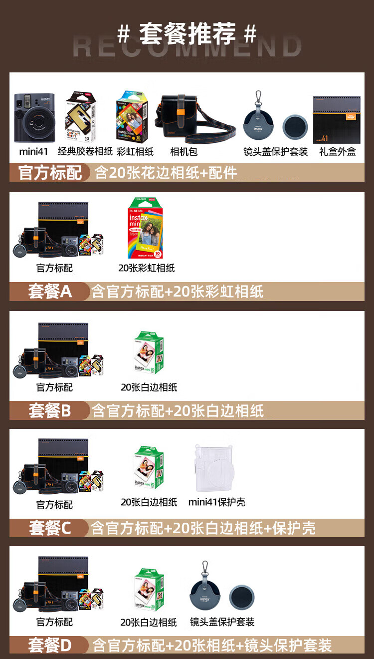 Fuji (FUJIFILM) instax mini41 instant camera photo paper new classic gift box set point-and-shoot camera photography Valentine's Day birthday gift mini41 new classic gift box (including 10 classic photos + 10 rainbow photos) Package B official standard + 20 white edge photo papers