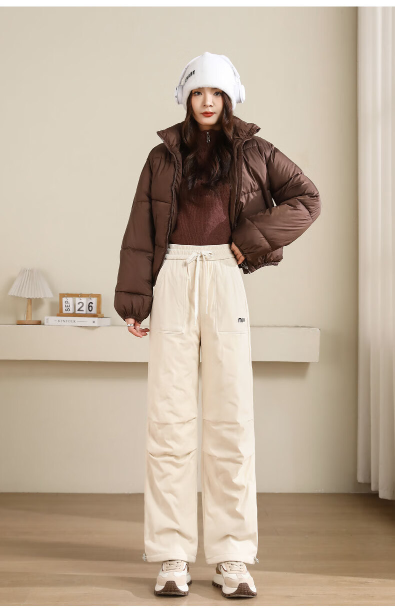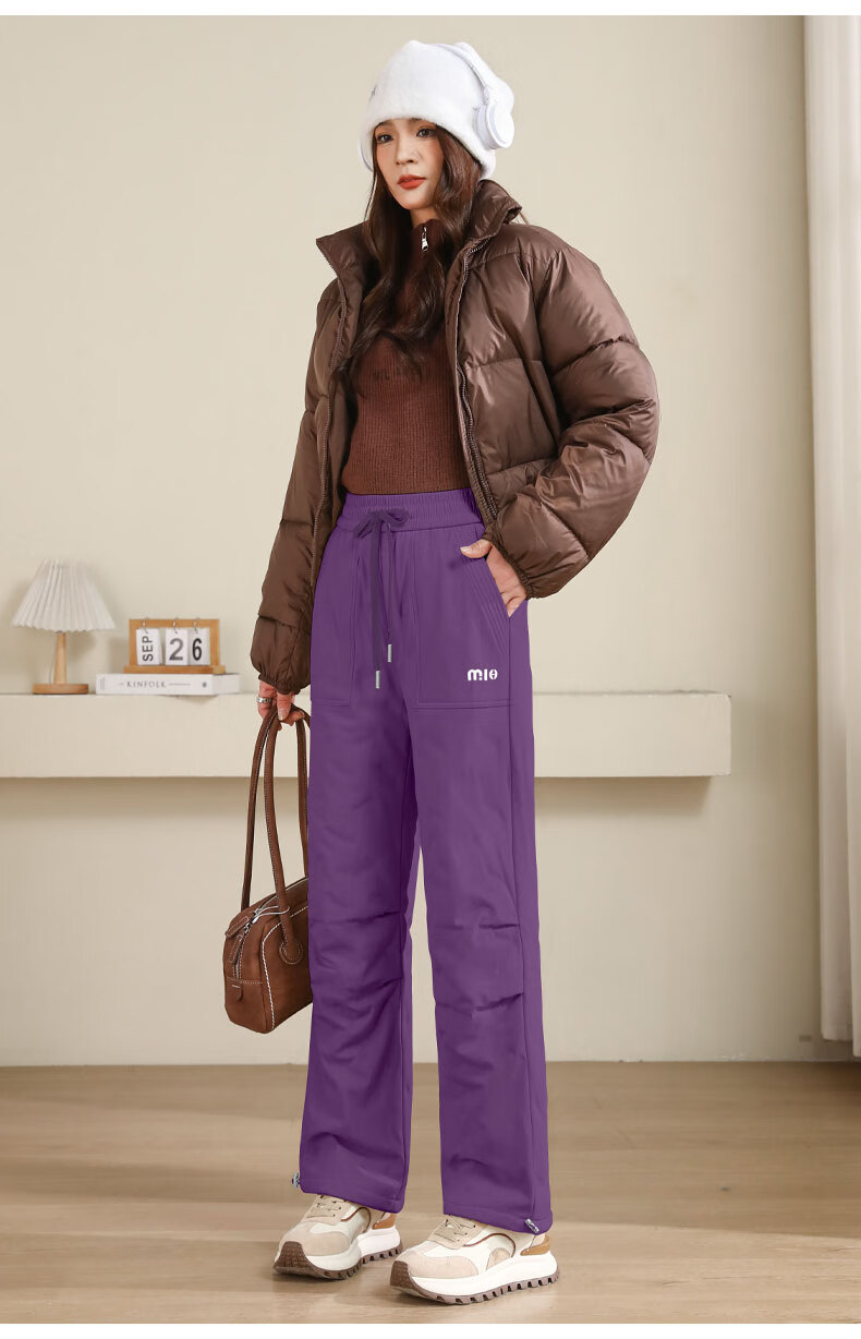 SUMMTY Workwear Down Pants Women's Outerwear 2025 New Winter Thickened Coldproof Northeast Outdoor Mountaineering Straight Wide Leg Cotton Pants Purple-95 White Goose Down S 80-95Jin Jin equals 0.5 kg