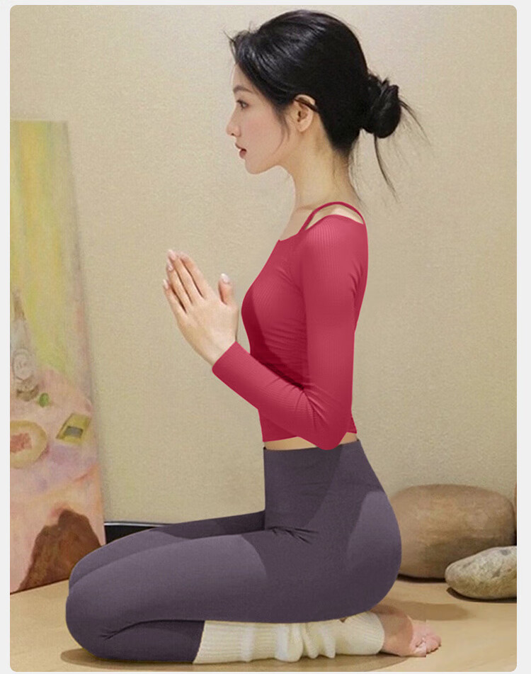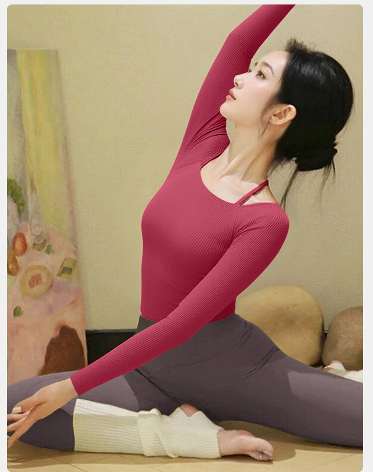 Shuangxiu yoga wear 2025 new high-end long-sleeved Pilates sports top for women, beautiful fitness wear set with chest pad, Mumei red top M 100-110