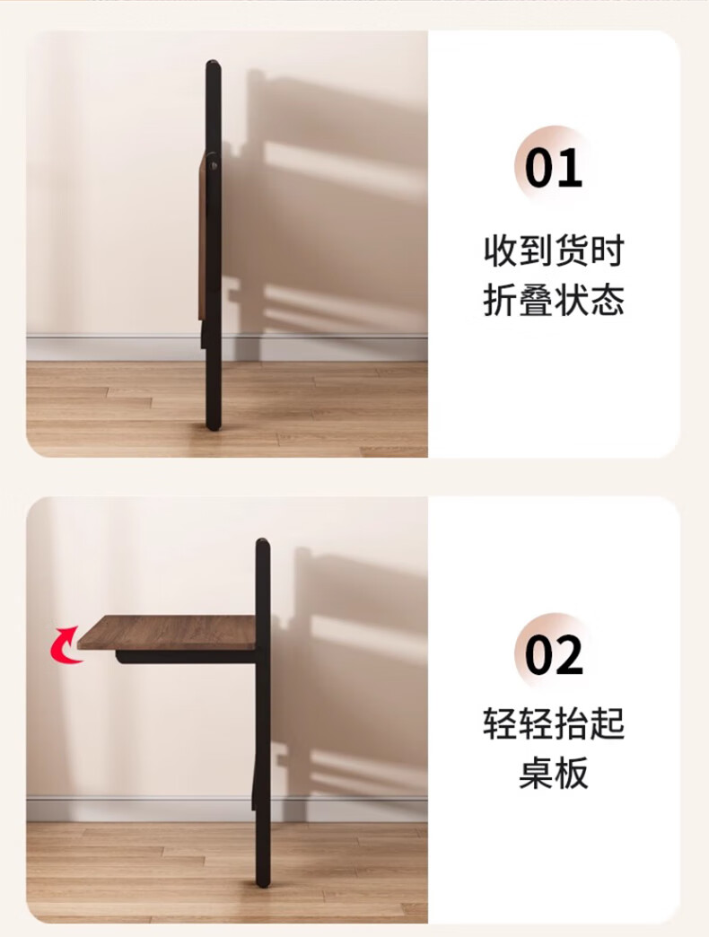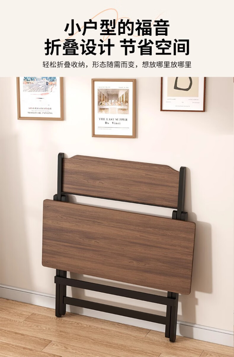 Folding table, removable desk, new computer table, small dining table, home study table, simple rental house bedside table, installation-free 80*40 walnut study table - 4-speed lifting