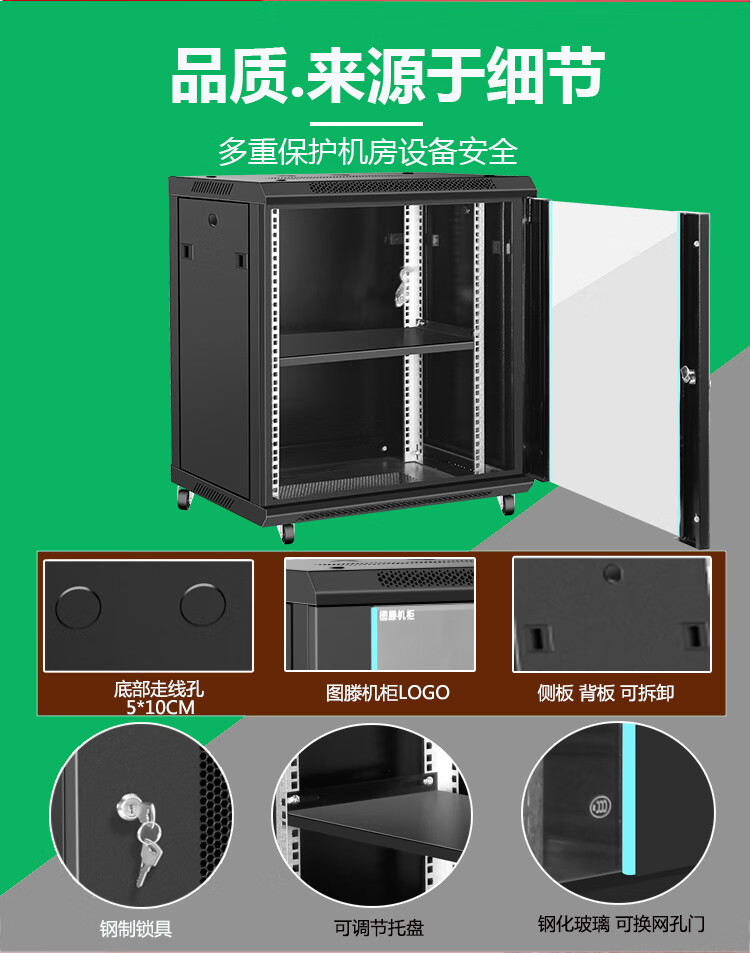 Totem 6u9u12u network cabinet wall-mounted vertical small cabinet household weak current equipment server cabinet box W.6522 black glass door_600*450*1200M 1x1x1cm