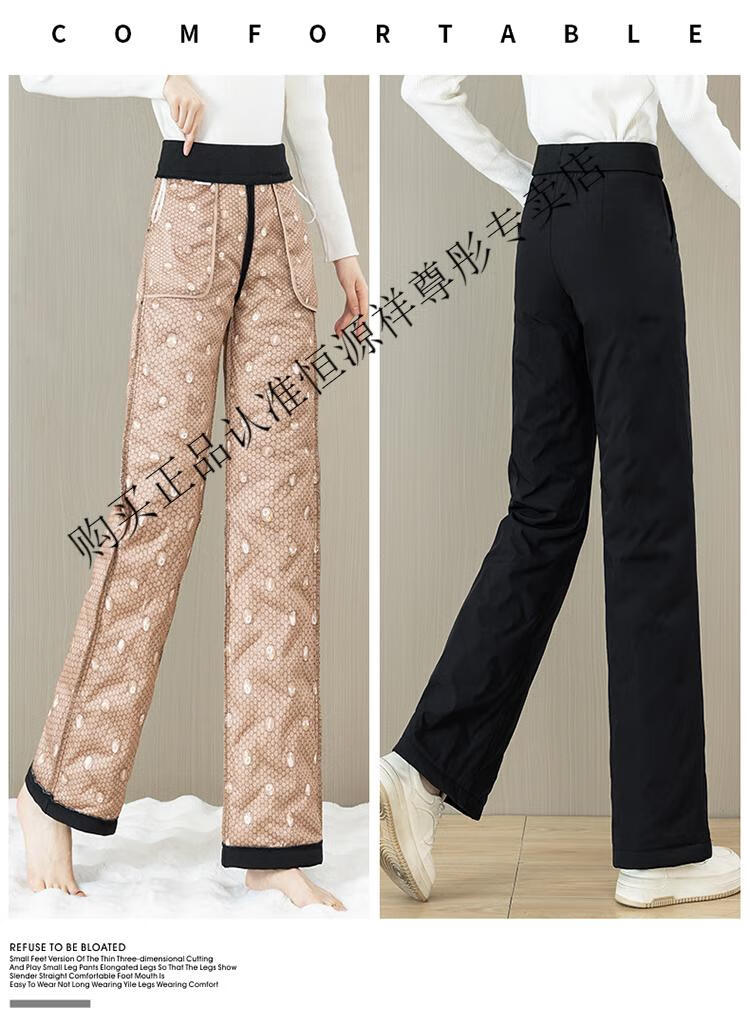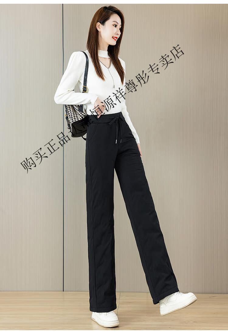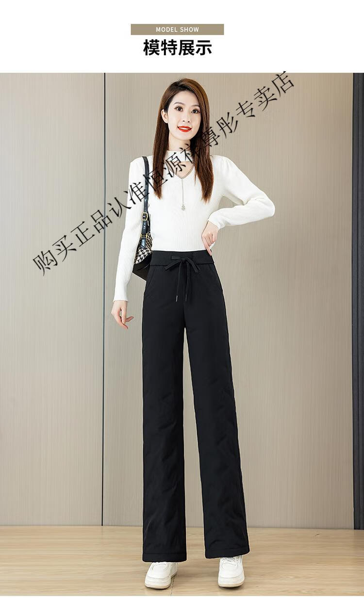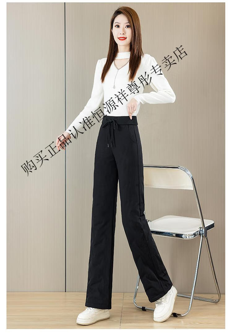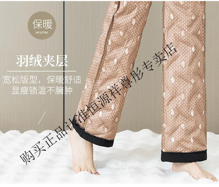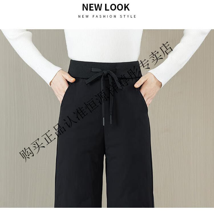 Hengyuanxiang Down Pants Women's Winter Outerwear Mom Pants High Waist Warm Large Size Outdoor Coldproof Straight Pants Loose Elastic Trousers Black M 27 96-105Jin Jin is equal to 0.5 kg
