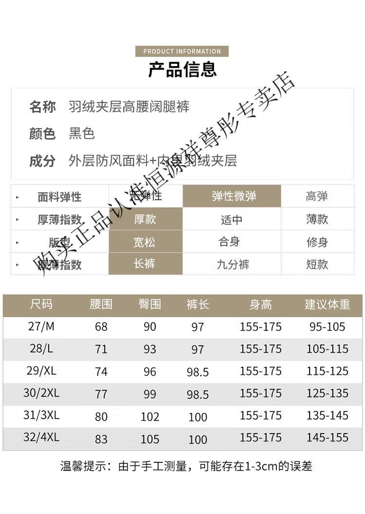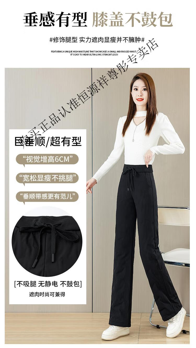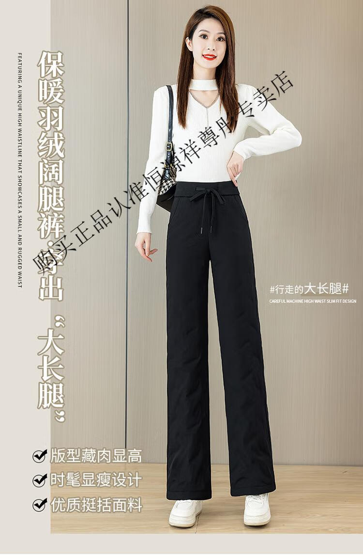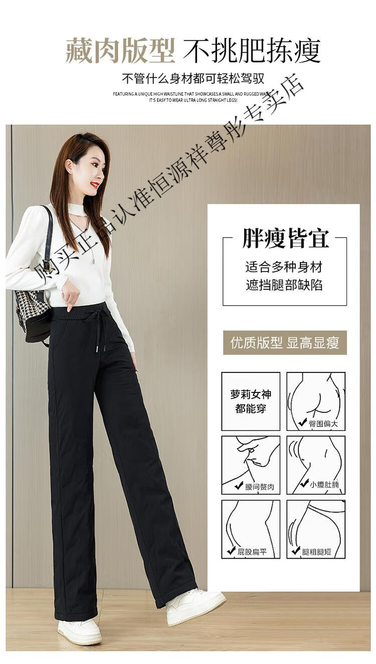 Hengyuanxiang Down Pants Women's Winter Outerwear Mom Pants High Waist Warm Large Size Outdoor Coldproof Straight Pants Loose Elastic Trousers Black M 27 96-105Jin Jin is equal to 0.5 kg