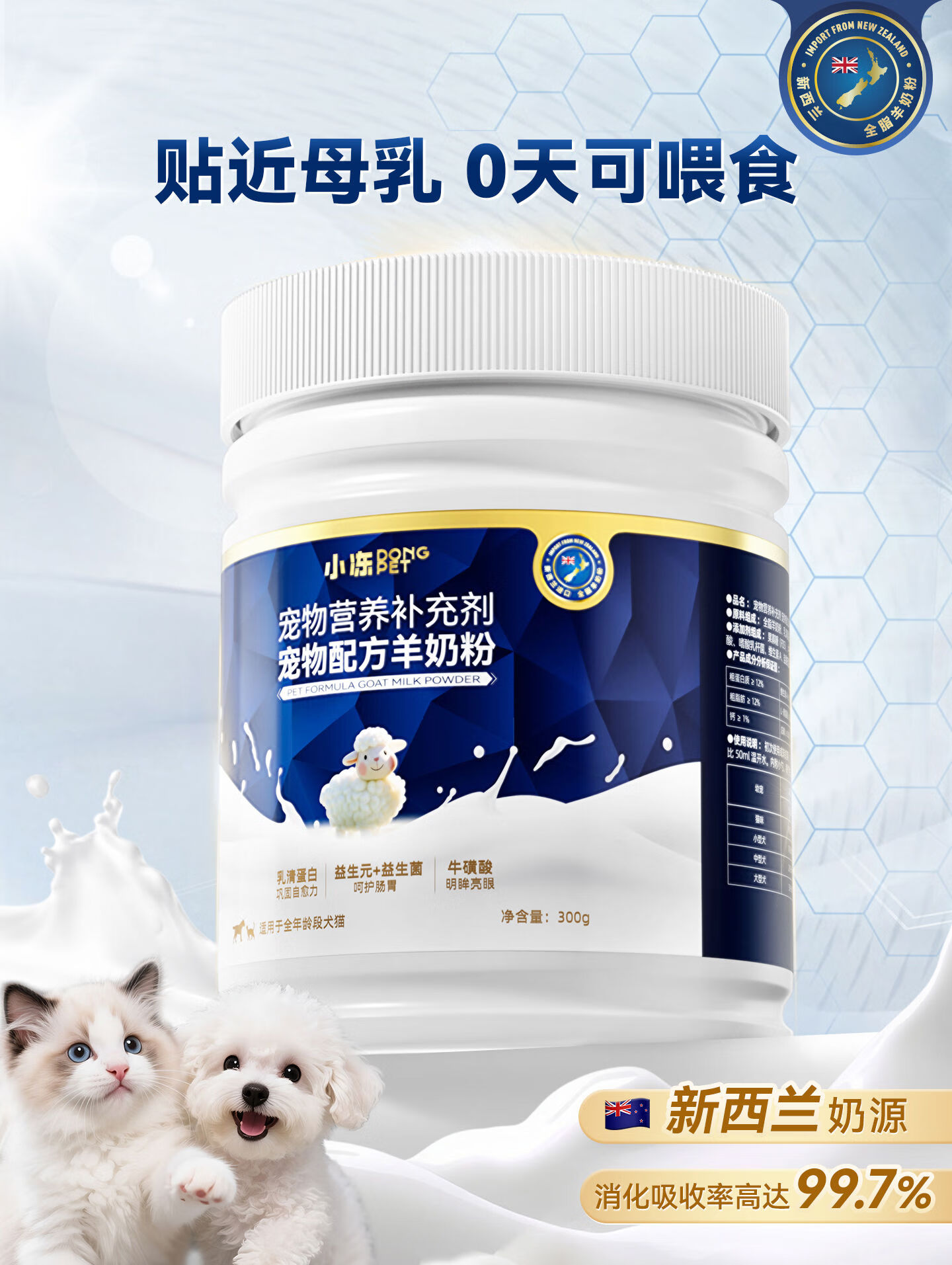 Xiaozhi Pet Formula Goat Milk Powder for Newborn Kittens, Adult Cats, Pregnant and Lactating Cats, Special Calcium Supplement, Universal Nutritional Dog Milk Powder, 1 can of 300g Goat Milk Powder - Universal for Cats and Dogs