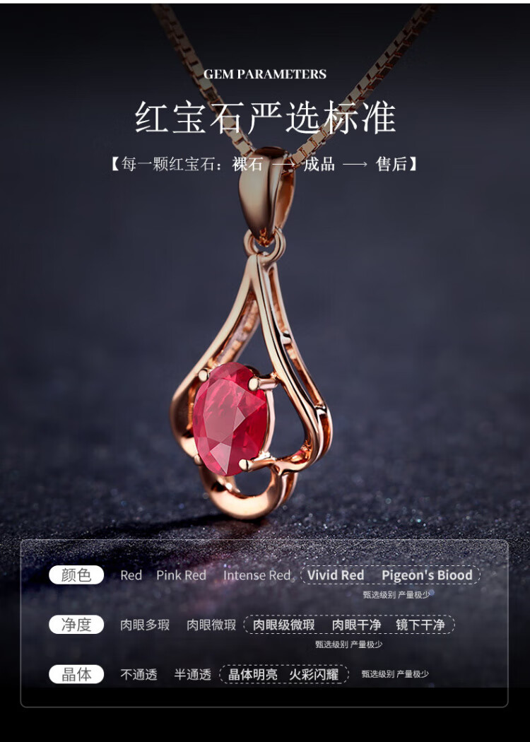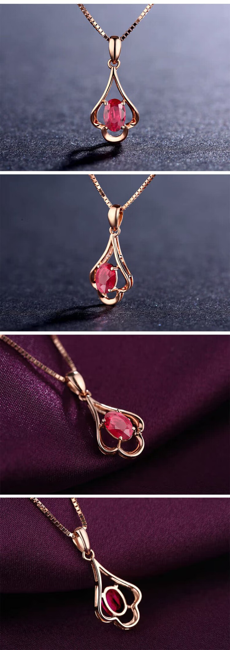 COASZE water drop oval ruby necklace for women, 18K gold inlaid, classic design, 0.56 carat ruby/chain not included