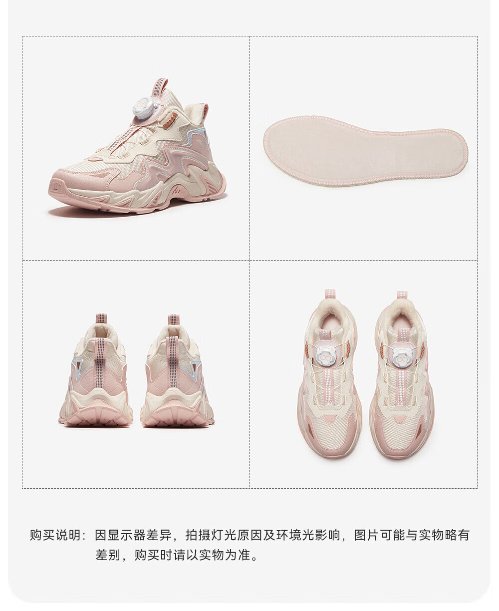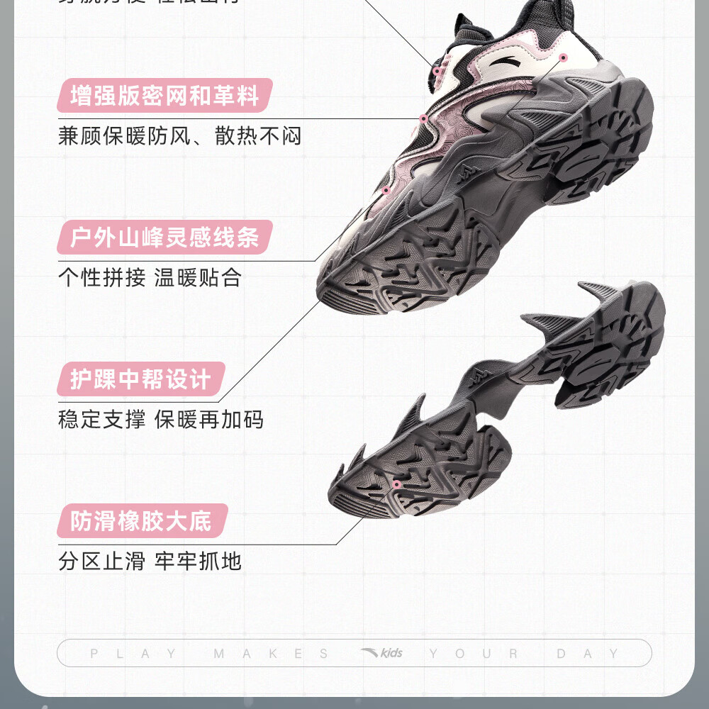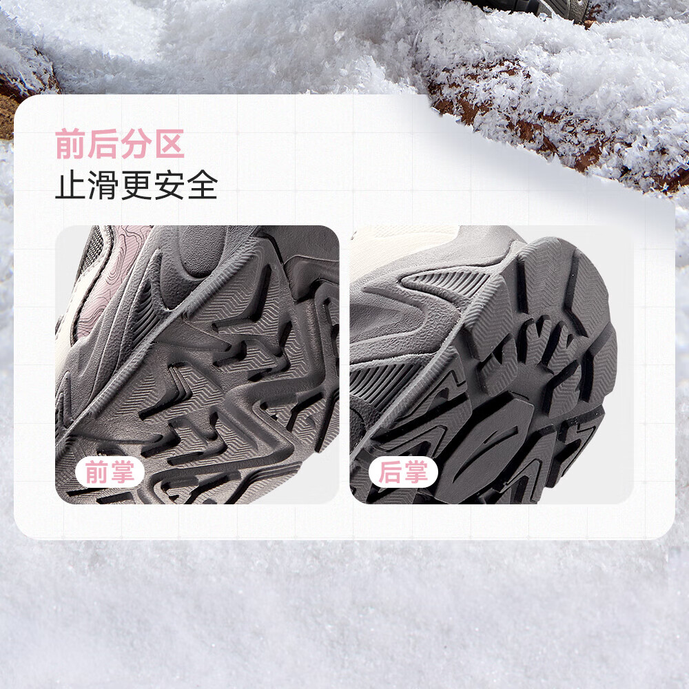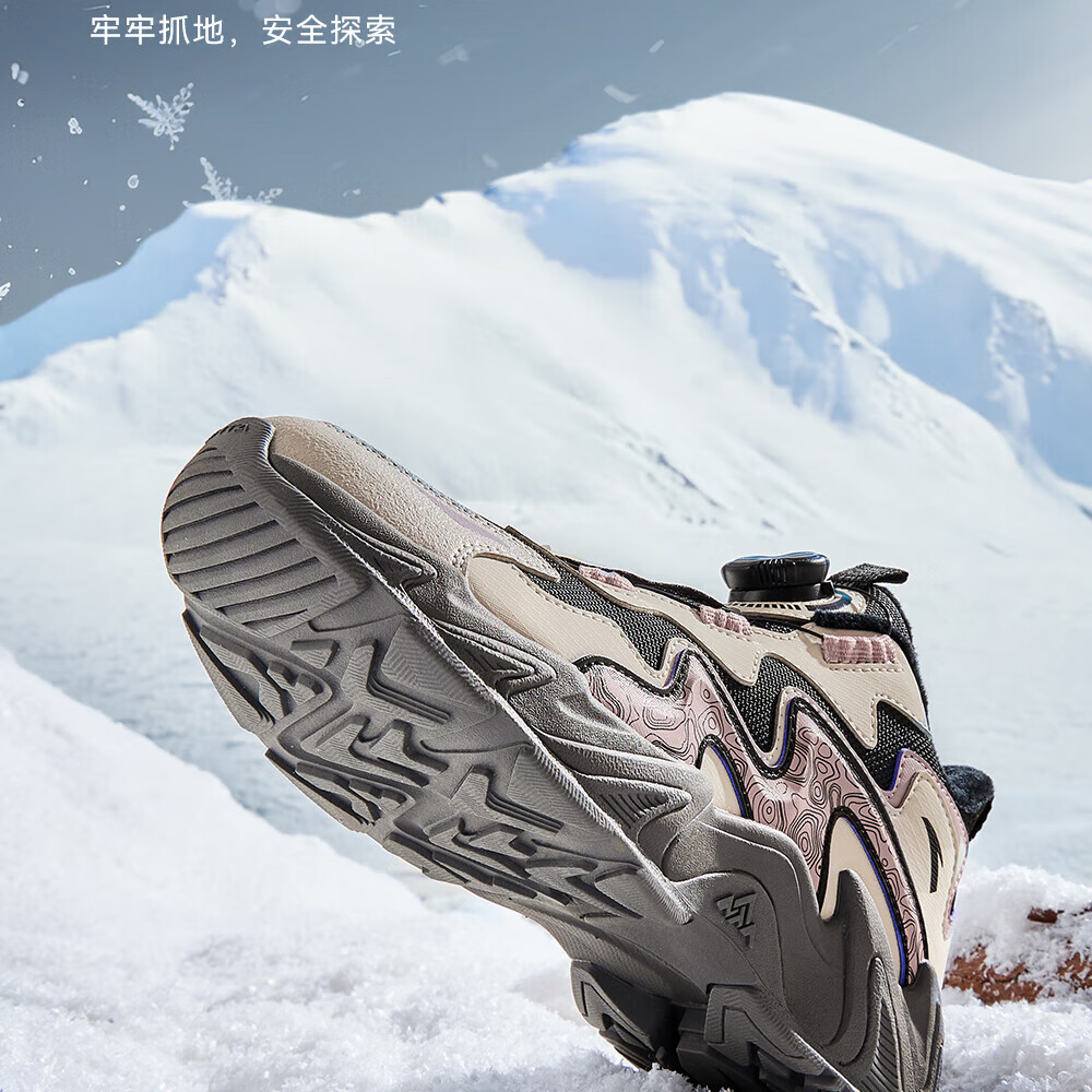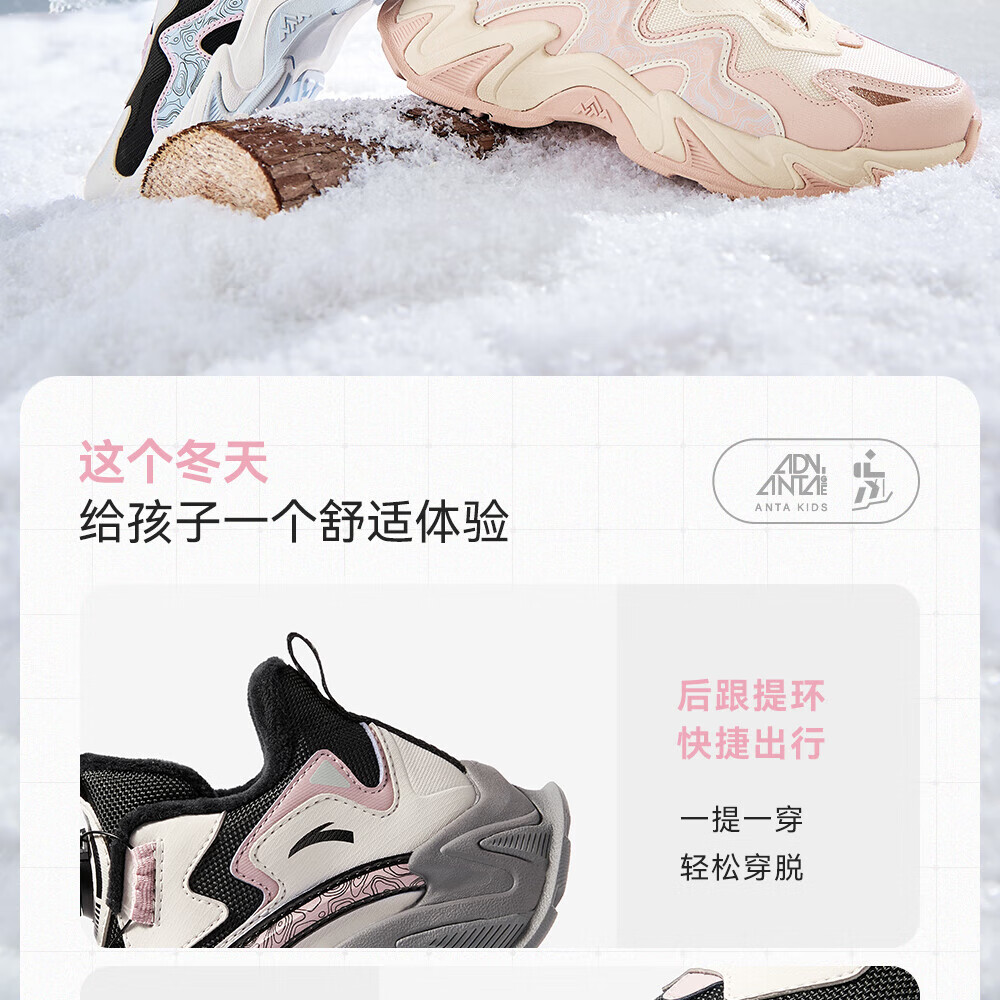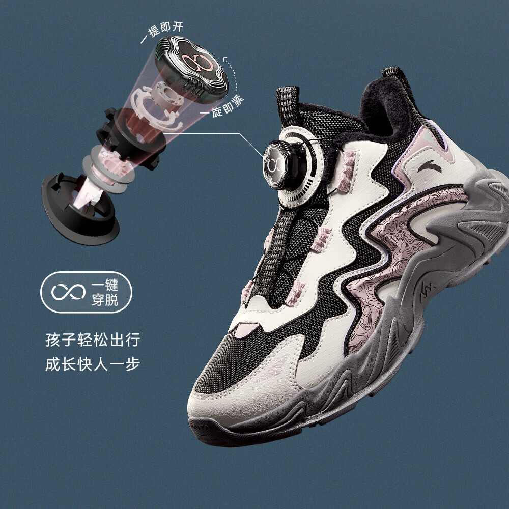 ANTA Children's Cotton Shoes for Girls and Big Kids Ridge Autumn and Winter New Product Plus Velvet Warm Leather Mesh Splicing Knob Button High Top Snow Boots Black/First Degree Gray-3 34