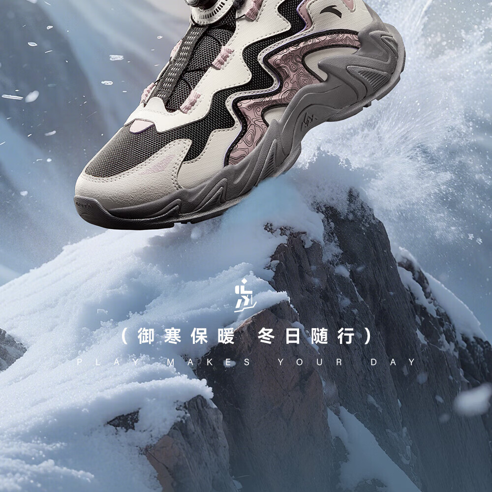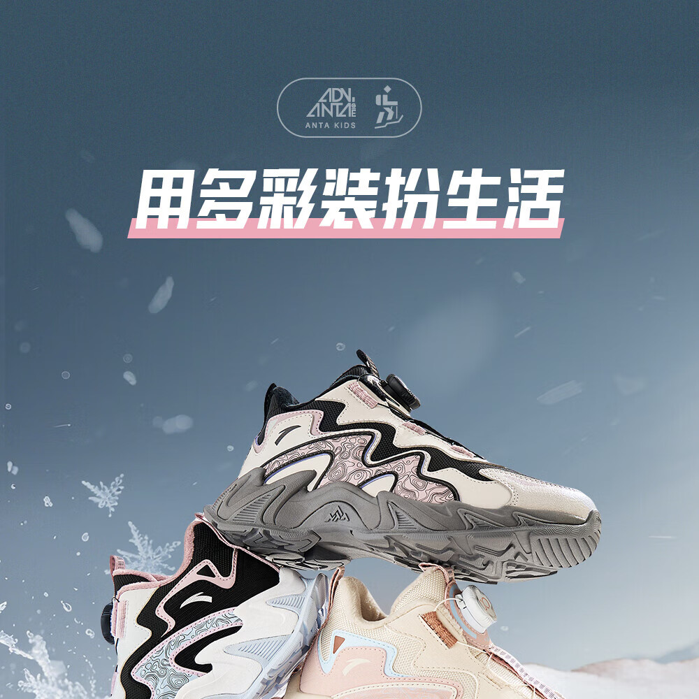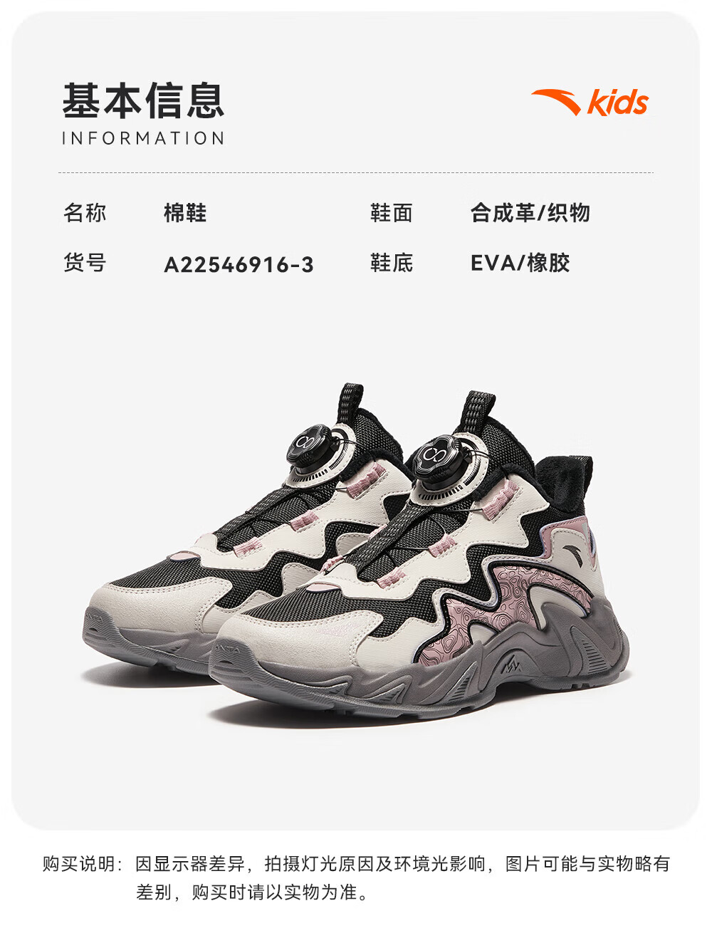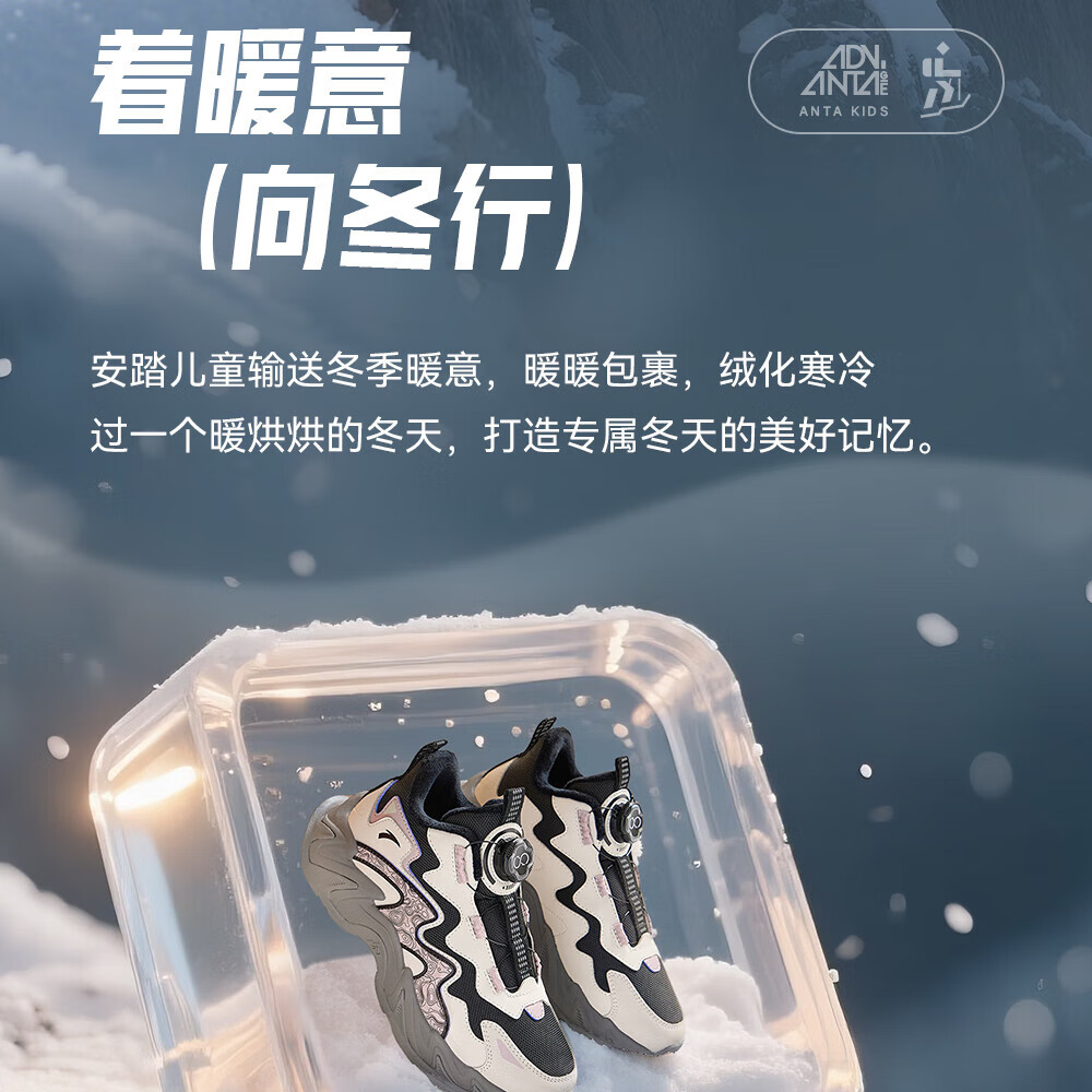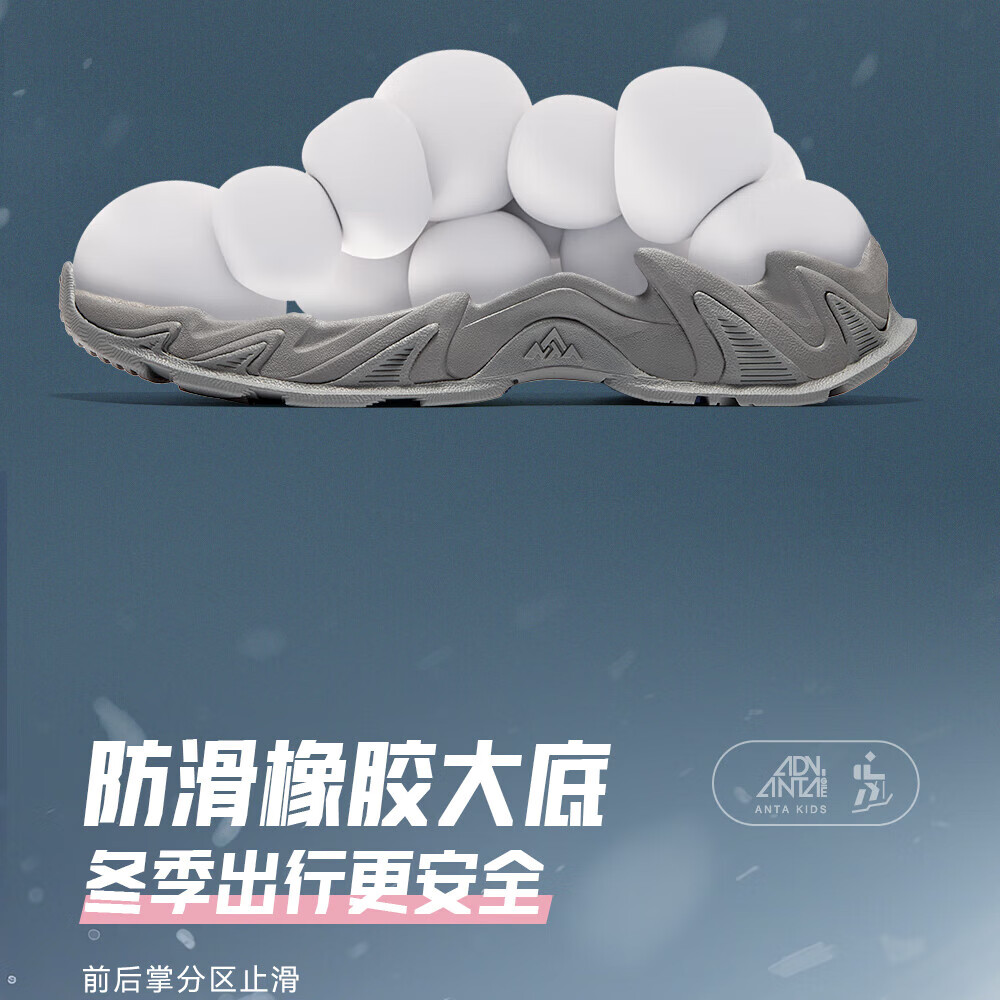 ANTA Children's Cotton Shoes for Girls and Big Kids Ridge Autumn and Winter New Product Plus Velvet Warm Leather Mesh Splicing Knob Button High Top Snow Boots Black/First Degree Gray-3 34