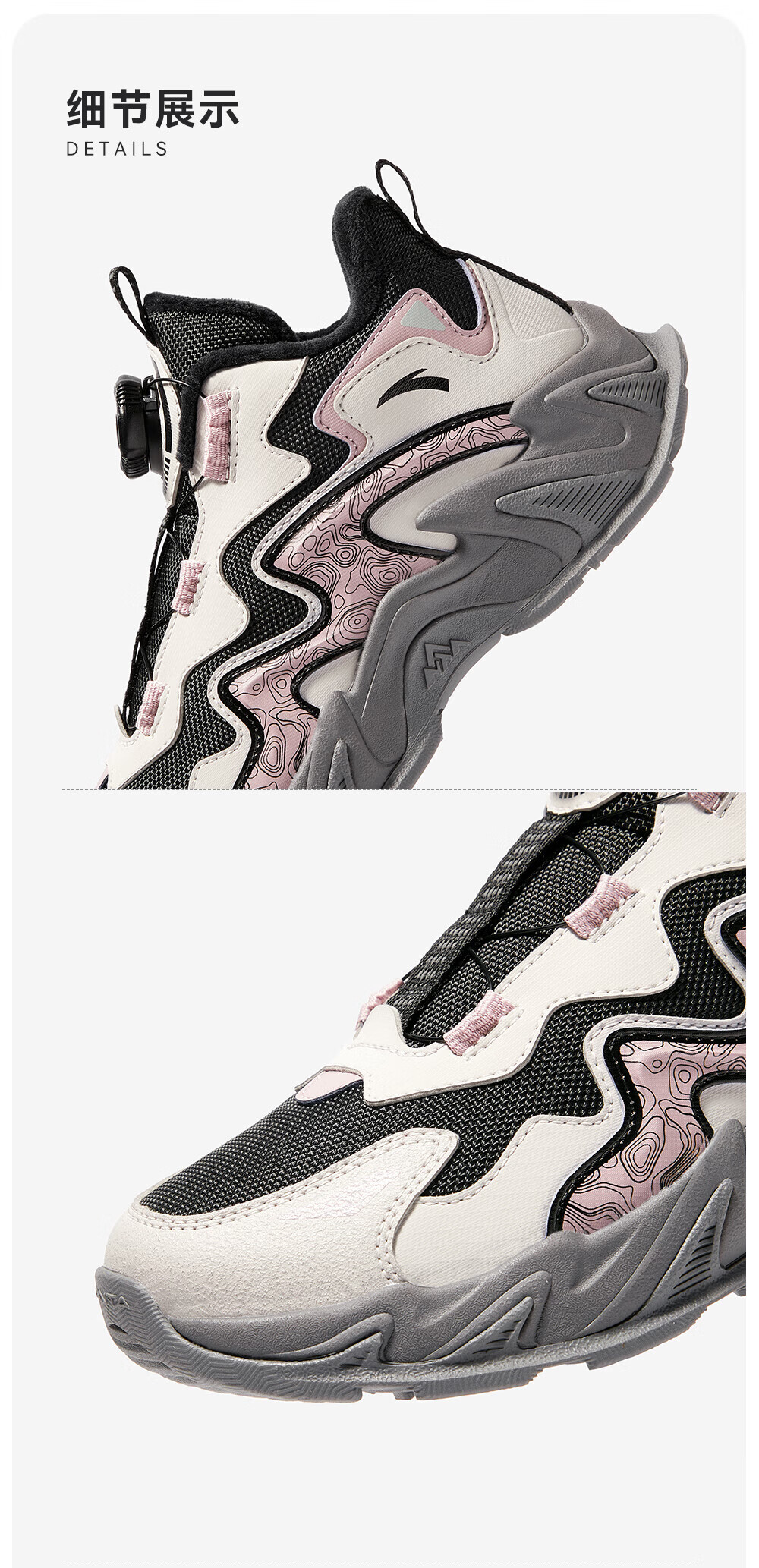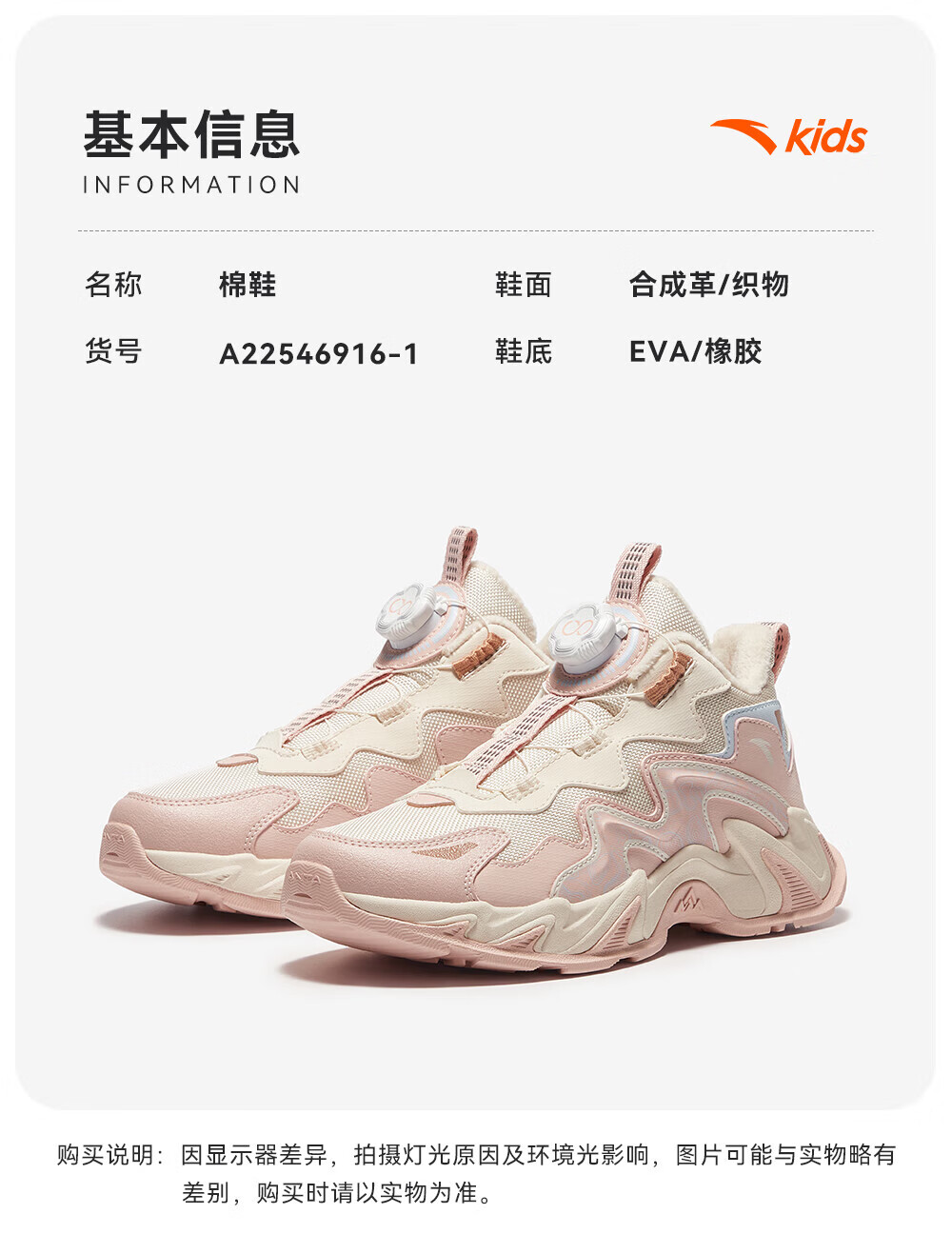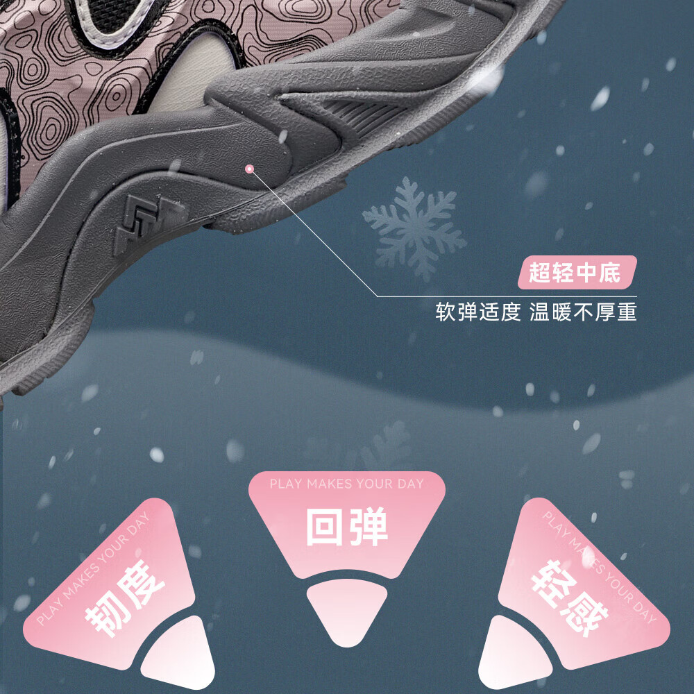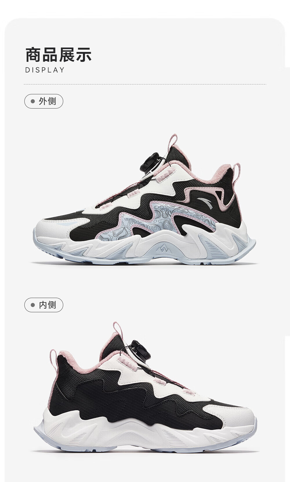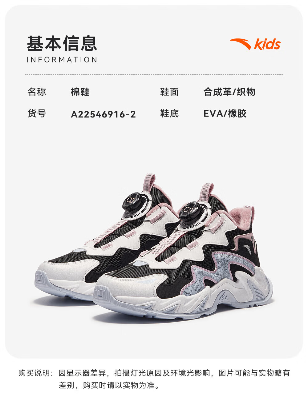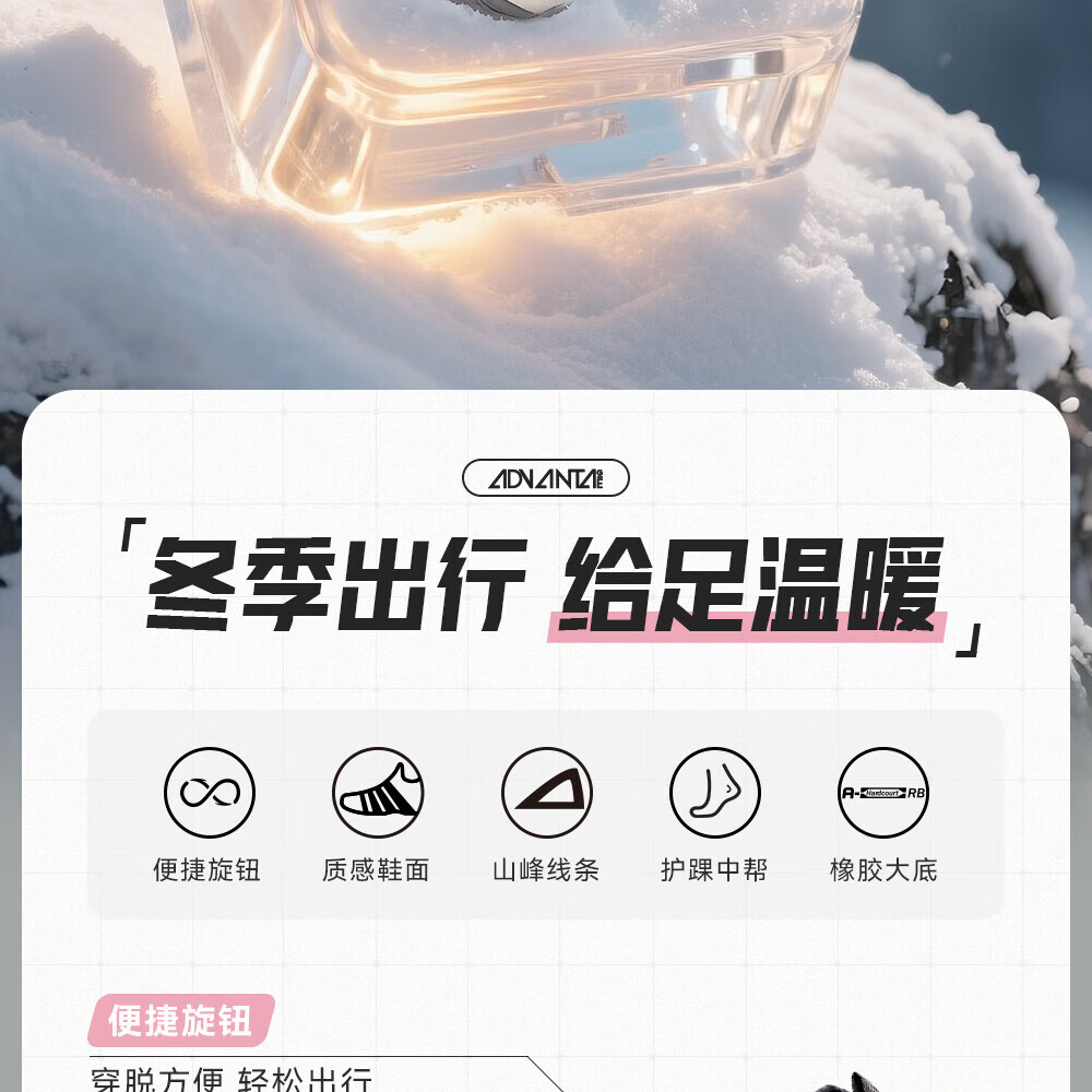 ANTA Children's Cotton Shoes for Girls and Big Kids Ridge Autumn and Winter New Product Plus Velvet Warm Leather Mesh Splicing Knob Button High Top Snow Boots Black/First Degree Gray-3 34