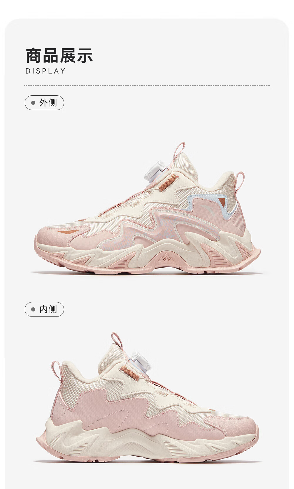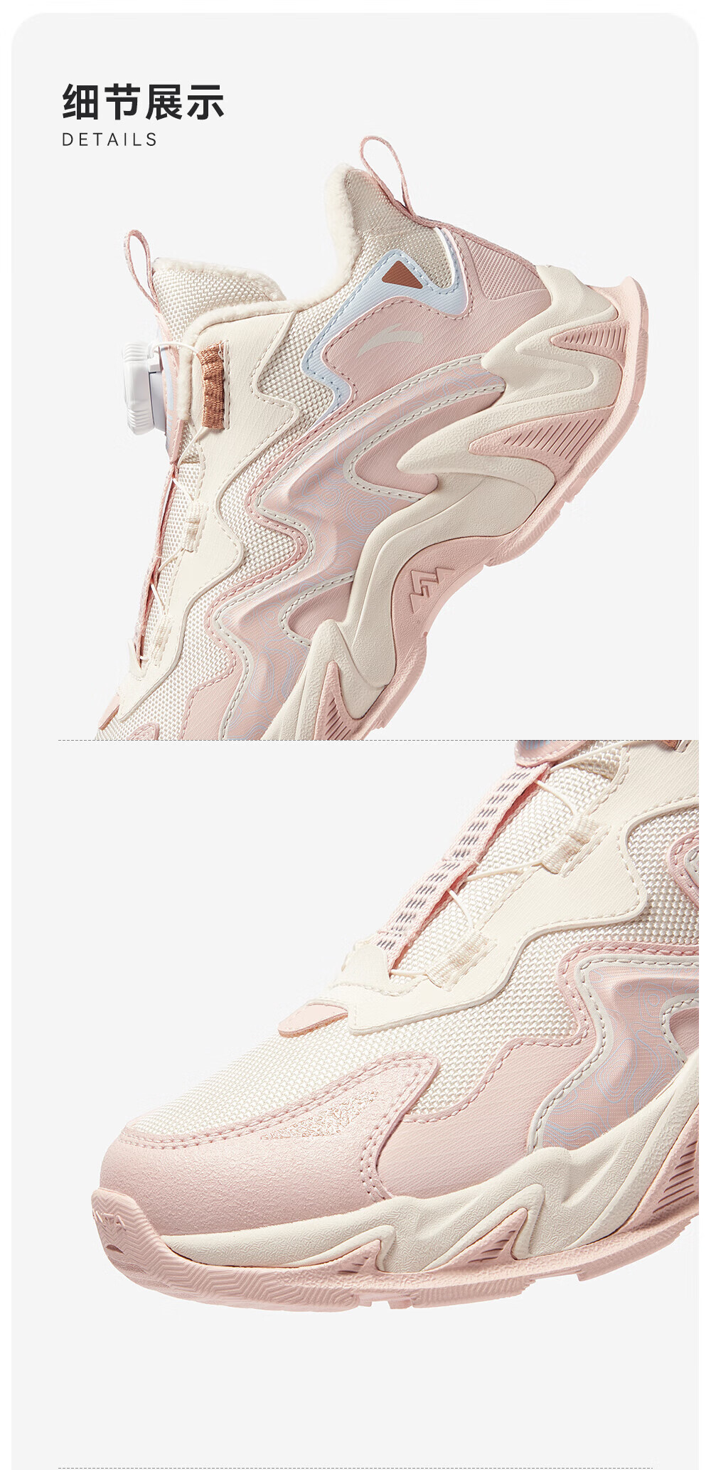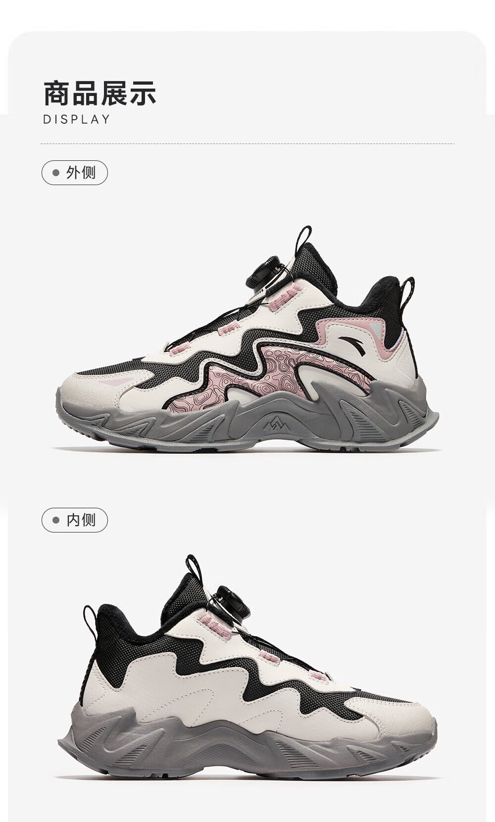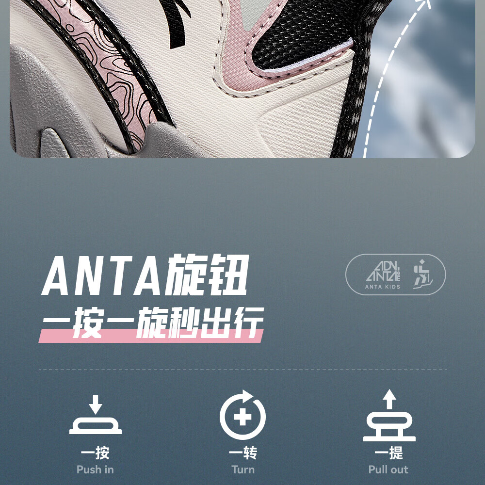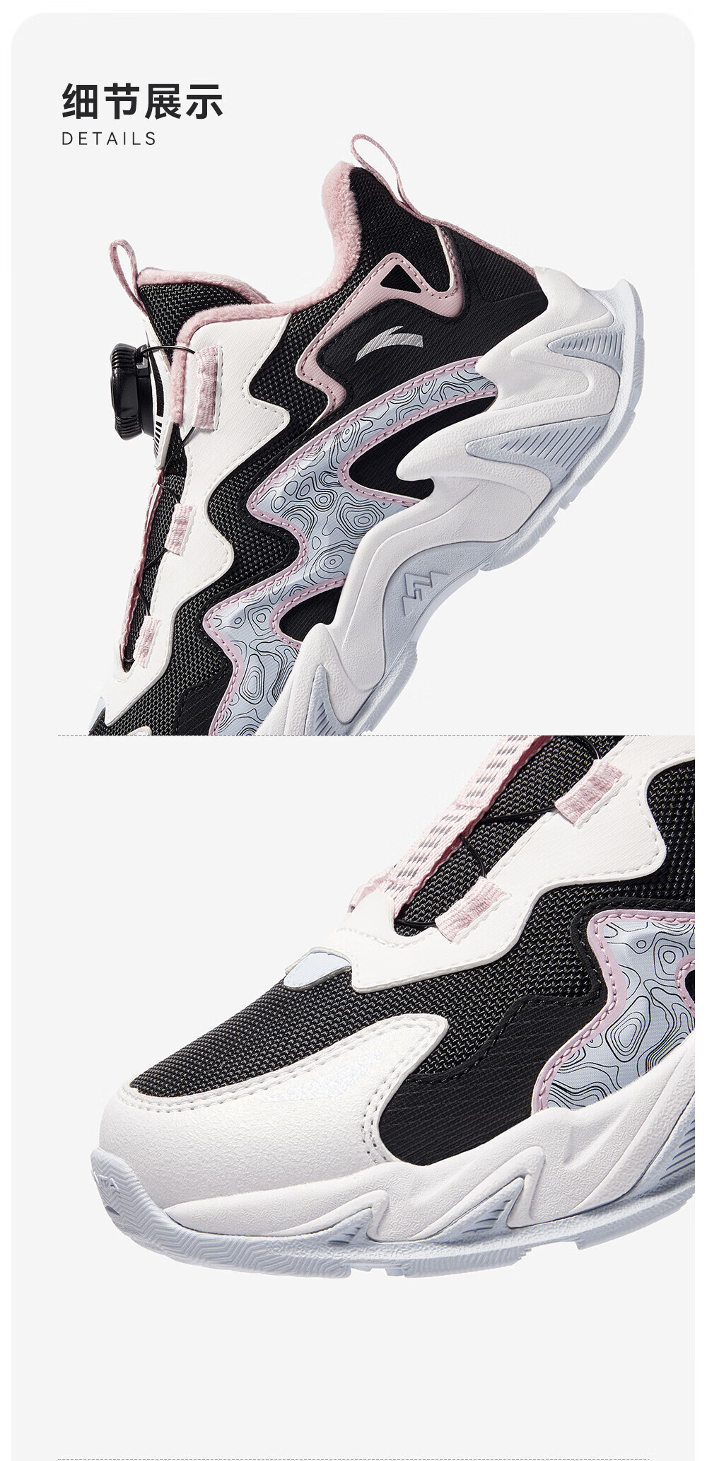 ANTA Children's Cotton Shoes for Girls and Big Kids Ridge Autumn and Winter New Product Plus Velvet Warm Leather Mesh Splicing Knob Button High Top Snow Boots Black/First Degree Gray-3 34