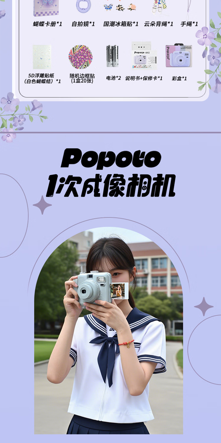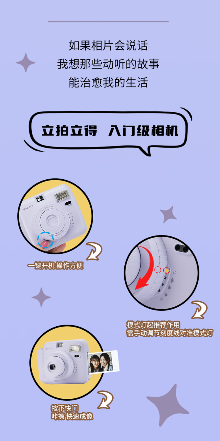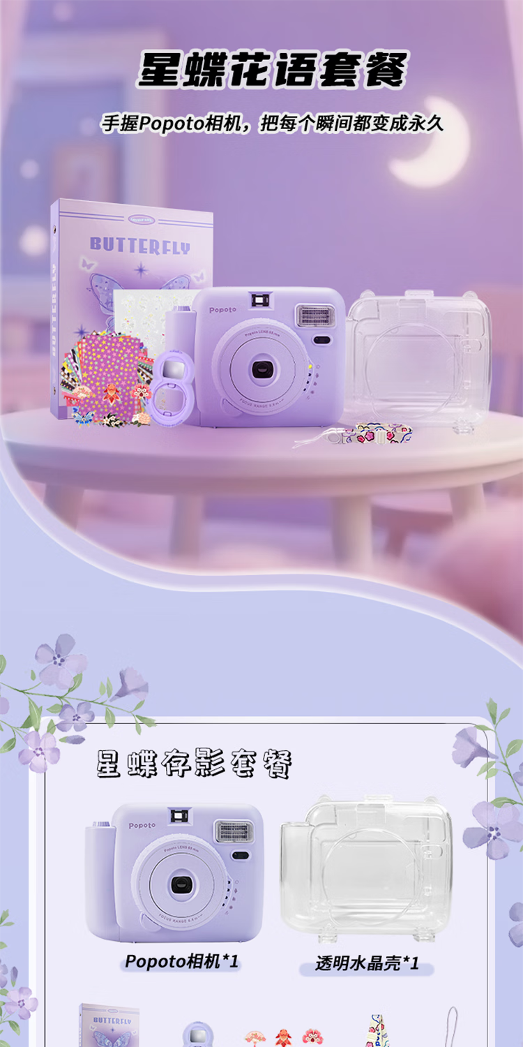 POPOTO includes photo paper as a gift, suitable for no-wash one-time imaging, holiday family gatherings for couples, cream white + star butterfly photo storage + 10 pieces of photo paper
