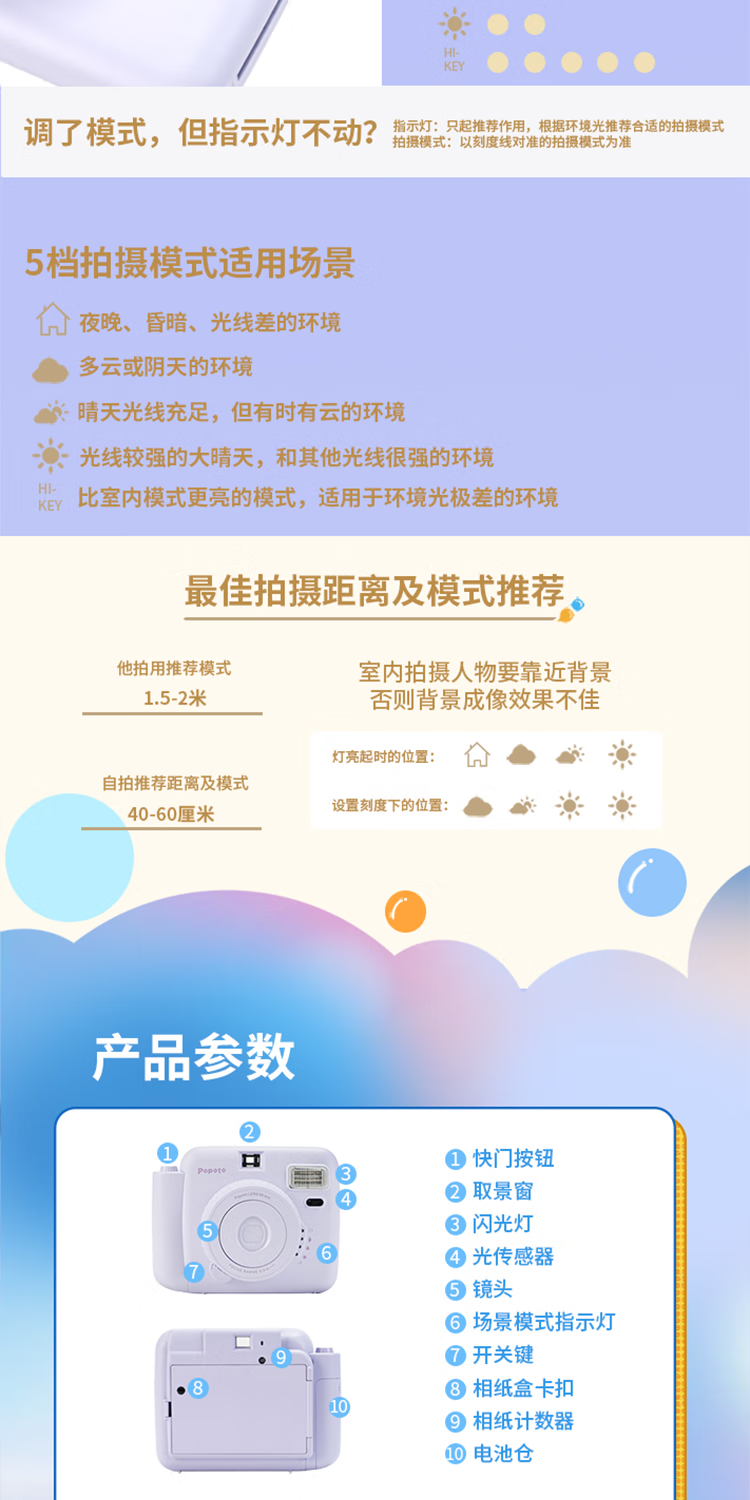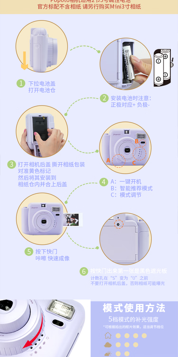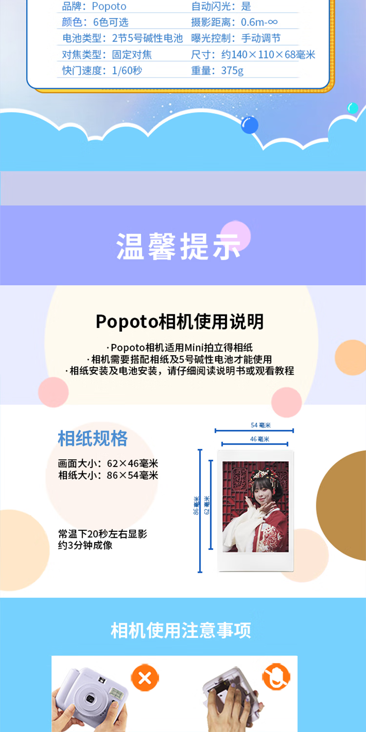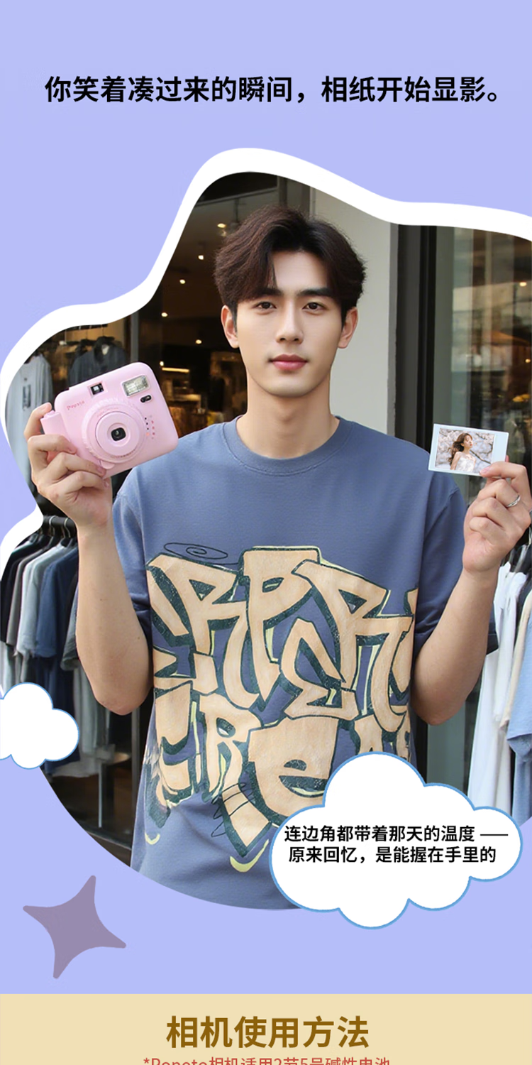 POPOTO includes photo paper as a gift, suitable for no-wash one-time imaging, holiday family gatherings for couples, cream white + star butterfly photo storage + 10 pieces of photo paper