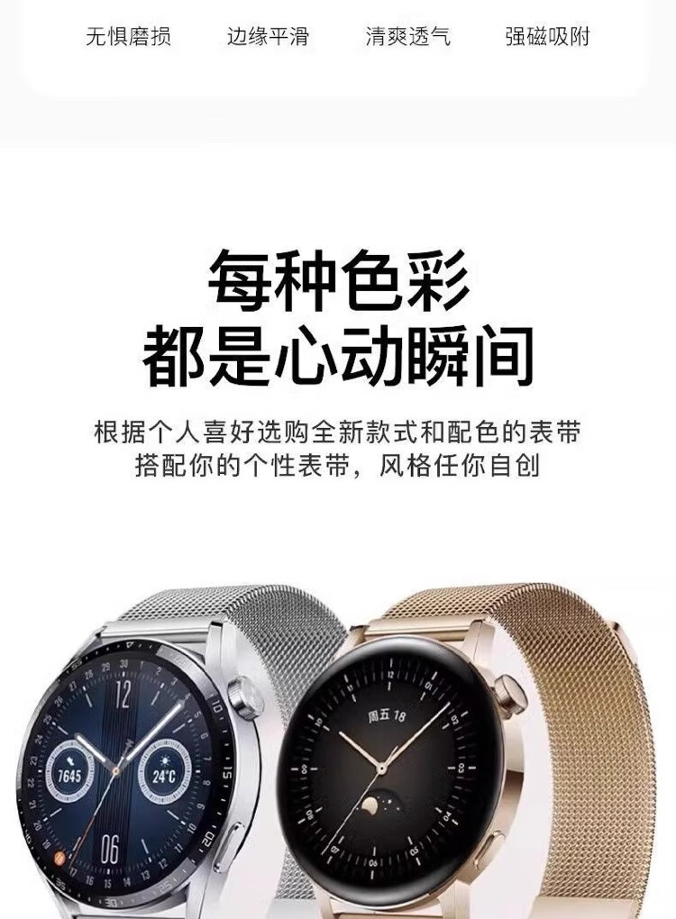 Huawei watch strap magnetic watch4proGT5/gt6pro Milanese metal watch3gt4 bracelet double magnetic black GT5/GT6/GT5pro 46 dial 22mm