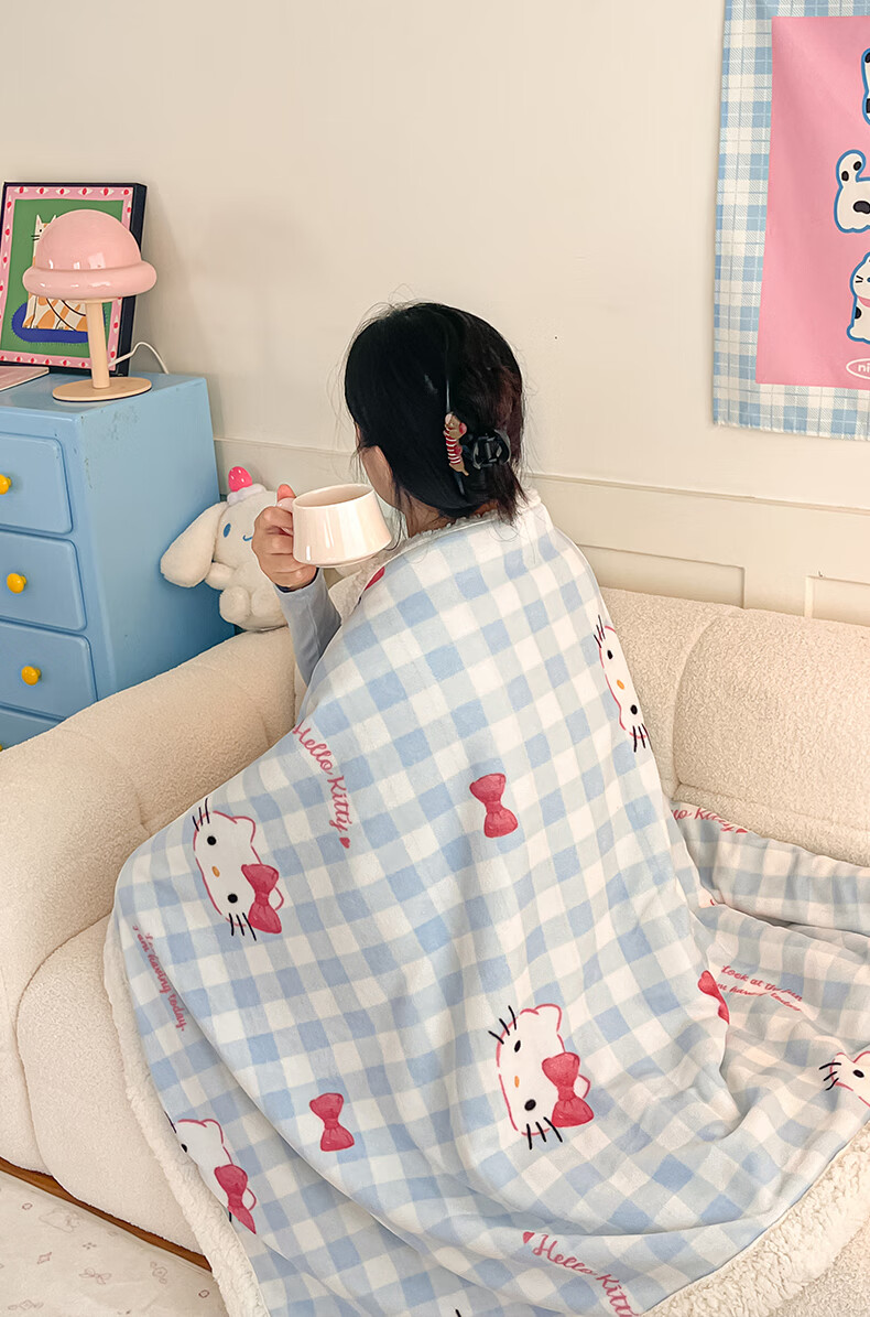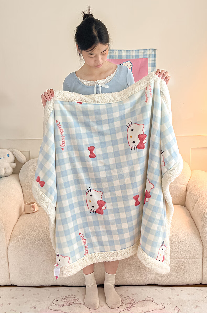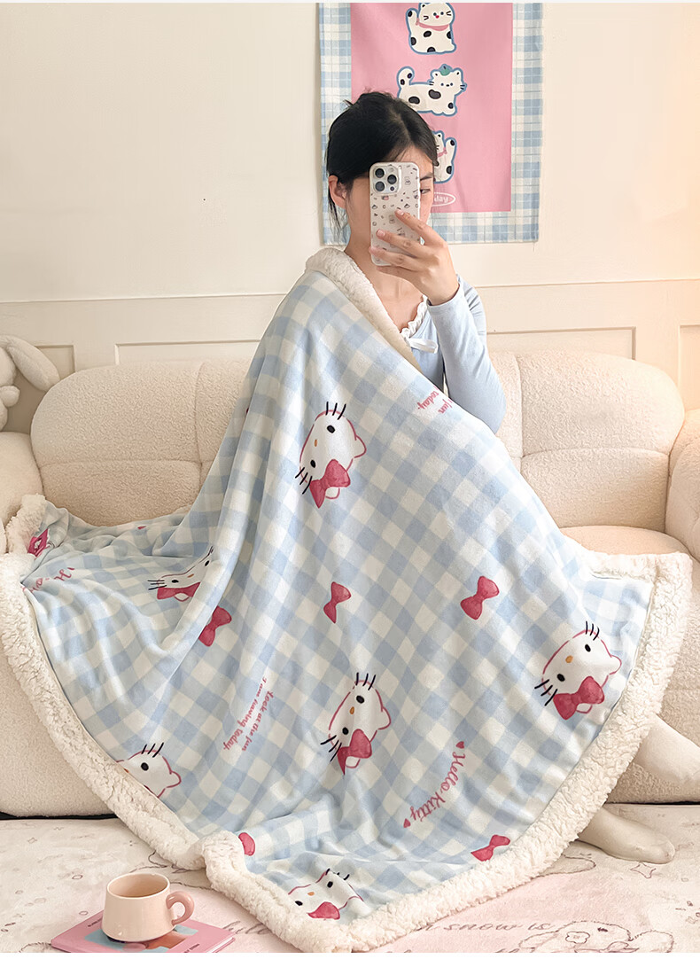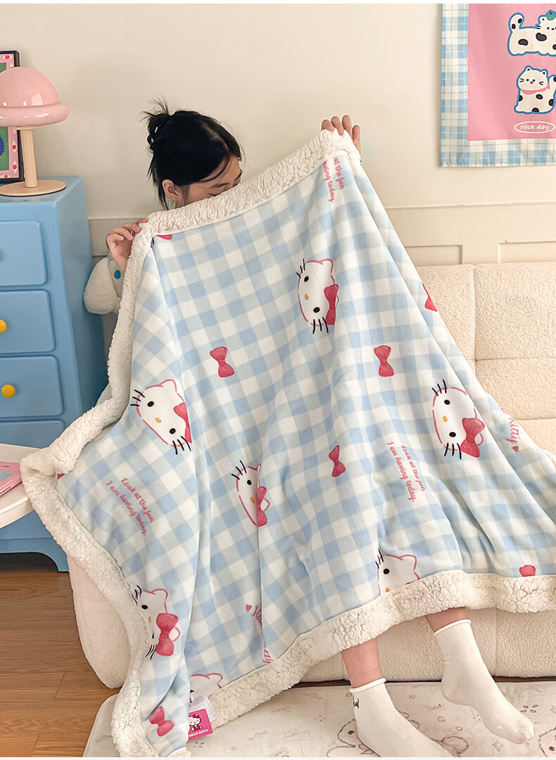 Jingyouyu KT Katzenmilch-Plüschdecke, Büro-Nickerchendecke, Lammkorallen-Samt, Klimaanlage, kleine Decke, Sofabezug, kleine Steppdecke, KT Babydecke, 70 x 100 cm