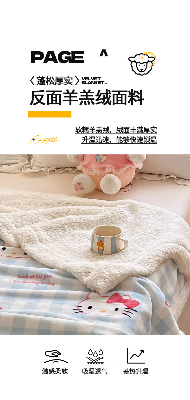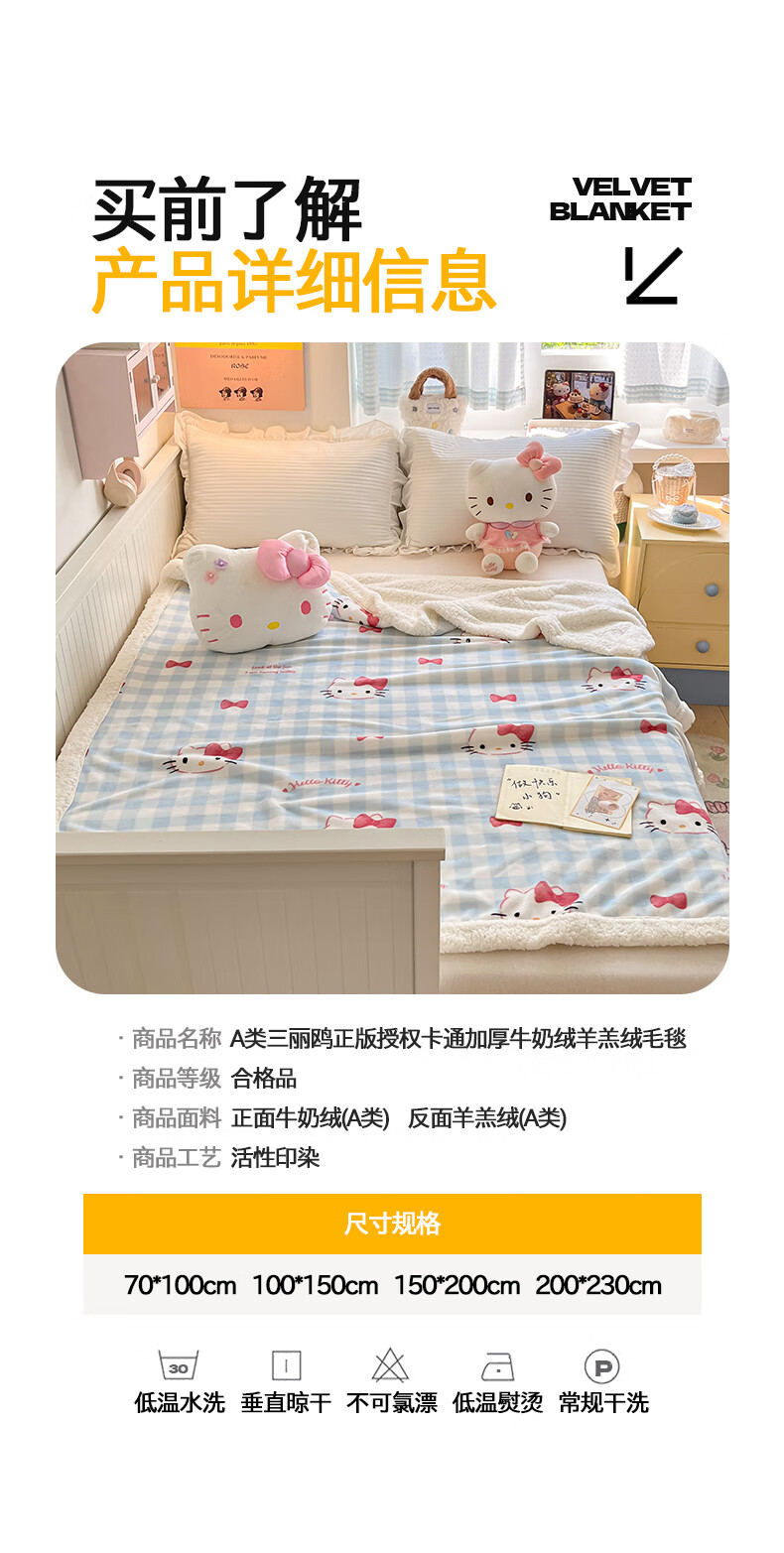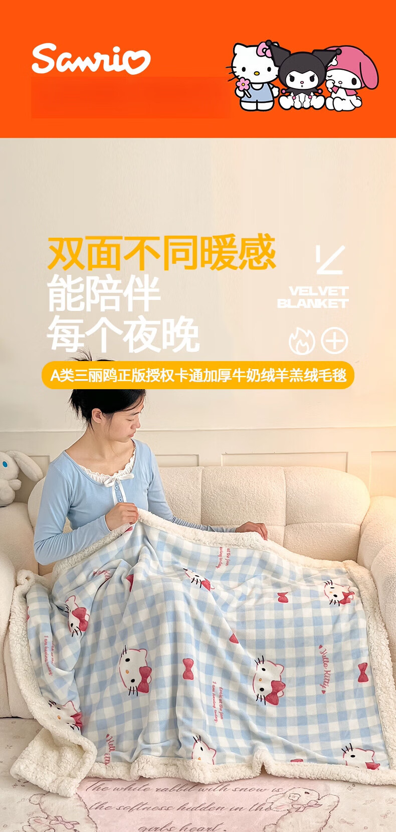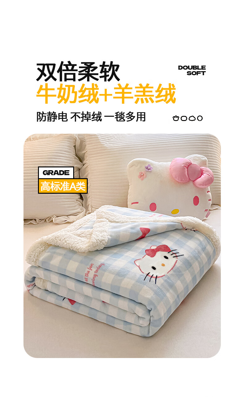 Jingyouyu KT Katzenmilch-Plüschdecke, Büro-Nickerchendecke, Lammkorallen-Samt, Klimaanlage, kleine Decke, Sofabezug, kleine Steppdecke, KT Babydecke, 70 x 100 cm