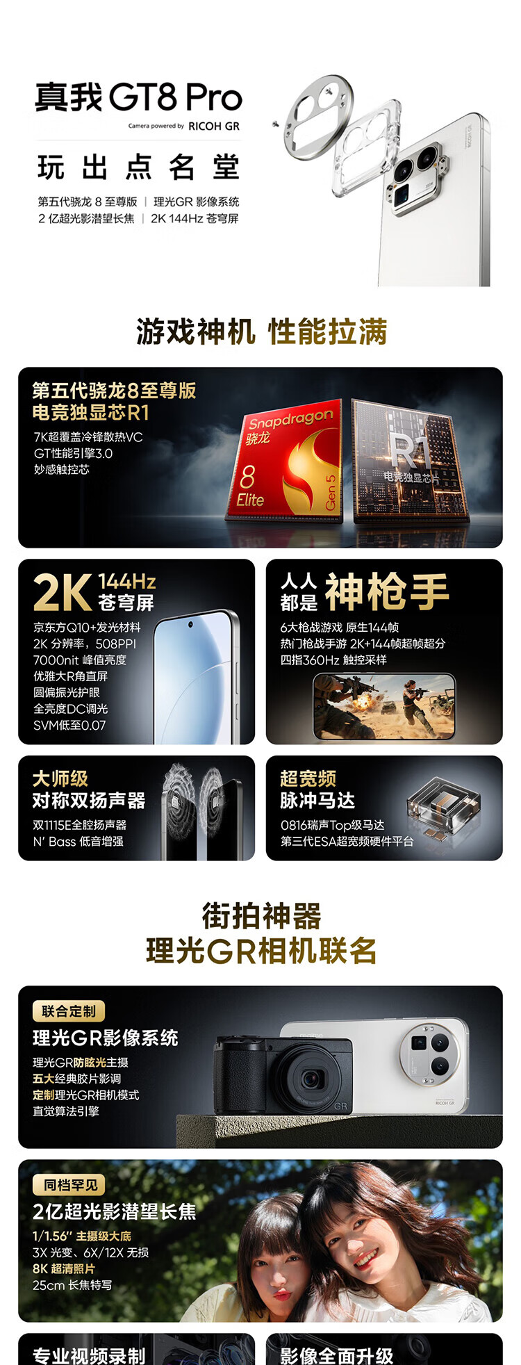 Realme GT8 Pro 5th Generation Snapdragon 8 Extreme Edition E-Sports Independent Graphics Chip Ricoh GR Image 200 Million Potential Gaming E-Sports Phone BH30 White 16GB+512GB