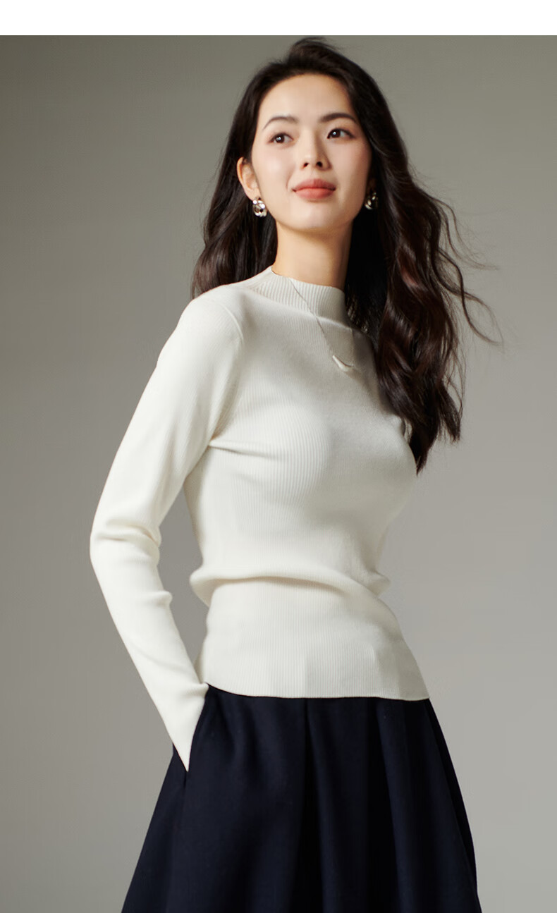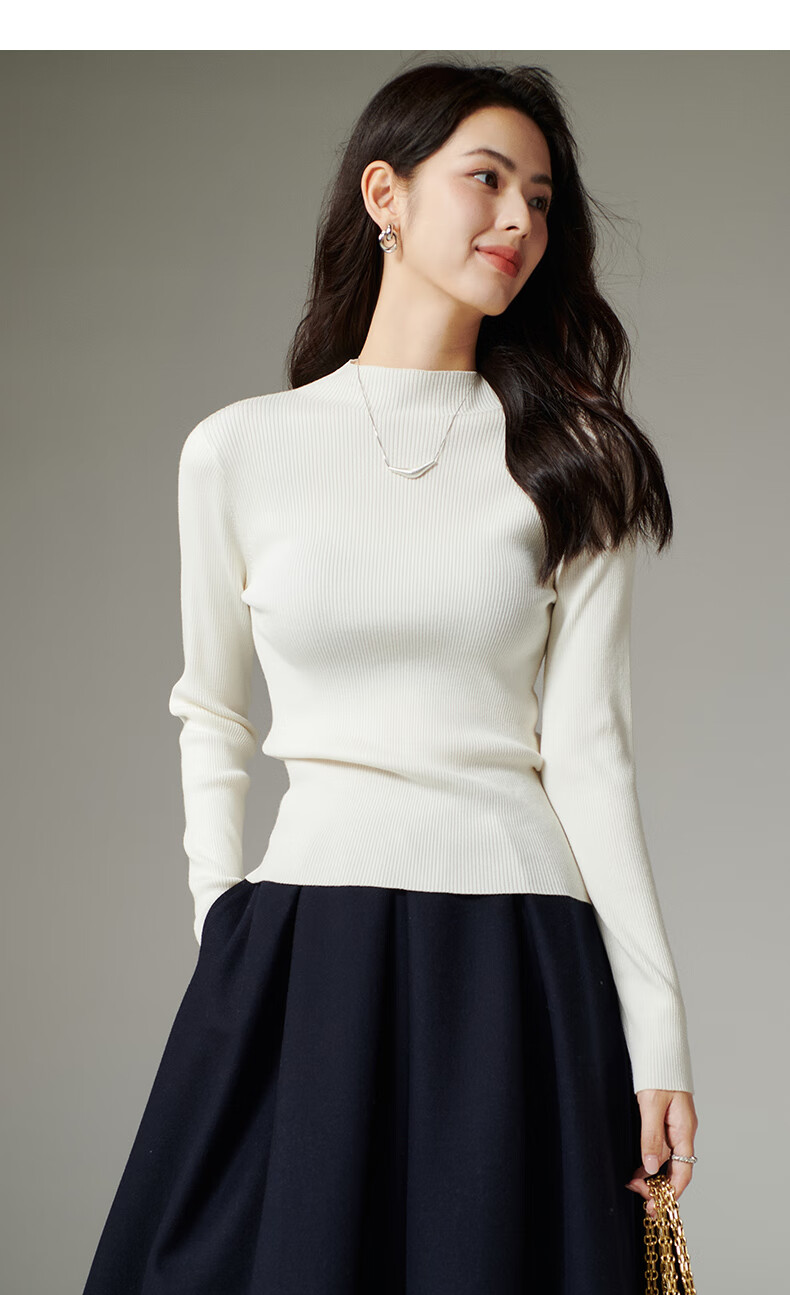 Late White New Product 2025 Autumn Fashion Sweater Versatile Solid Color Casual Commuting Sweater Women's Off-White XL