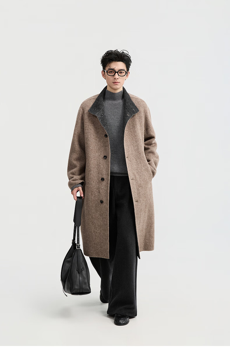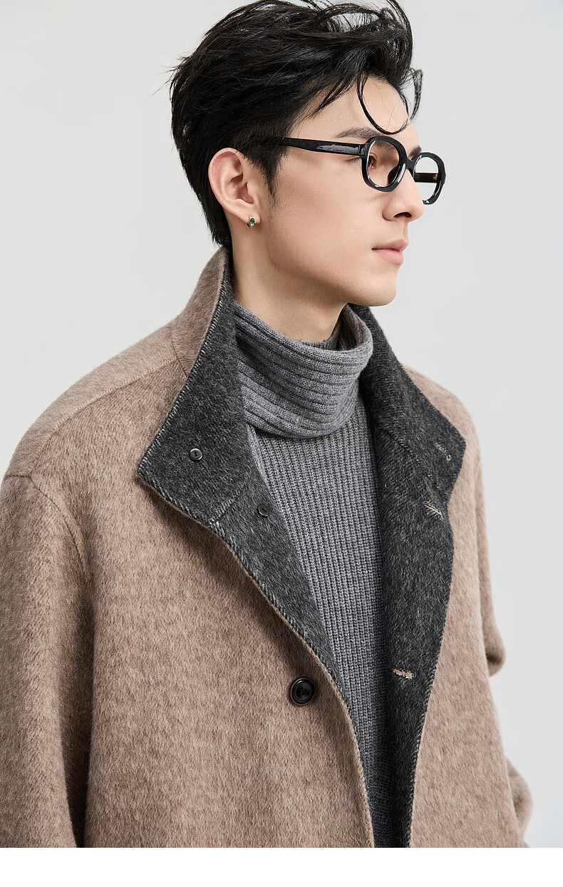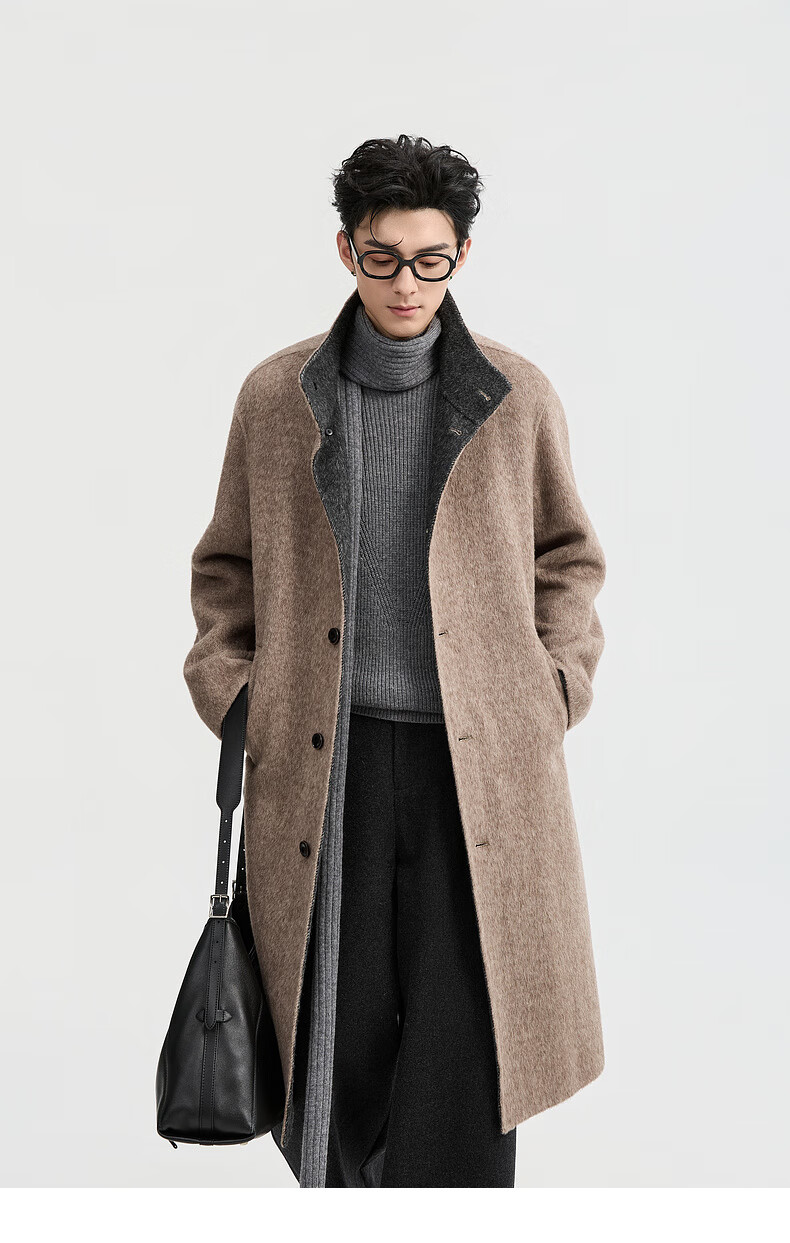 Earl Zall Contrast Color Wool Coat Men's Rabbit Fur Mulberry Silk Blended 2025 Autumn and Winter New Stand Collar Jacket Men P541594 Mocha L (175)
