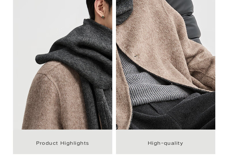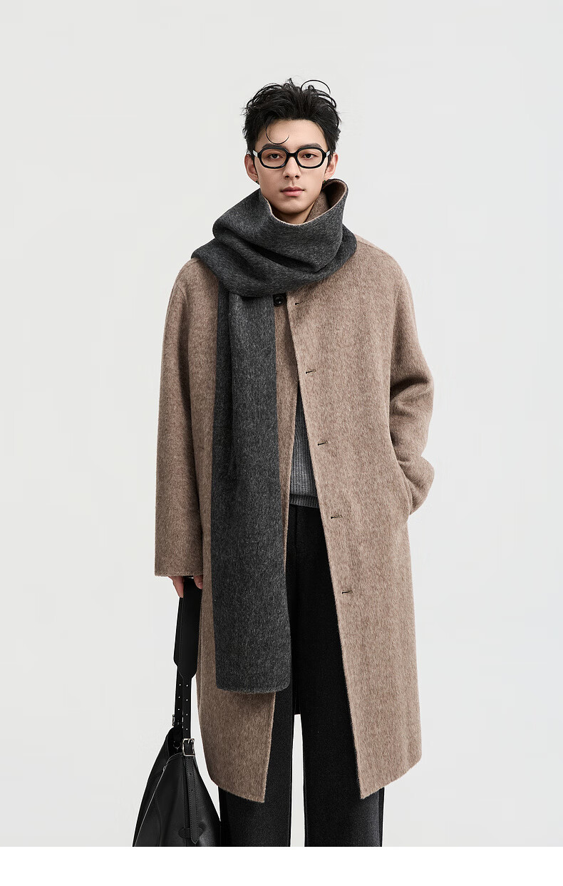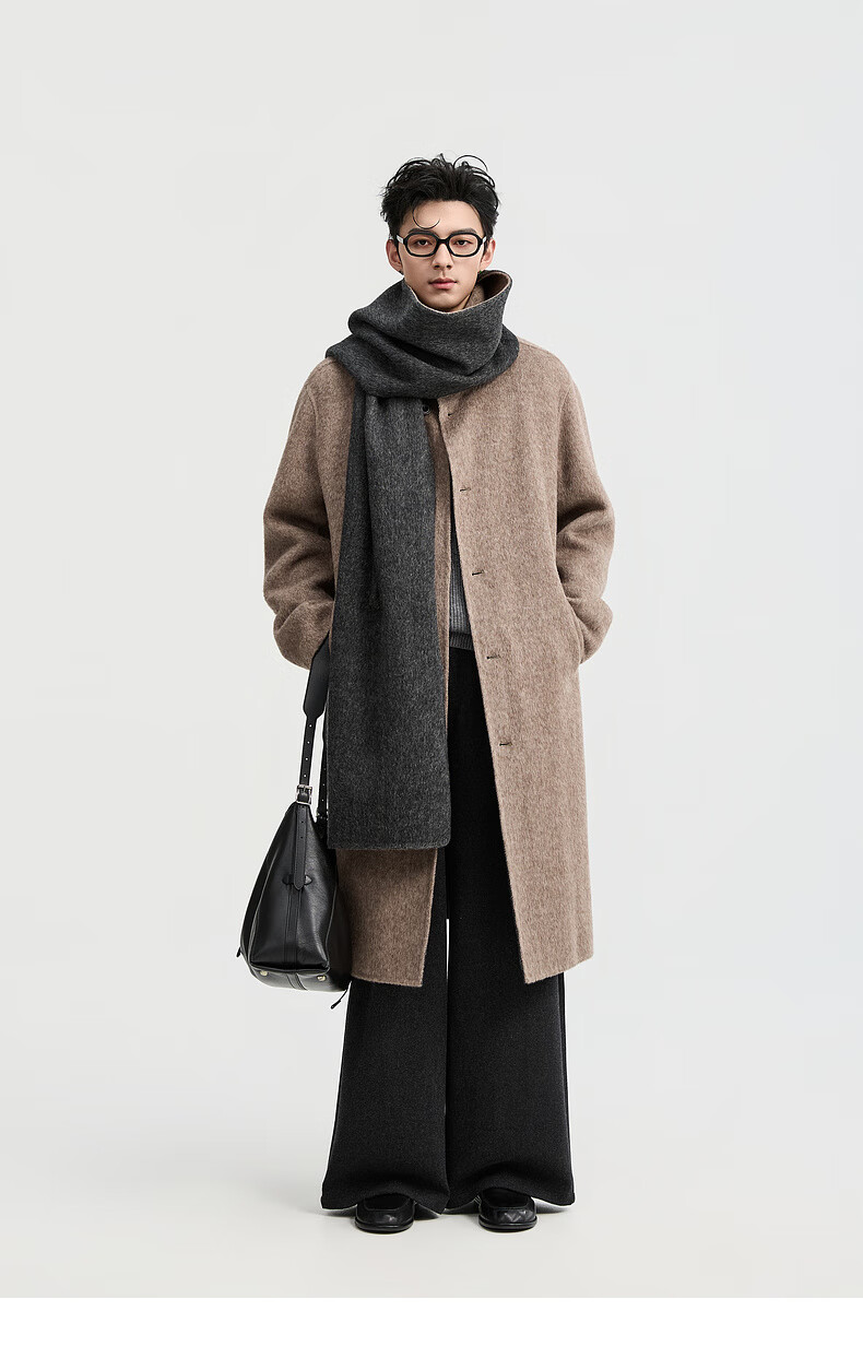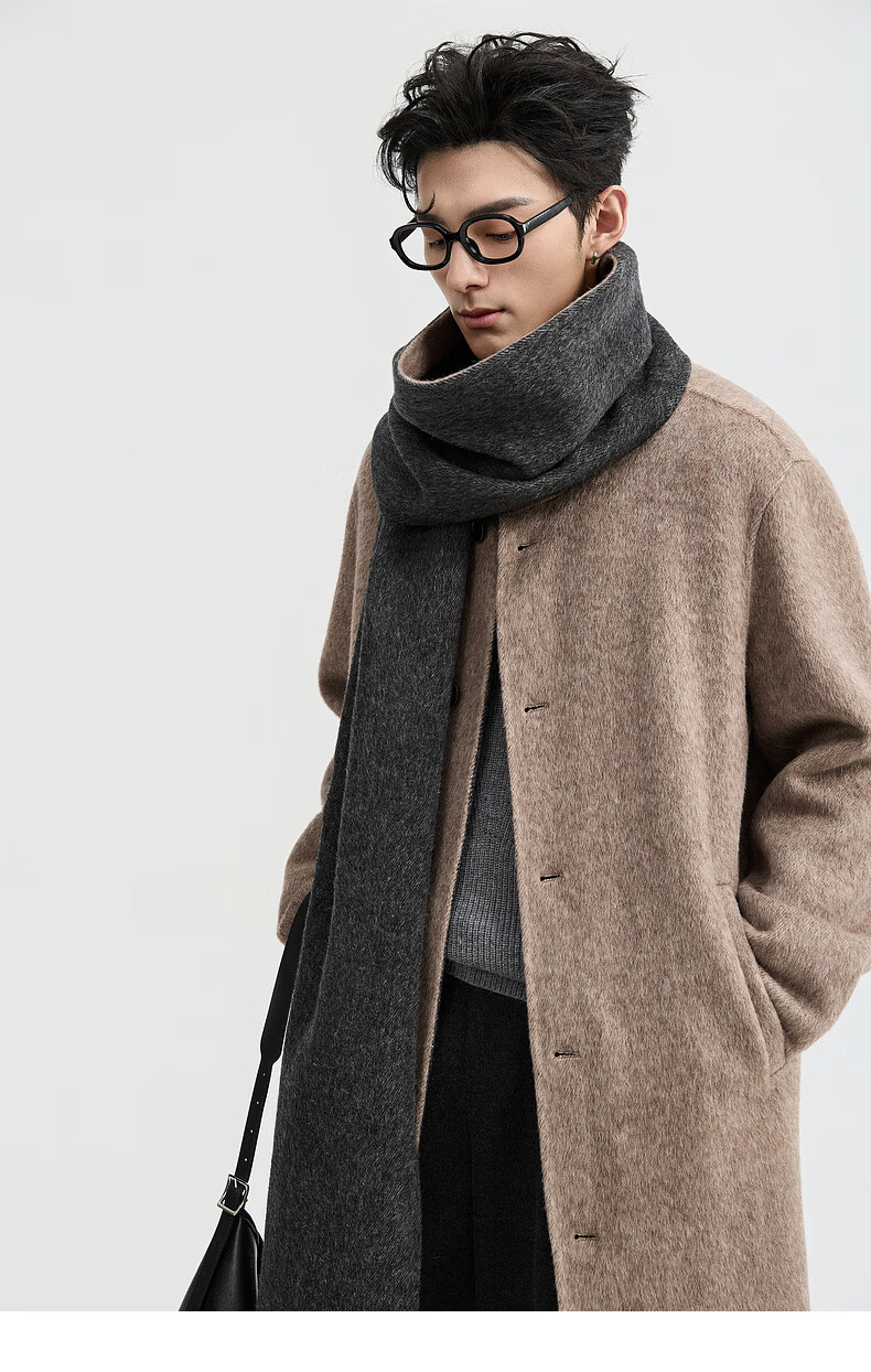 Earl Zall Contrast Color Wool Coat Men's Rabbit Fur Mulberry Silk Blended 2025 Autumn and Winter New Stand Collar Jacket Men P541594 Mocha L (175)