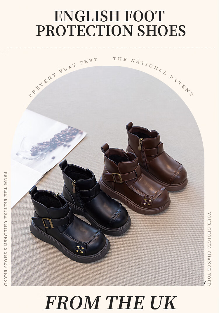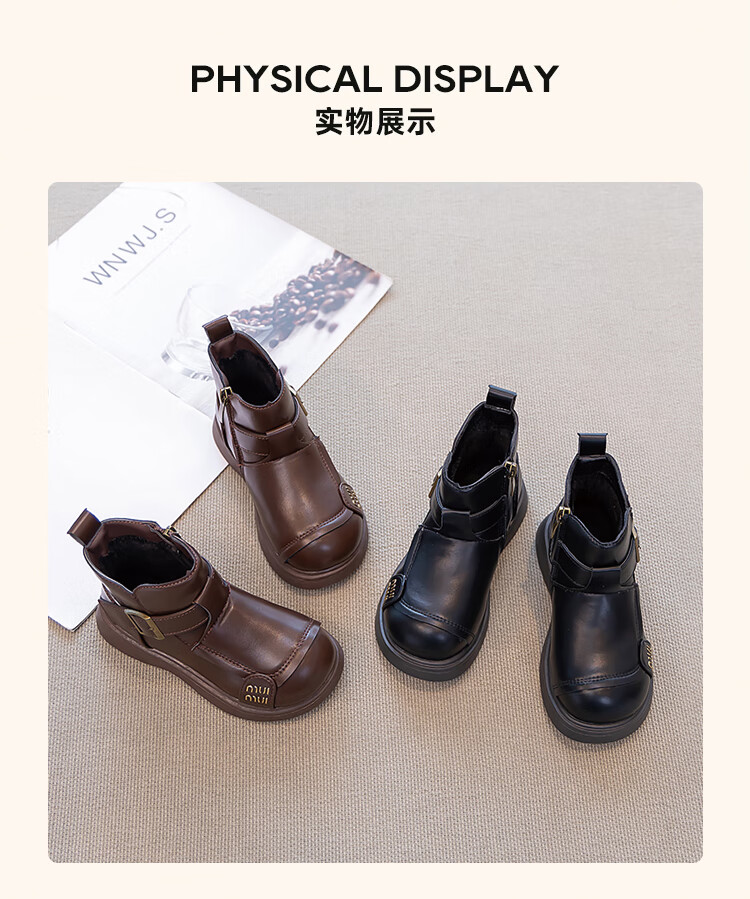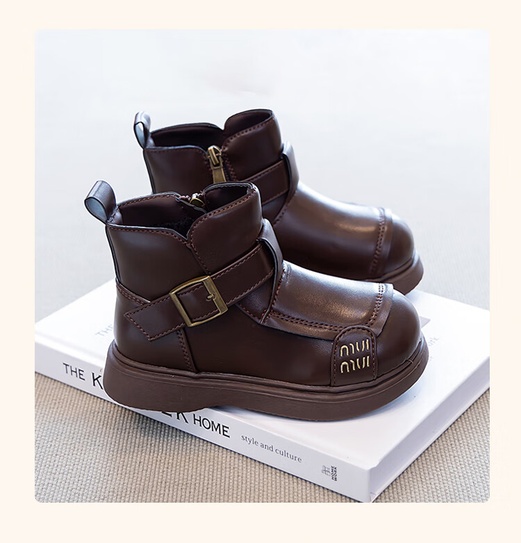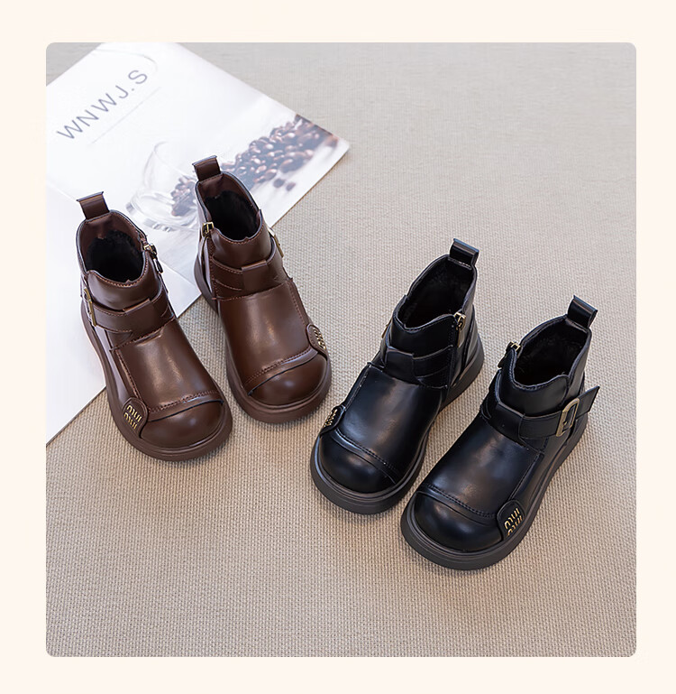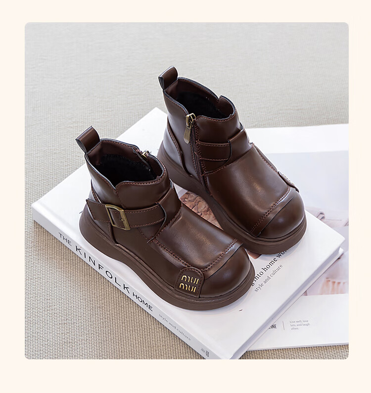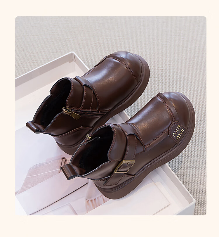 Children's Western Style Boots Children's British Style Martin Boots Autumn and Winter New Little Girls Soft Soled Velvet Short Boots Dark Brown Velvet 26 Inner Length 16.3cm