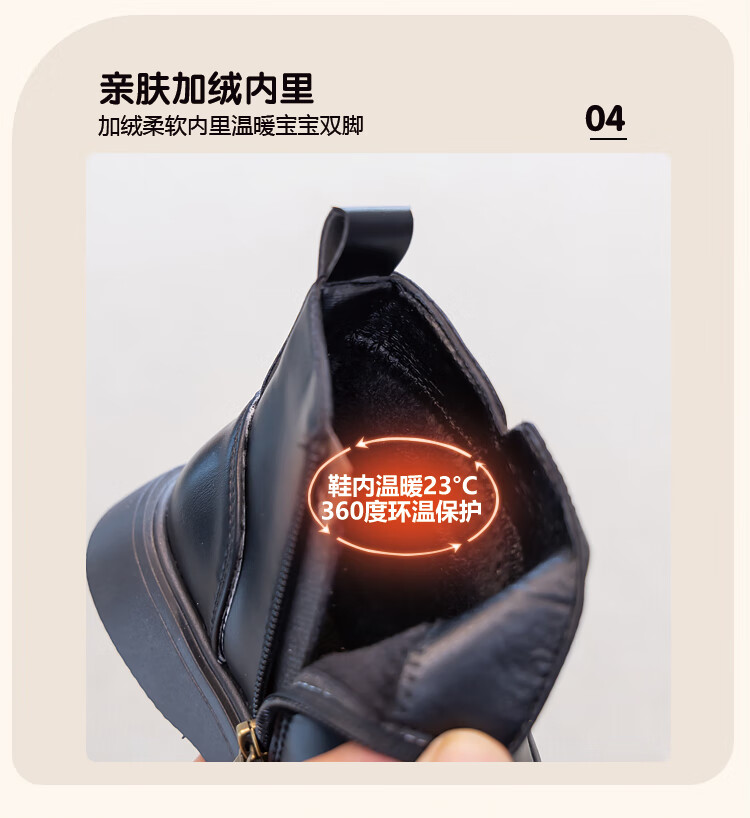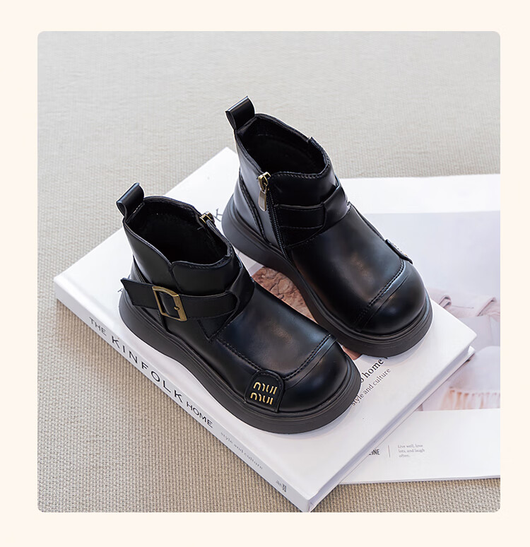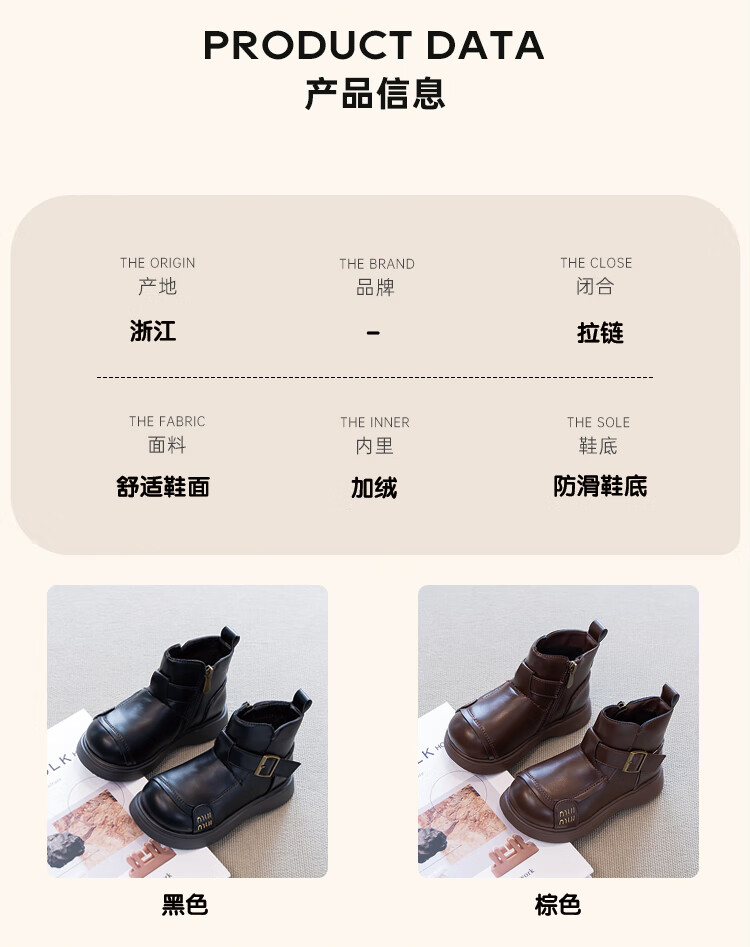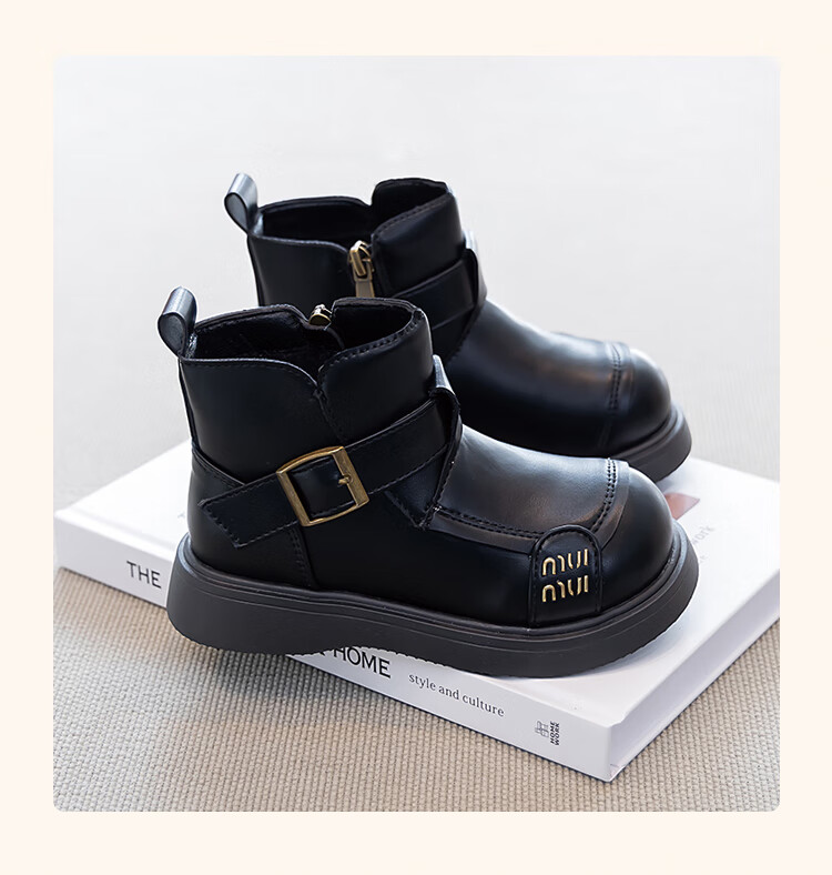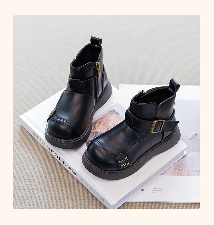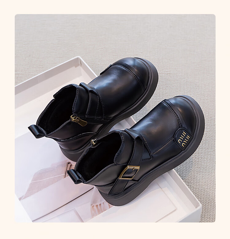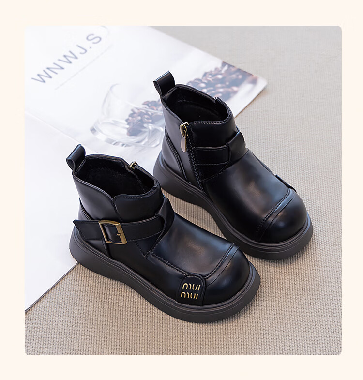 Children's Western Style Boots Children's British Style Martin Boots Autumn and Winter New Little Girls Soft Soled Velvet Short Boots Dark Brown Velvet 26 Inner Length 16.3cm