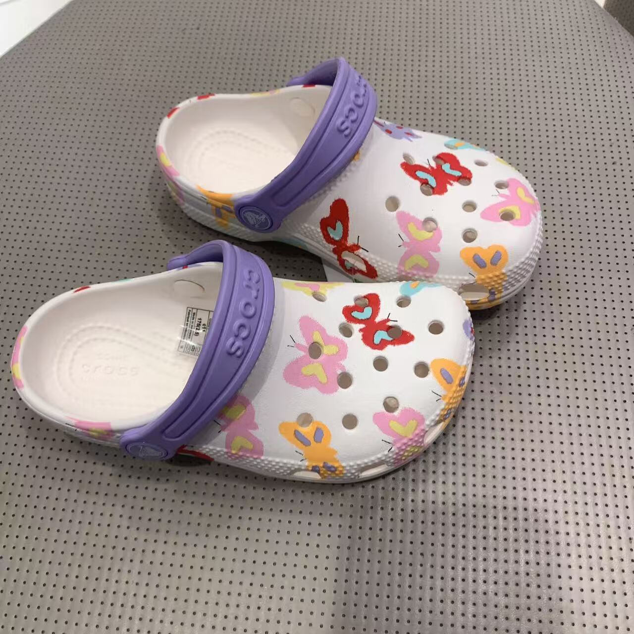 Crocs (CROCS) classic butterfly print children's shoes for boys and girls Clog211255-0WV chalk color 33/34