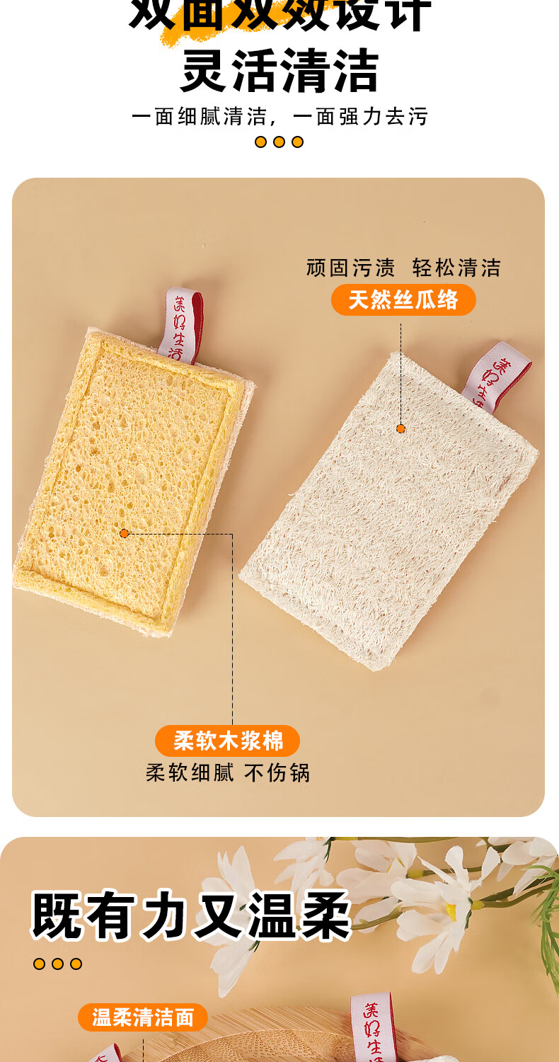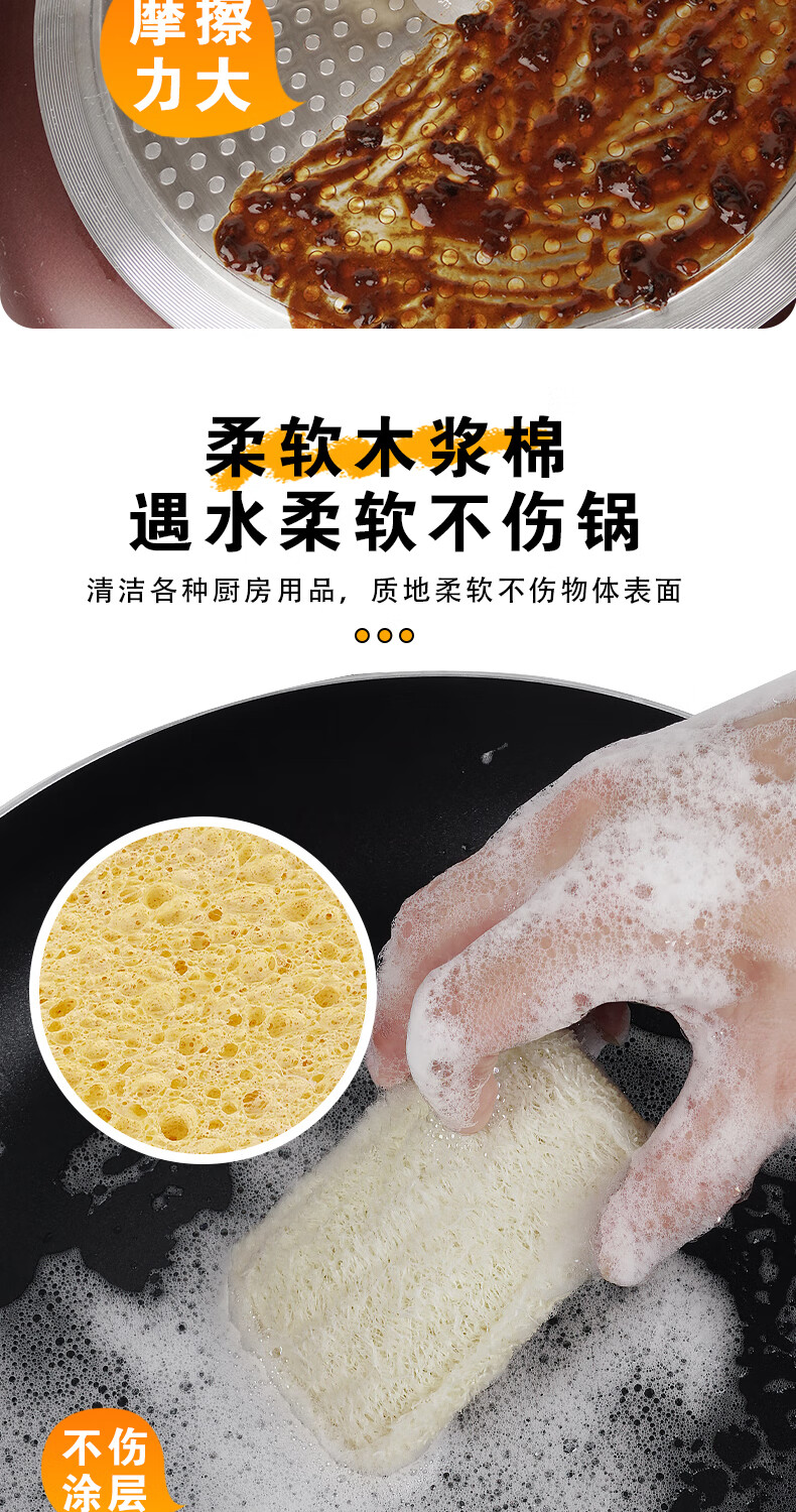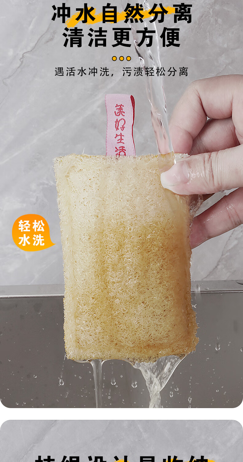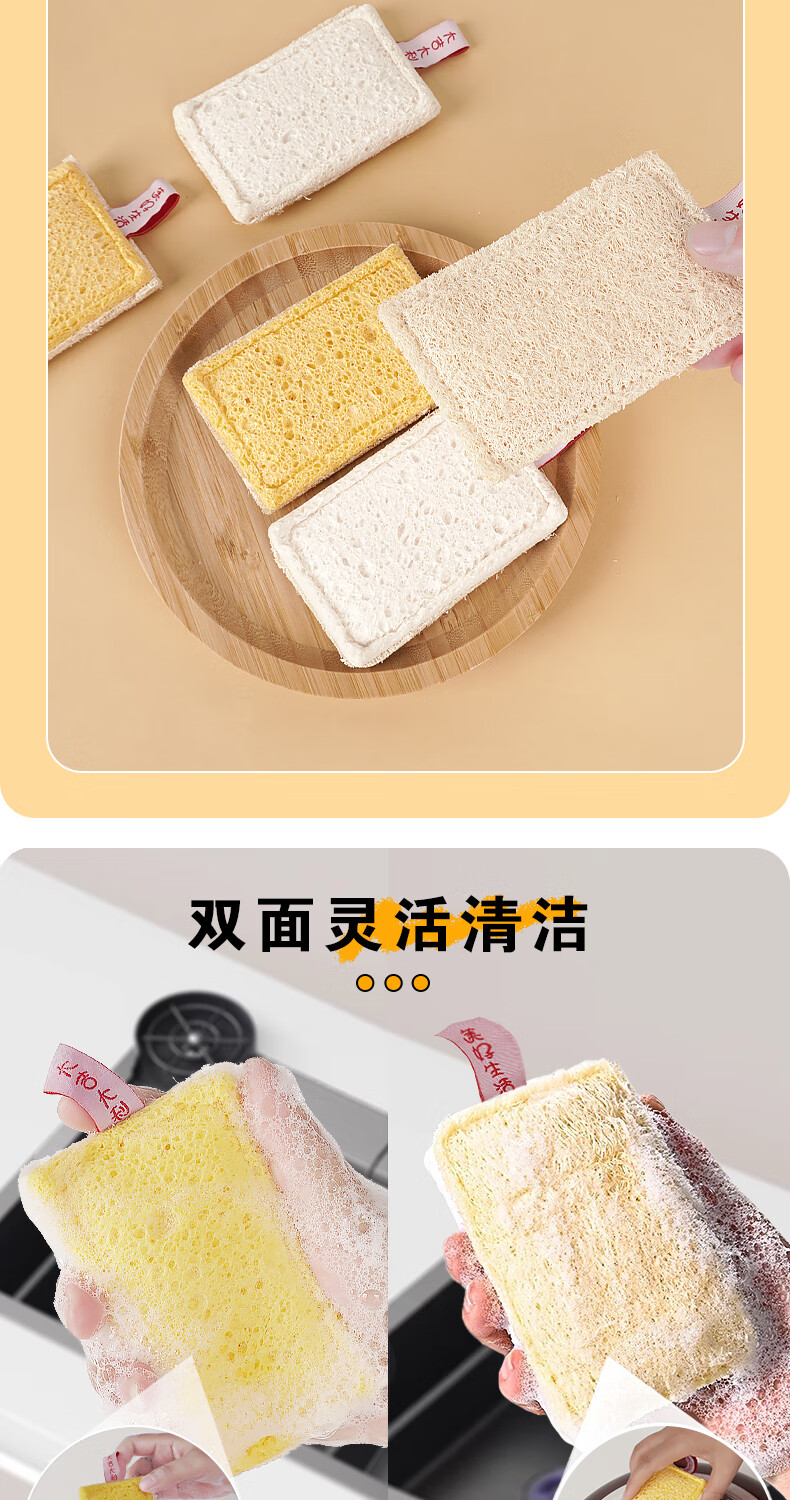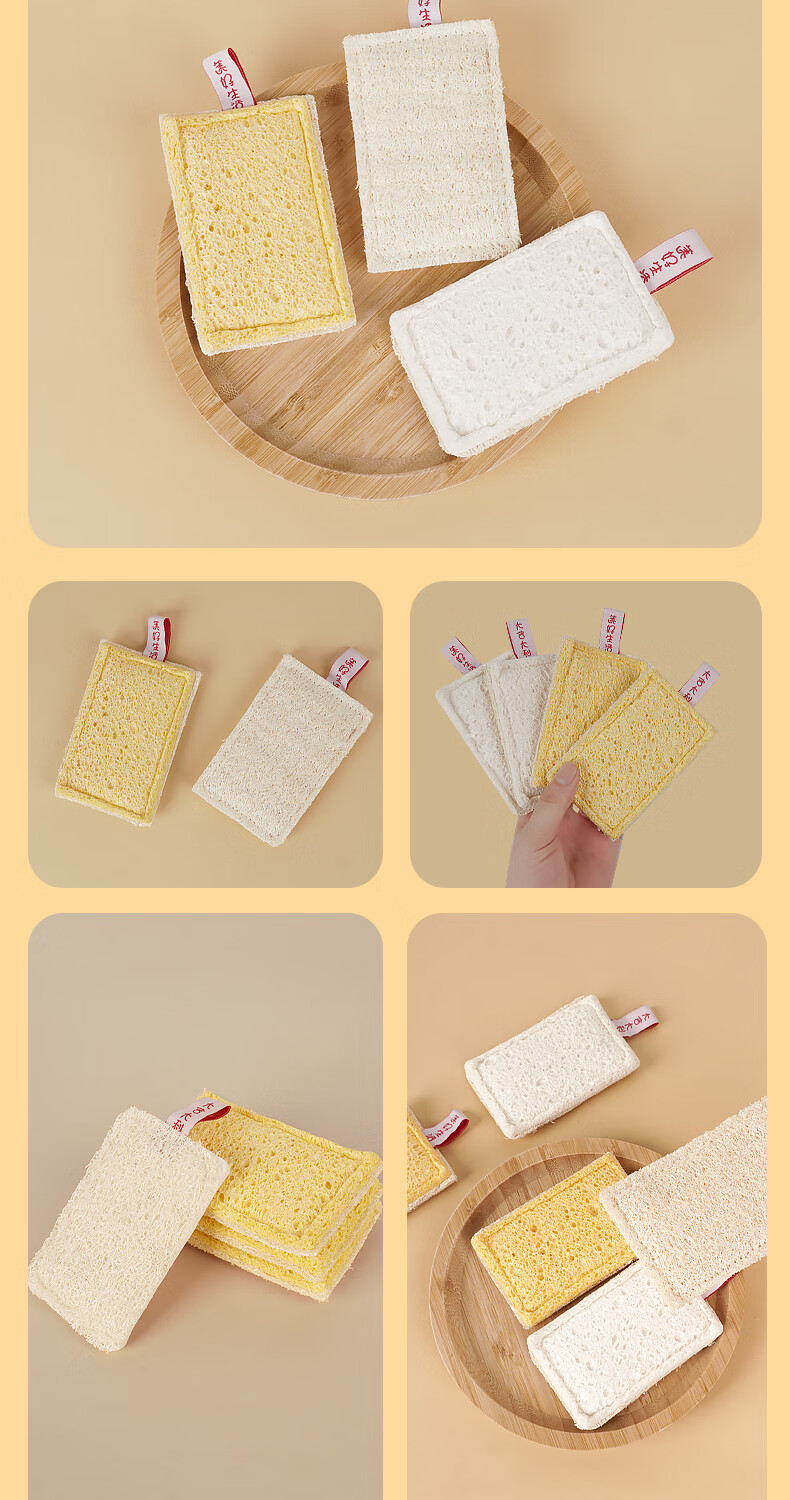 Double-sided natural wood pulp cotton loofah, powerful decontamination and easy to clean wood pulp cotton dishwashing rag and kitchen sponge wipe, reversible (loofah + wood pulp cotton) 5 pieces