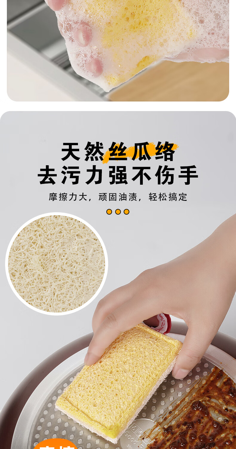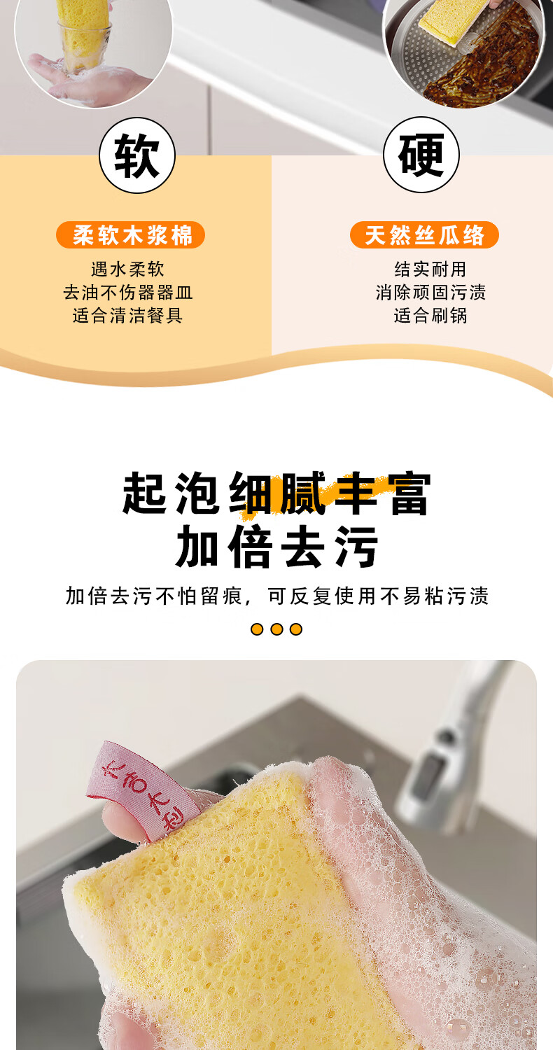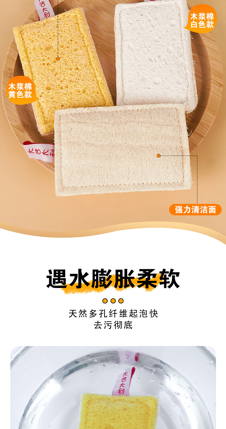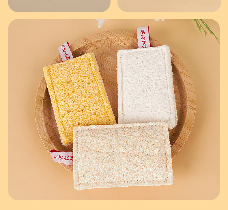 Double-sided natural wood pulp cotton loofah, powerful decontamination and easy to clean wood pulp cotton dishwashing rag and kitchen sponge wipe, reversible (loofah + wood pulp cotton) 5 pieces