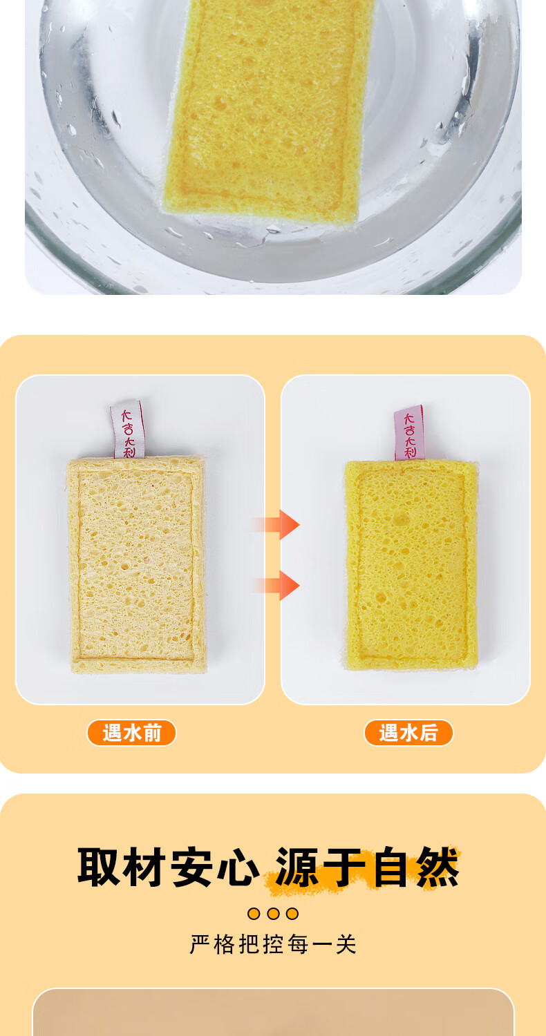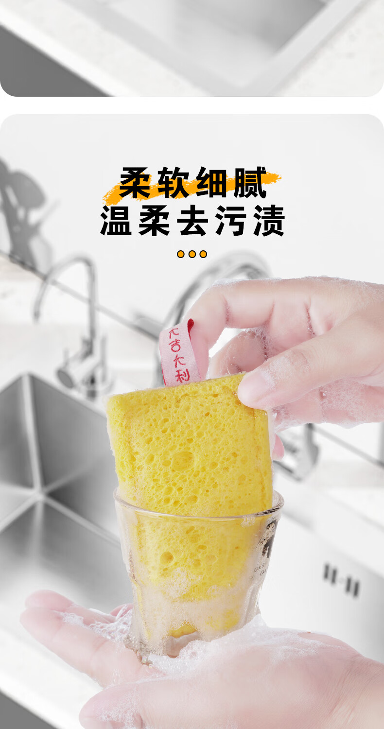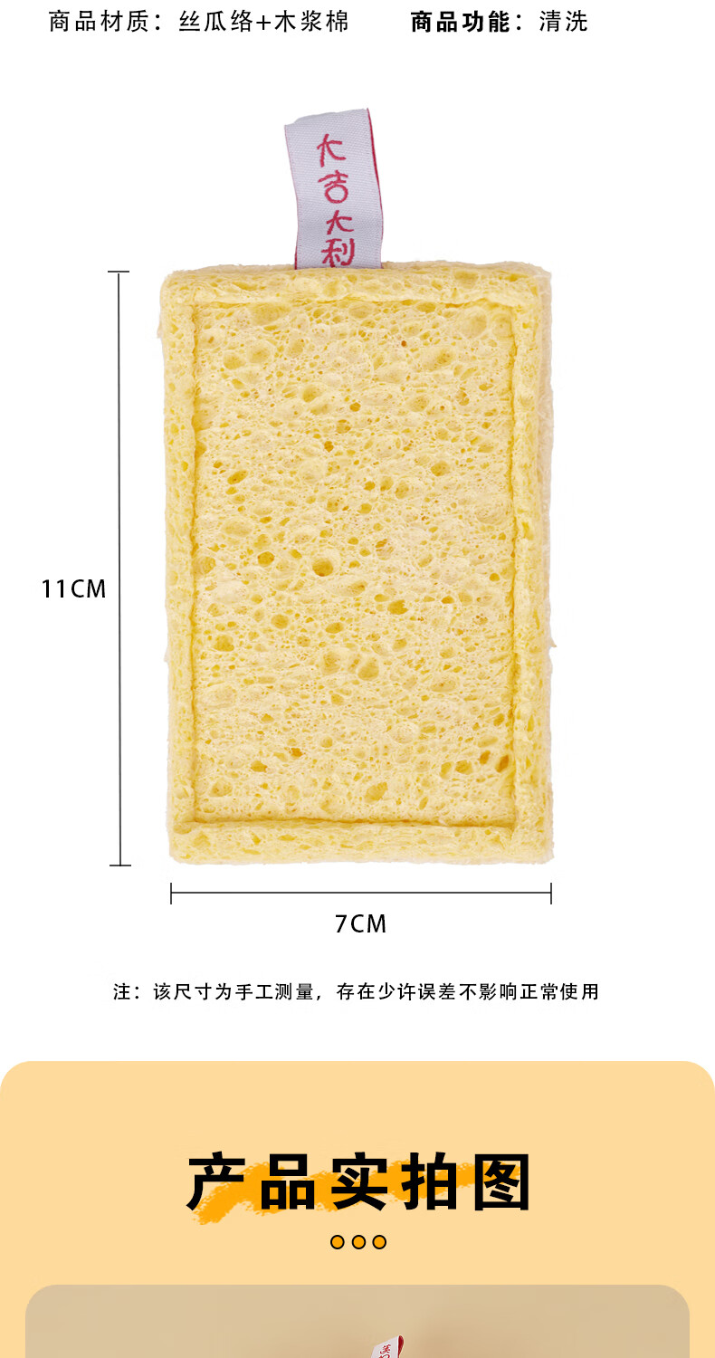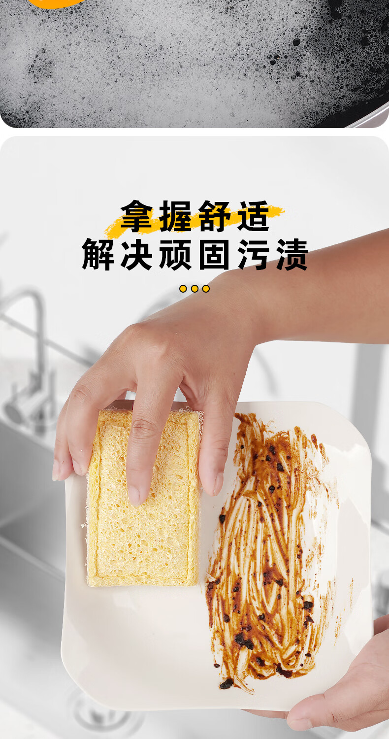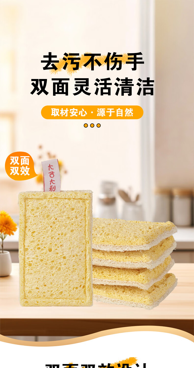 Double-sided natural wood pulp cotton loofah, powerful decontamination and easy to clean wood pulp cotton dishwashing rag and kitchen sponge wipe, reversible (loofah + wood pulp cotton) 5 pieces