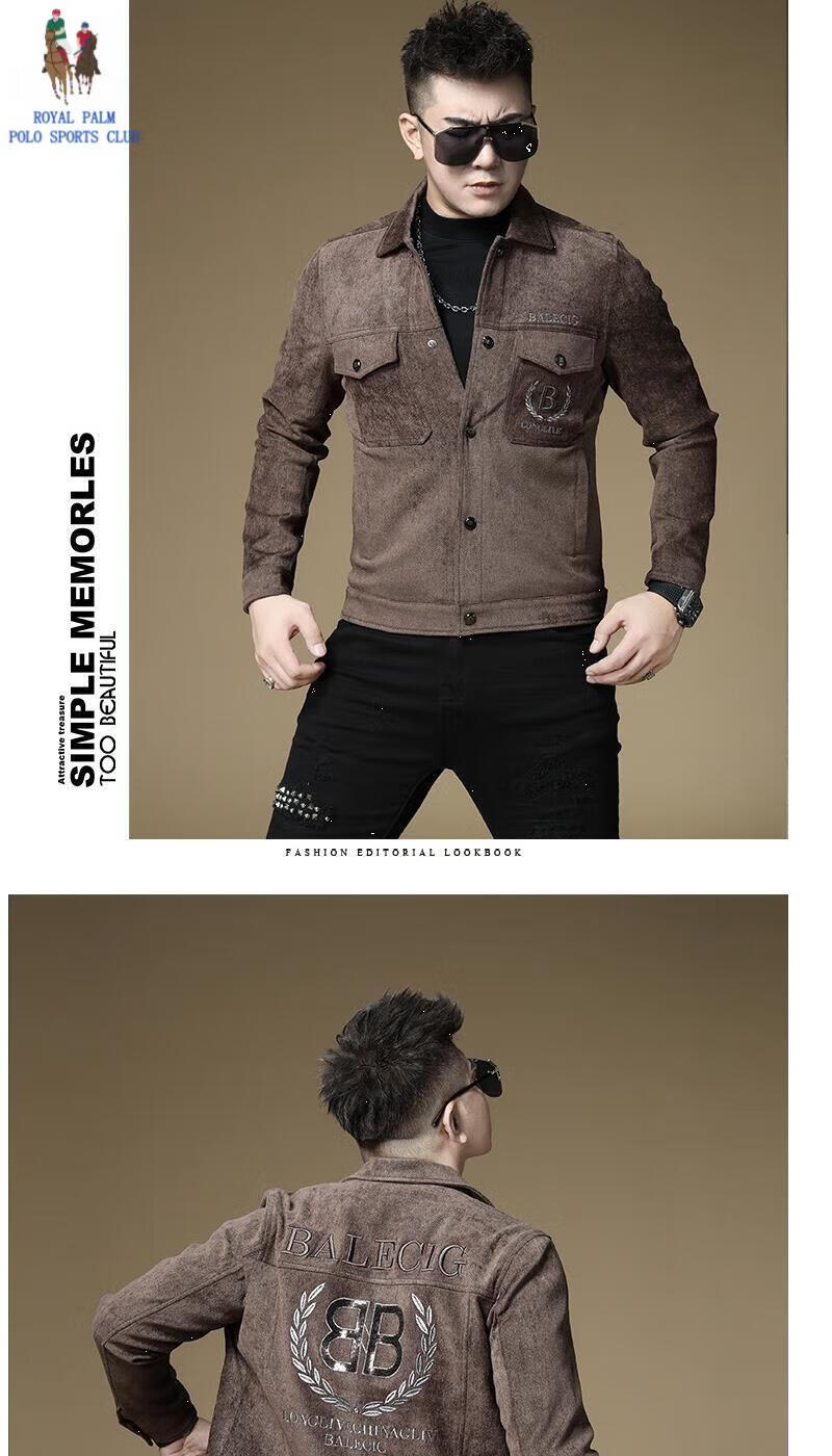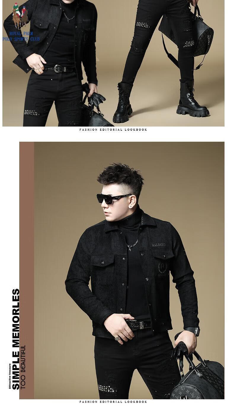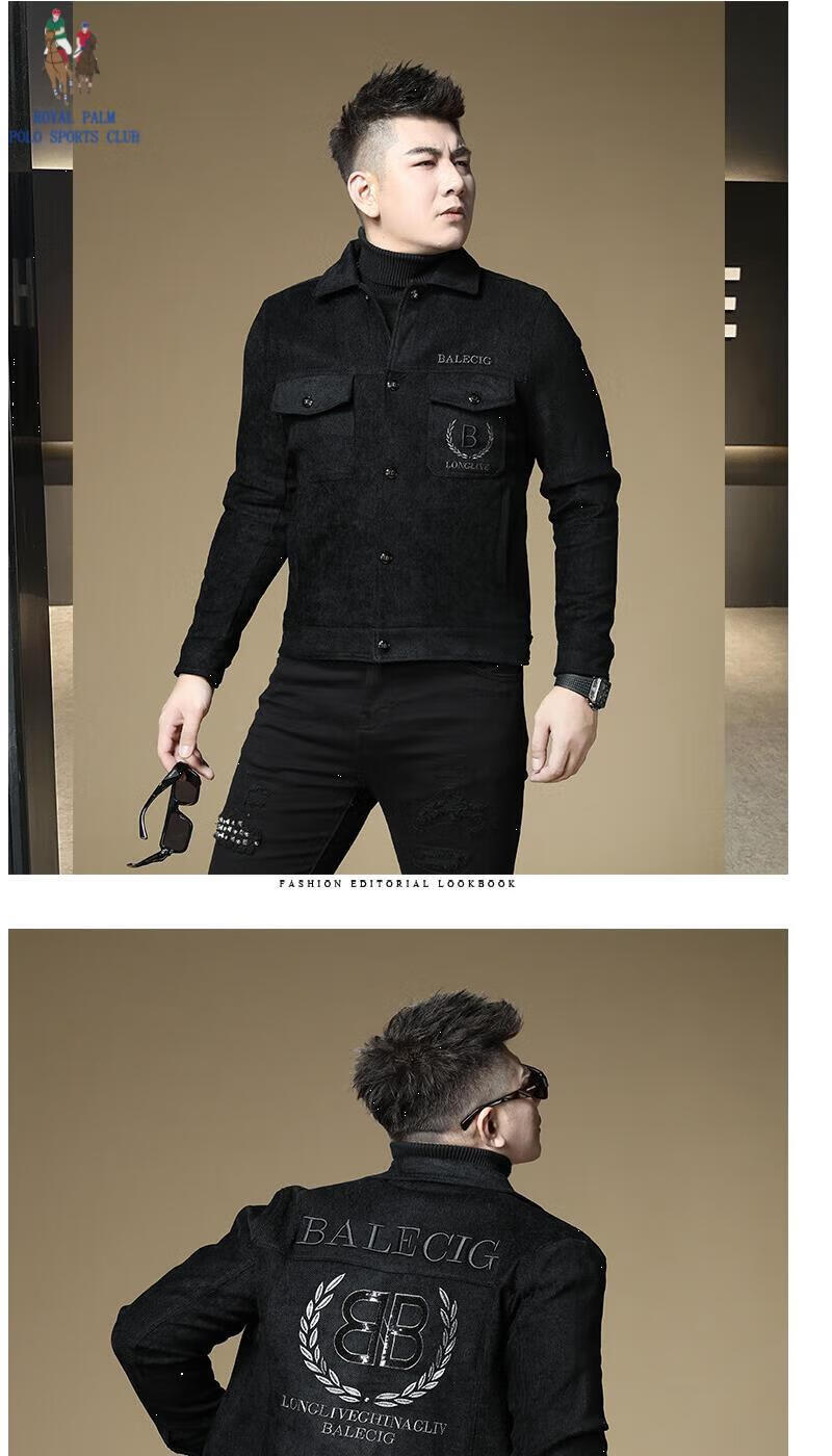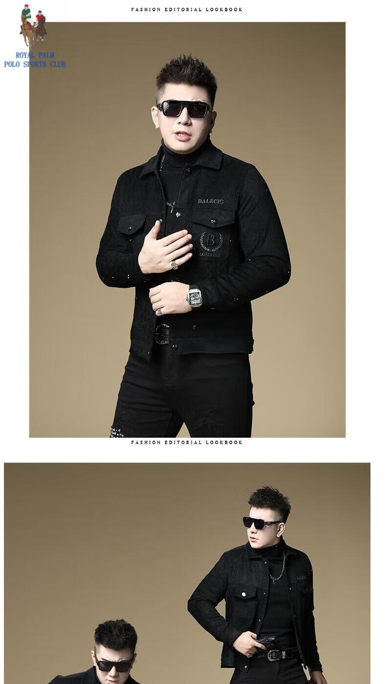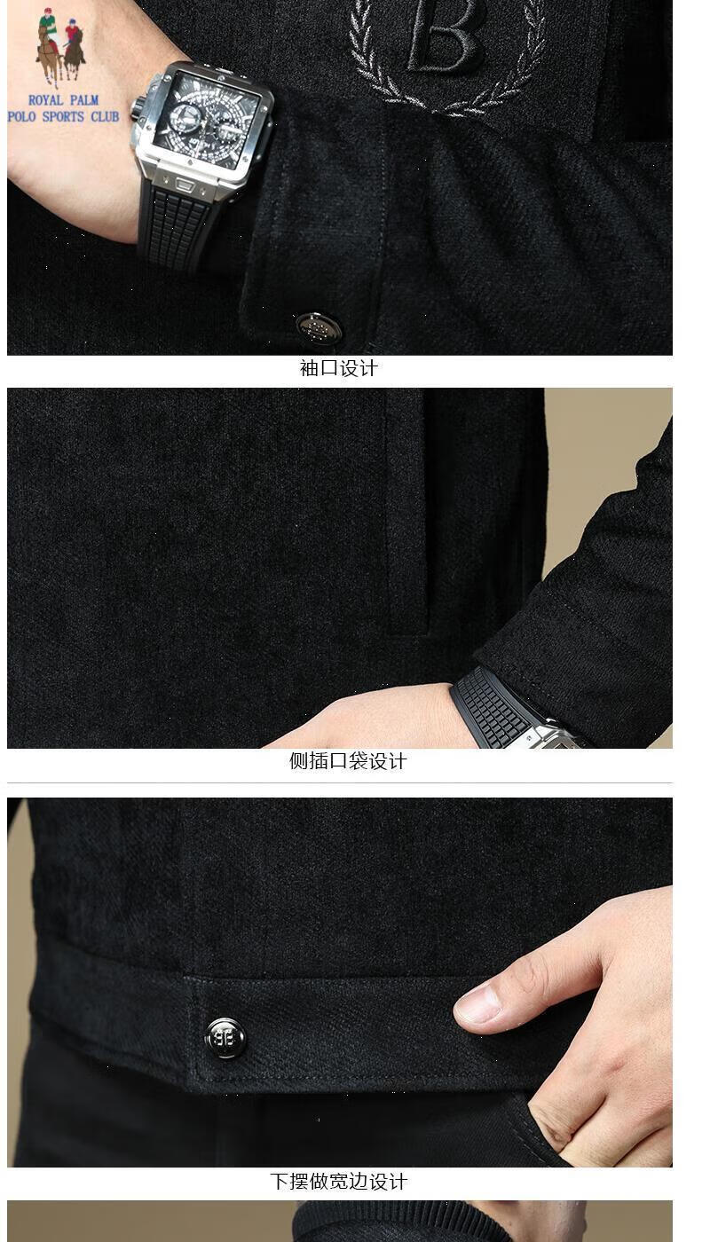 ROYAL PALM POLO SPORTS CLUB men's autumn new jacket men's European brand fashion trend sequin embroidery thickened warm long-sleeved jacket black (velvet) thickened 2XL recommended weight 135-150Jin Jin equals 0.5 kg