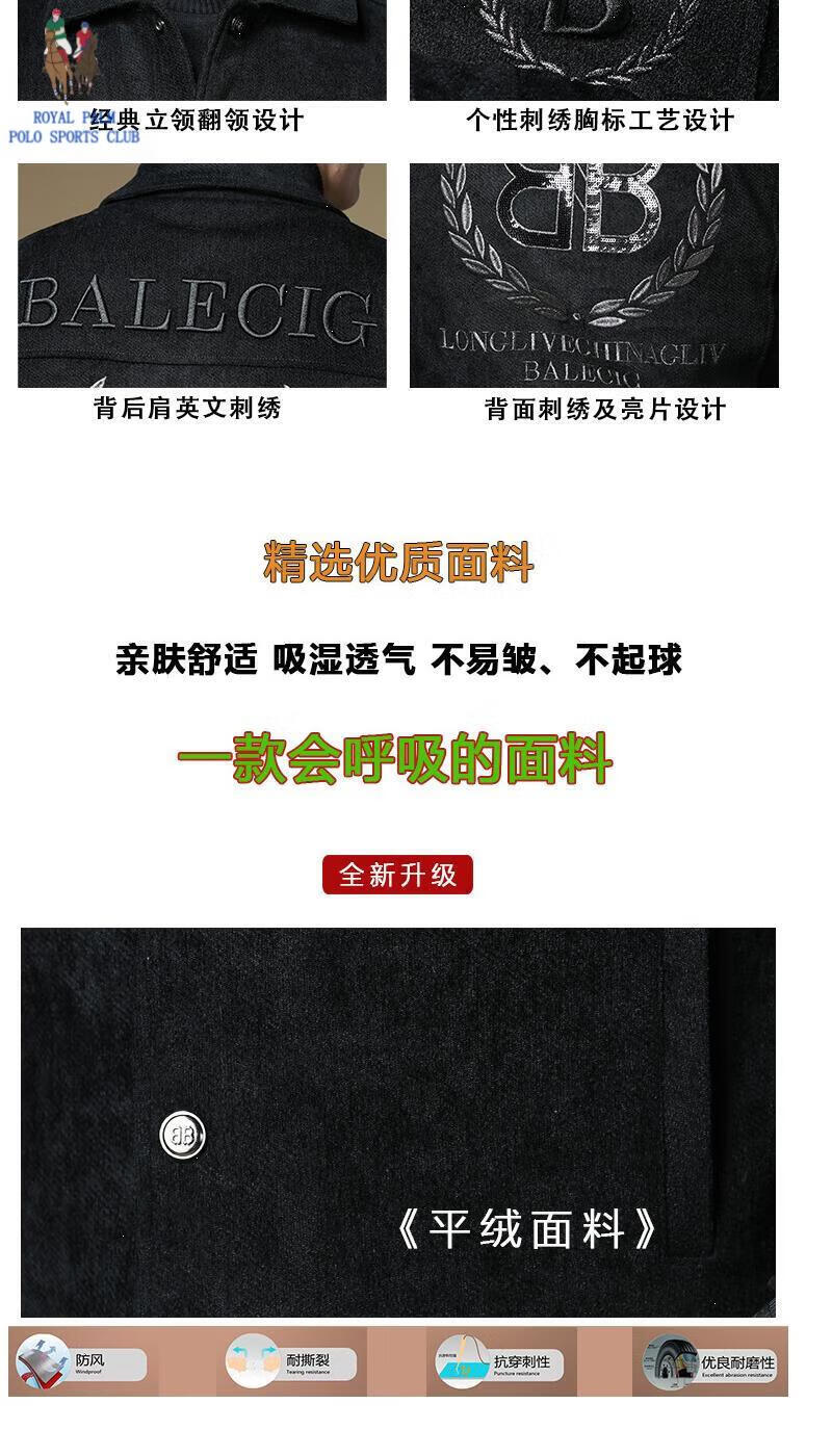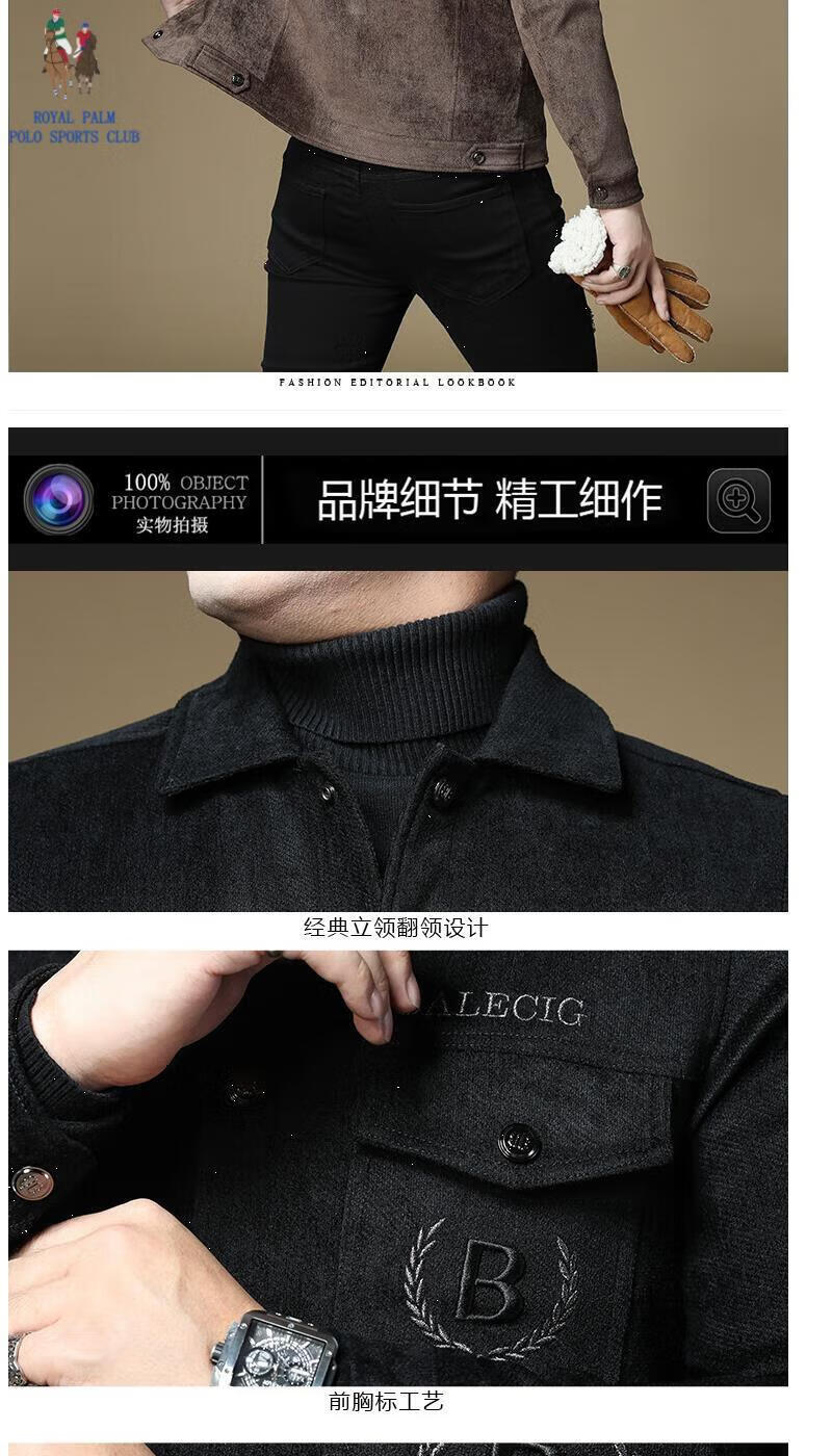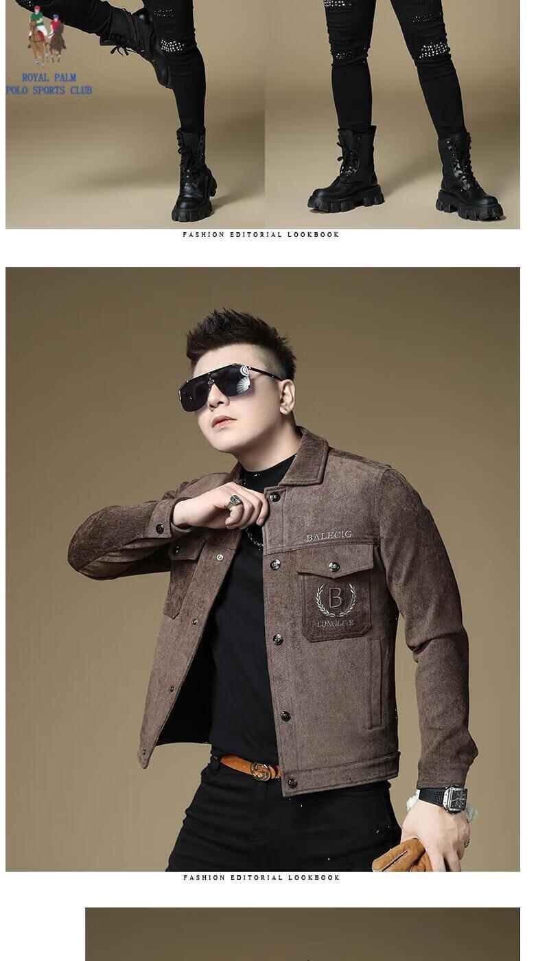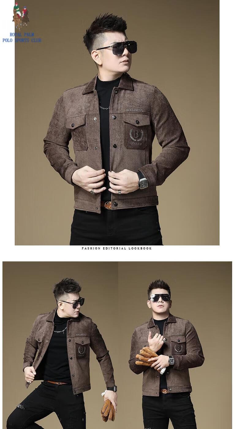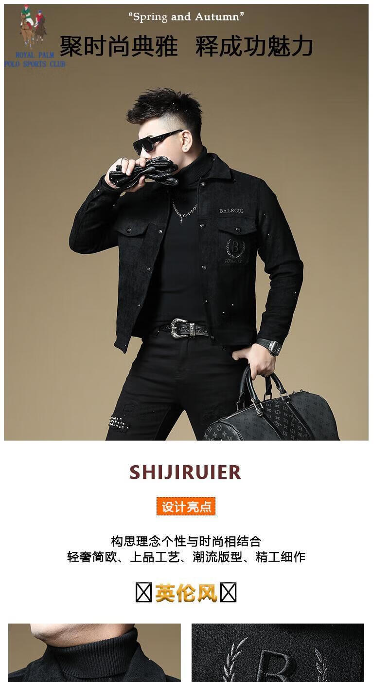 ROYAL PALM POLO SPORTS CLUB men's autumn new jacket men's European brand fashion trend sequin embroidery thickened warm long-sleeved jacket black (velvet) thickened 2XL recommended weight 135-150Jin Jin equals 0.5 kg