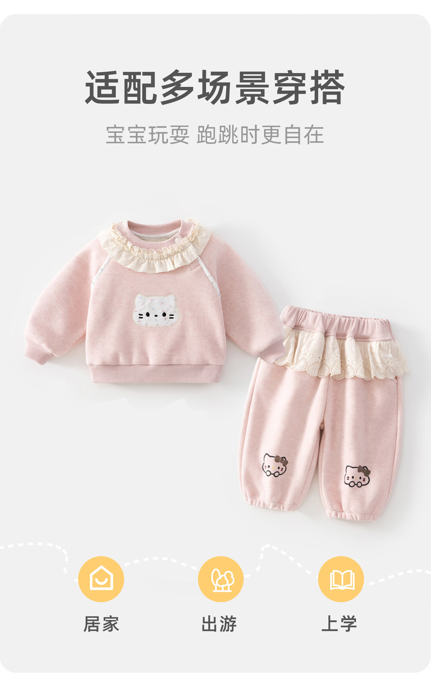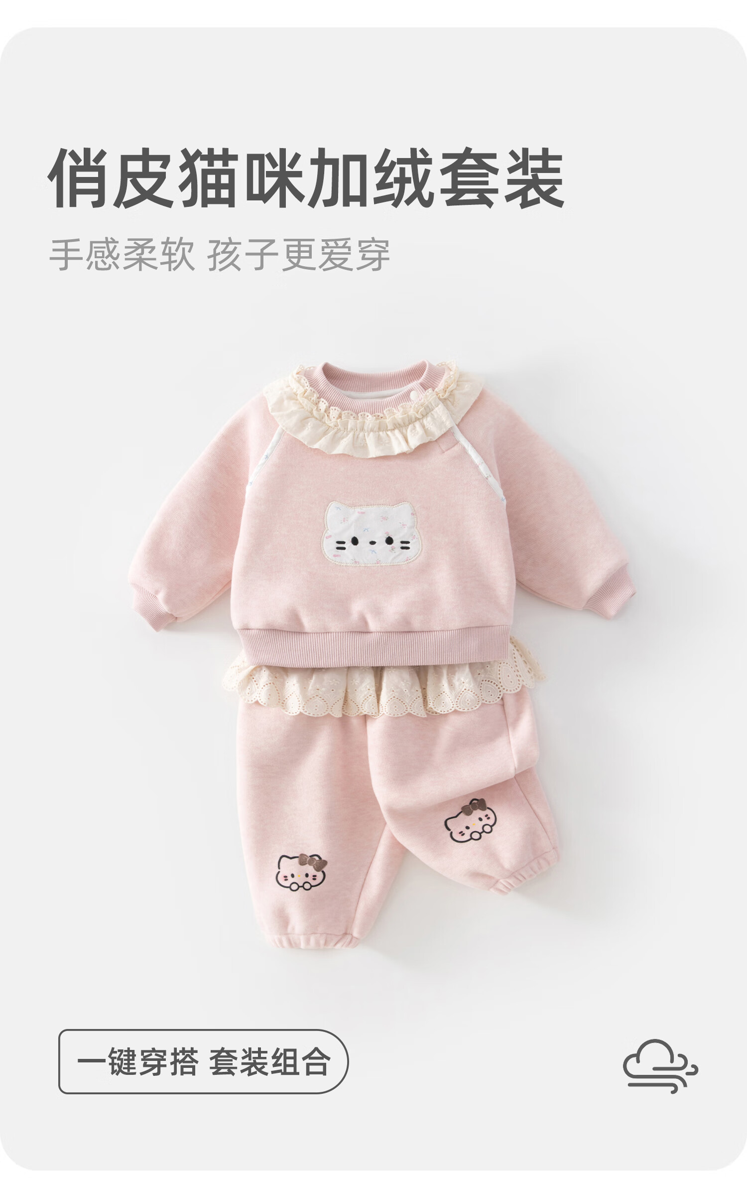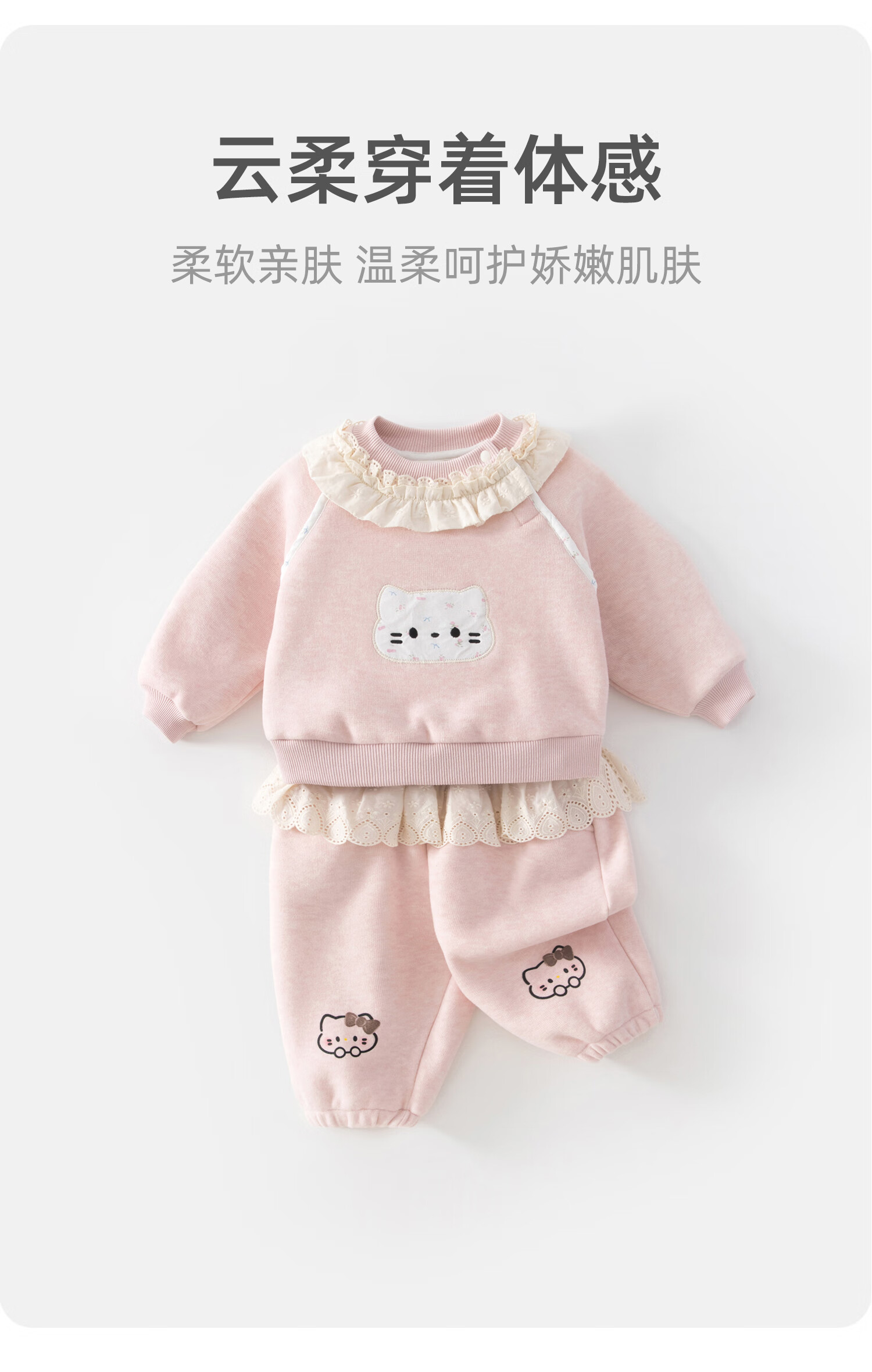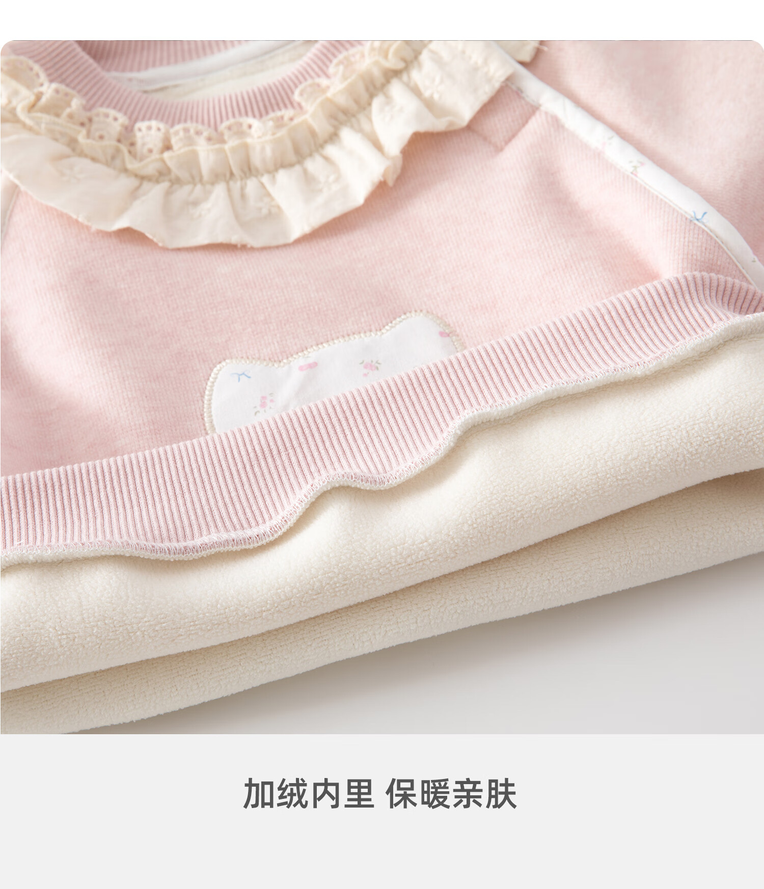 Banxidi Girls Suit Autumn and Winter Clothes 2025 New Children's Velvet Sweater Pants Baby Baby Winter Clothes Children's Clothes Pink 90