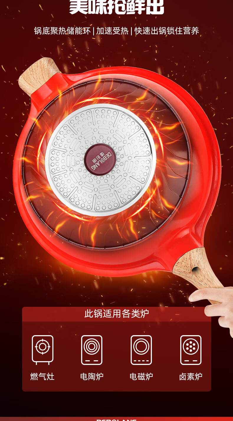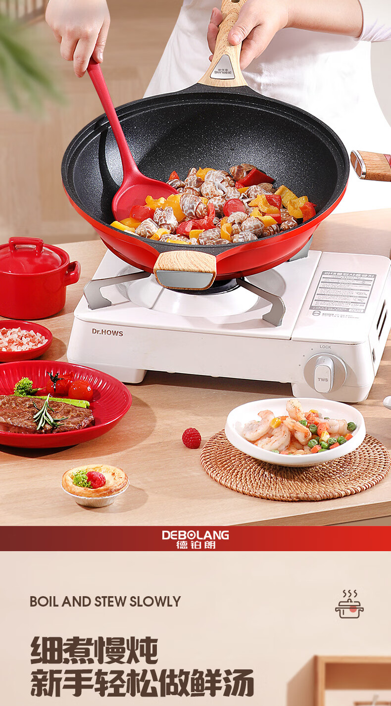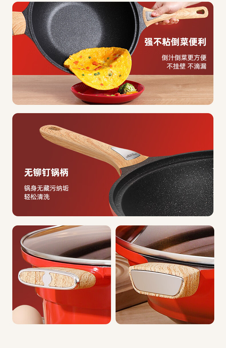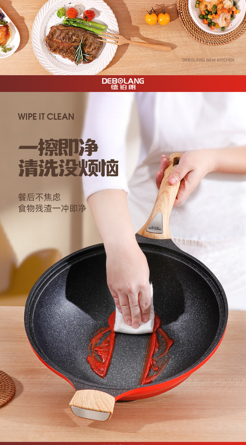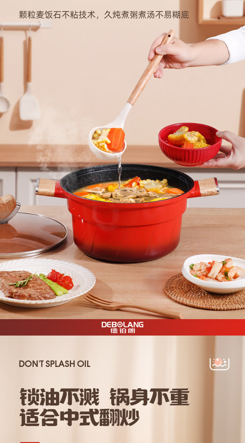 Fat Donglai's same style housewarming gift red micro-pressure wok non-stick pot household medical stone flat-bottomed wok non-stick kitchen utensils 32 gradient color octagonal pot + silicone spatula