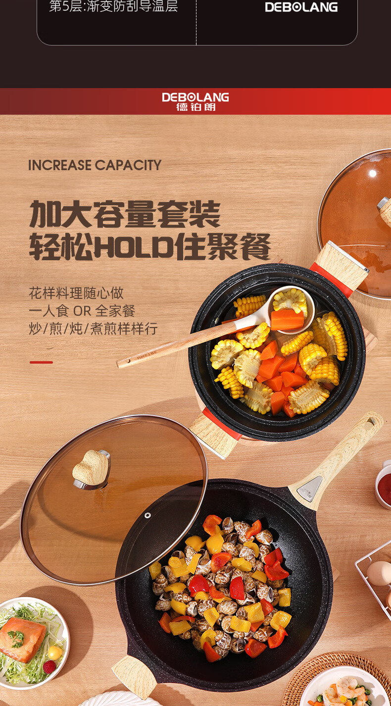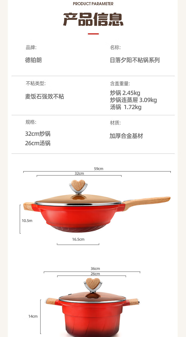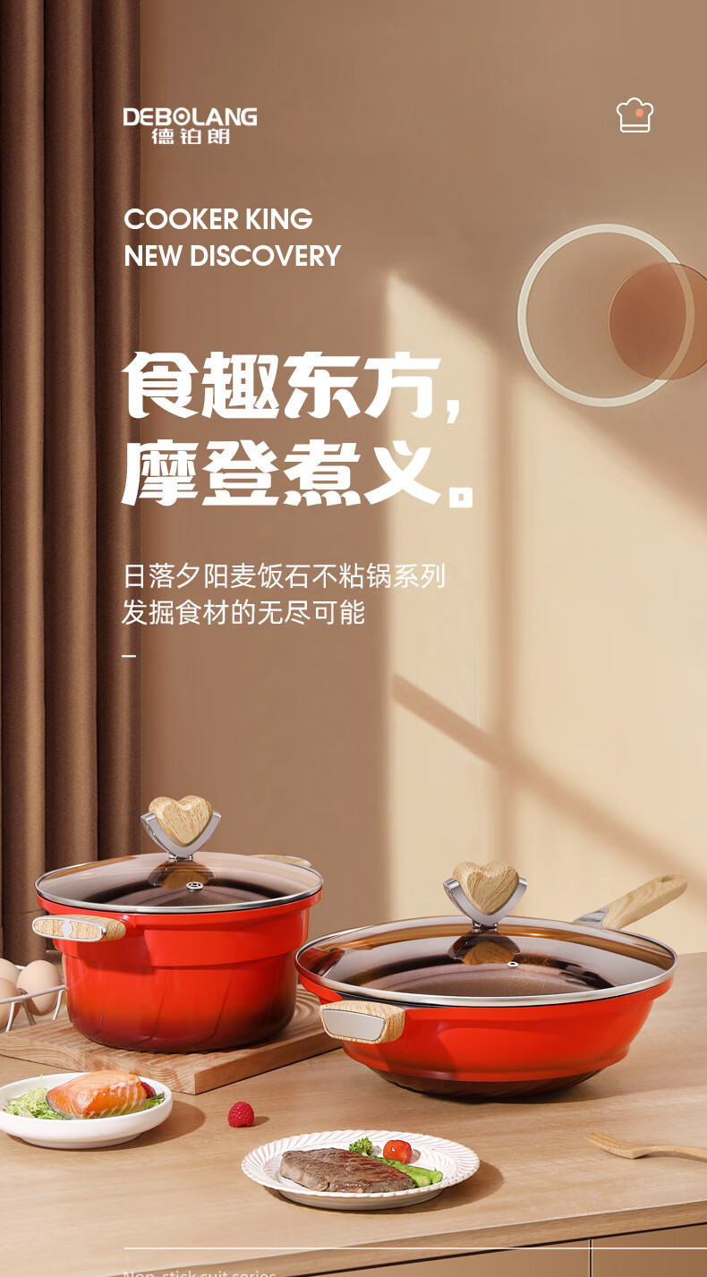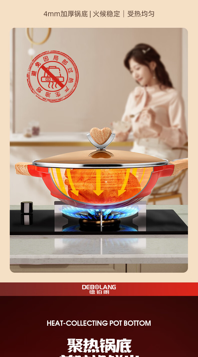 Fat Donglai's same style housewarming gift red micro-pressure wok non-stick pot household medical stone flat-bottomed wok non-stick kitchen utensils 32 gradient color octagonal pot + silicone spatula