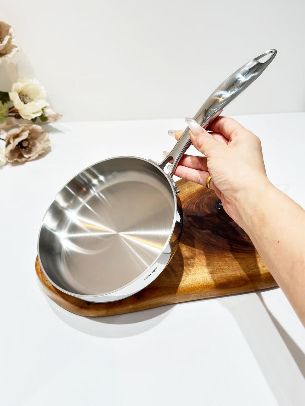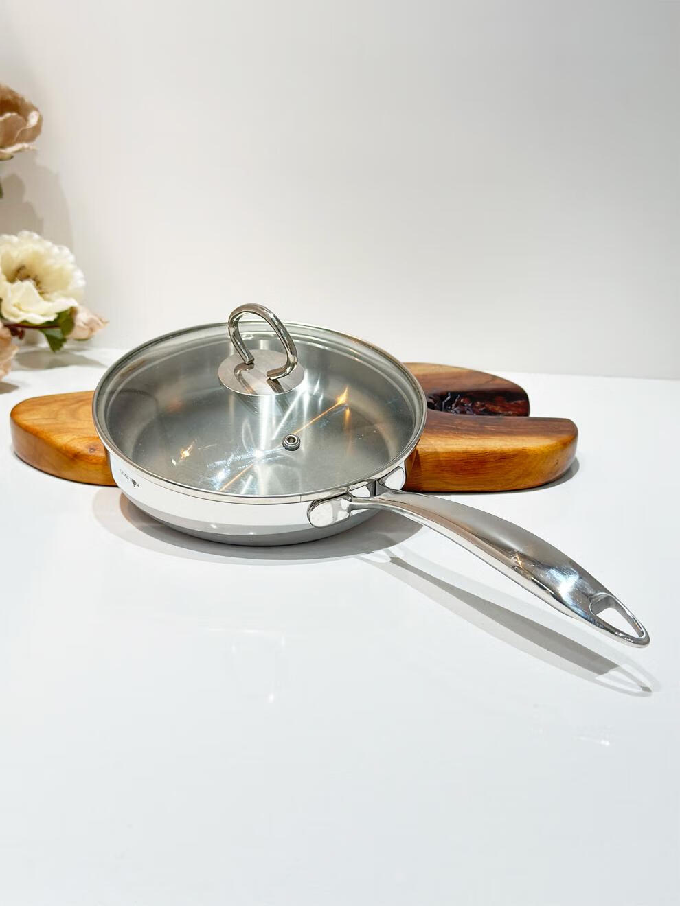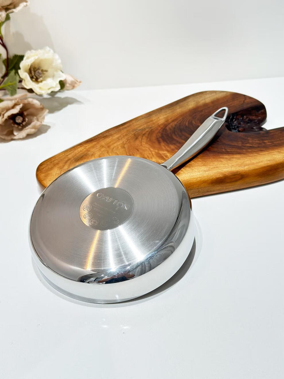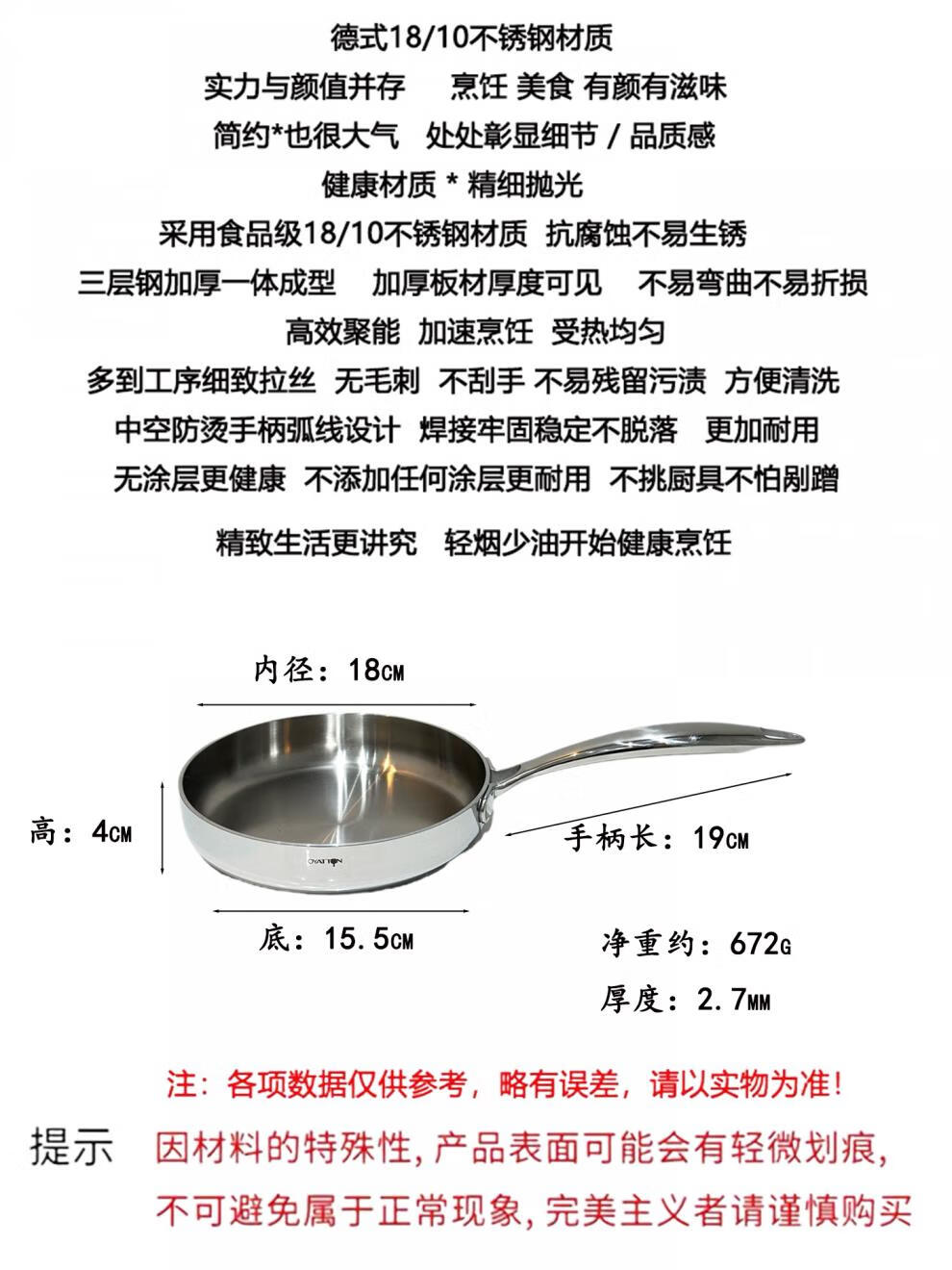 Fat Donglai exports the same style 18/10 stainless steel frying pan household frying pan fried eggs steak pancake pan frying pan 18cm frying pan + stainless steel lid