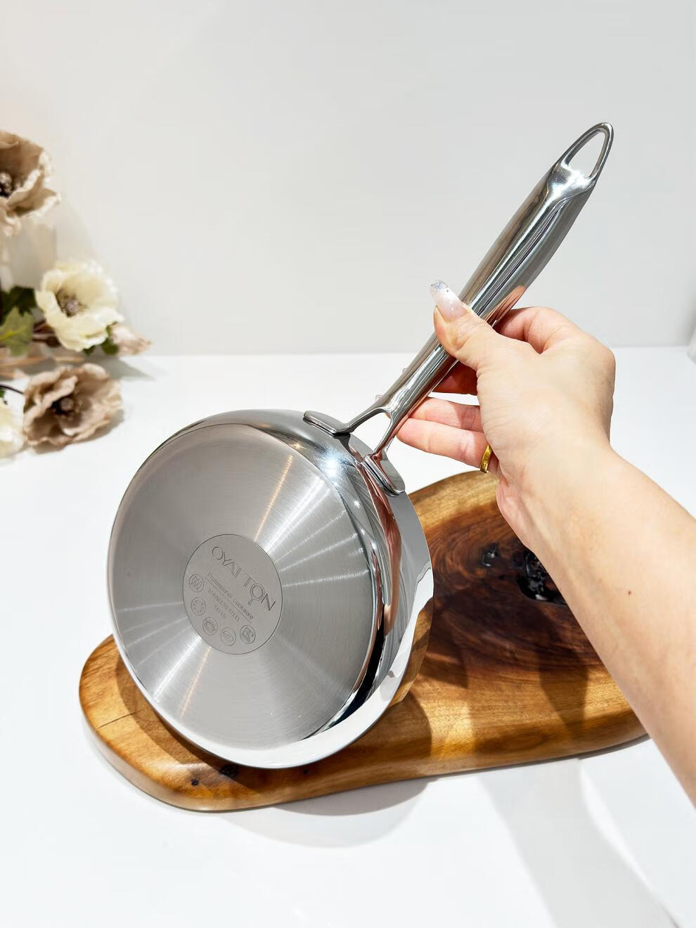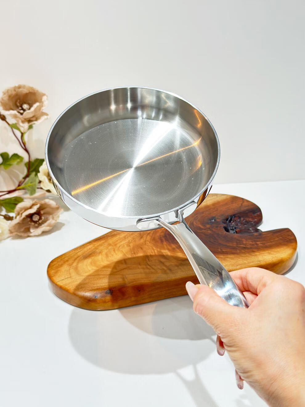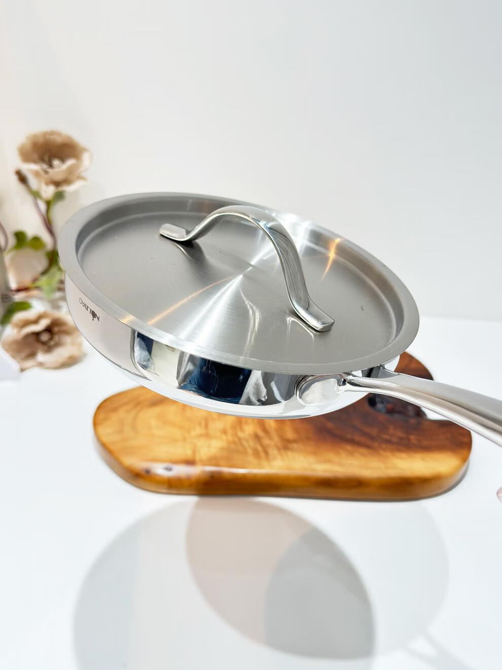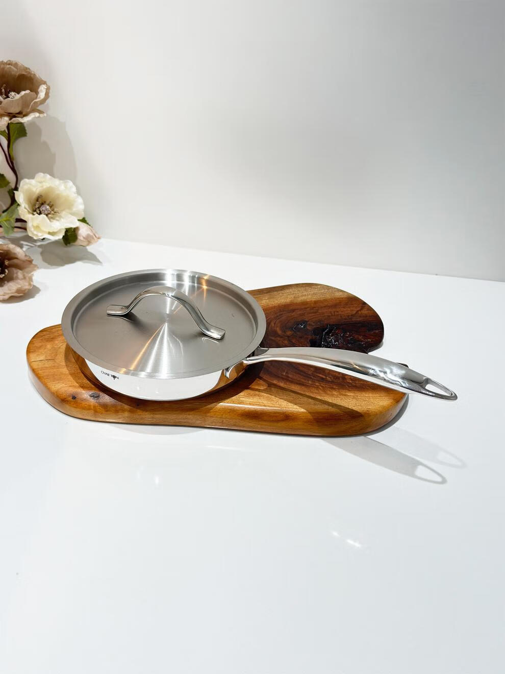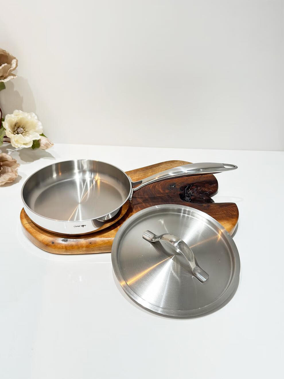 Fat Donglai exports the same style 18/10 stainless steel frying pan household frying pan fried eggs steak pancake pan frying pan 18cm frying pan + stainless steel lid