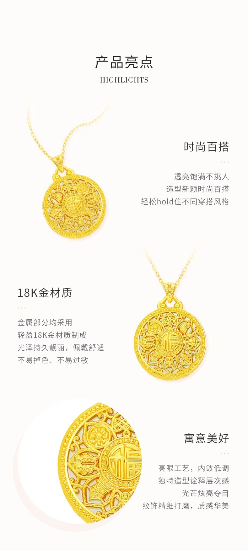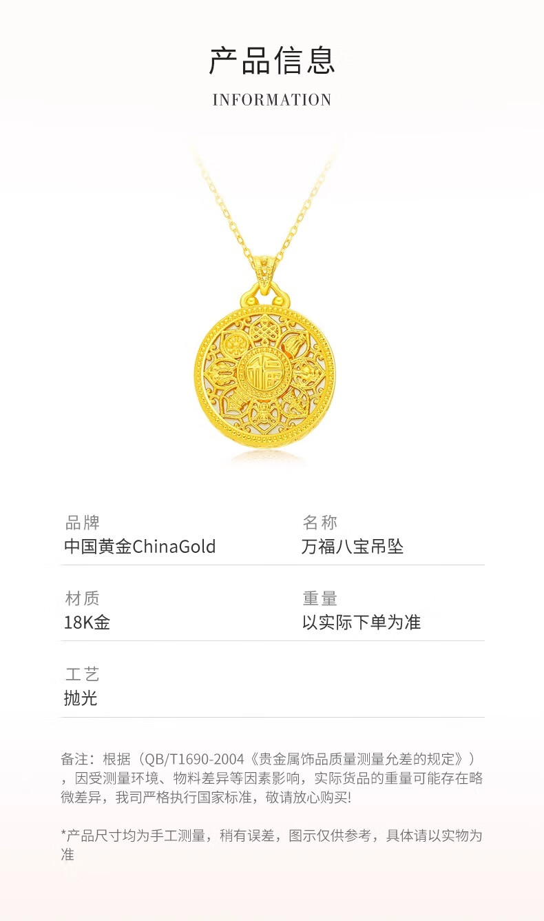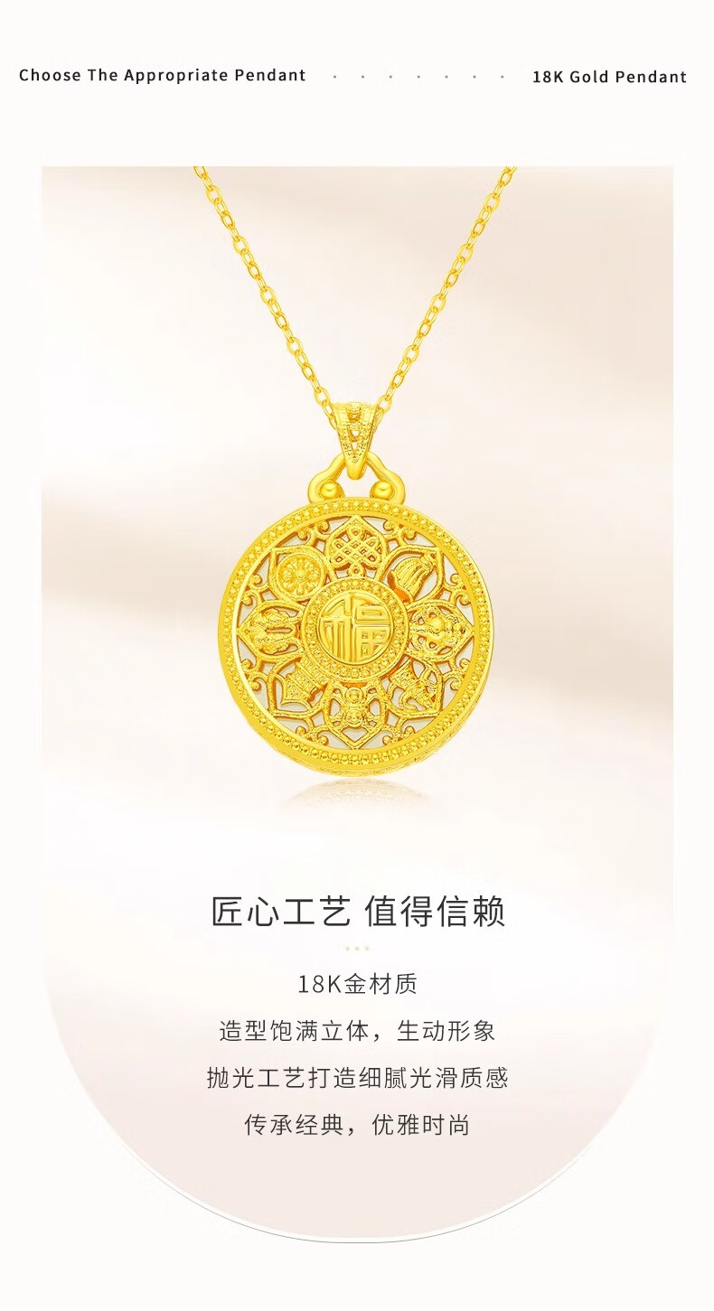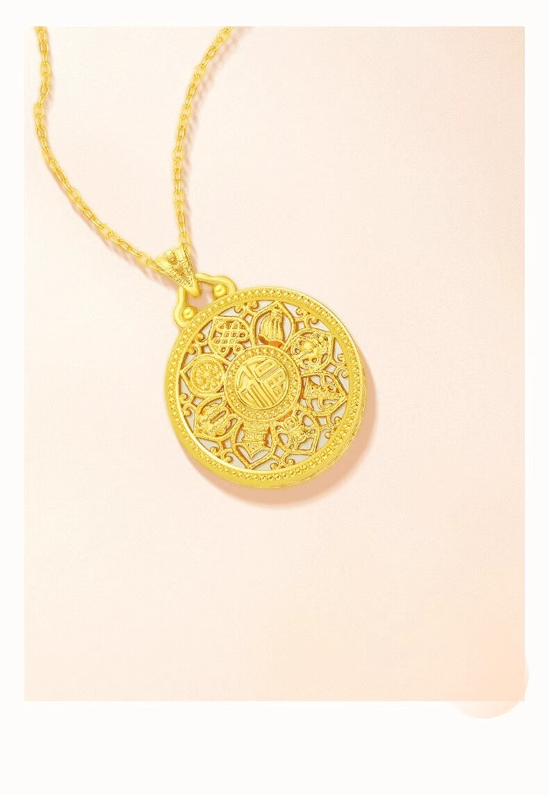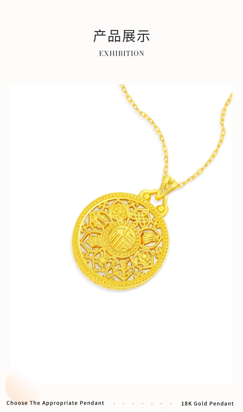 CHINA GOLD 18K Gold Eight Treasures Compass Pendant Women's Pure K Gold Necklace Valentine's Day Birthday Gift for Girlfriend and Wife 18K Gold Eight Treasures Compass Pendant Total Weight Approximately 2.3g Free Silver Chain