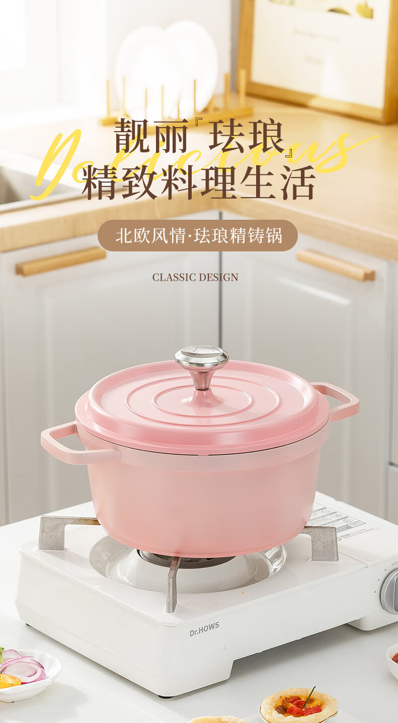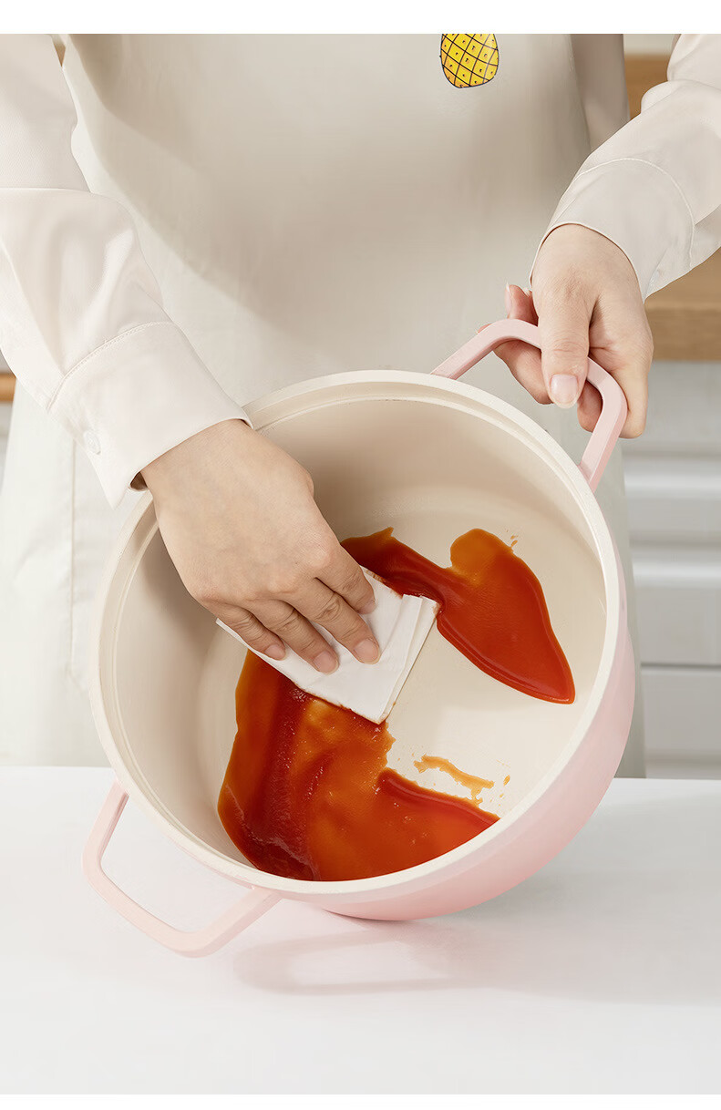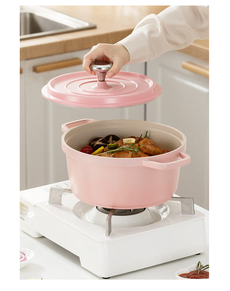 Fat Donglai same style pink high-looking pot household non-stick pot enamel pot kitchen double-ear soup pot induction cooker gas universal pink enlarged 24CM