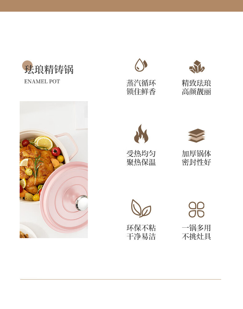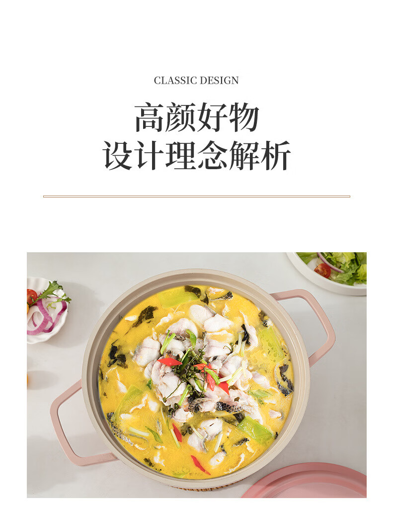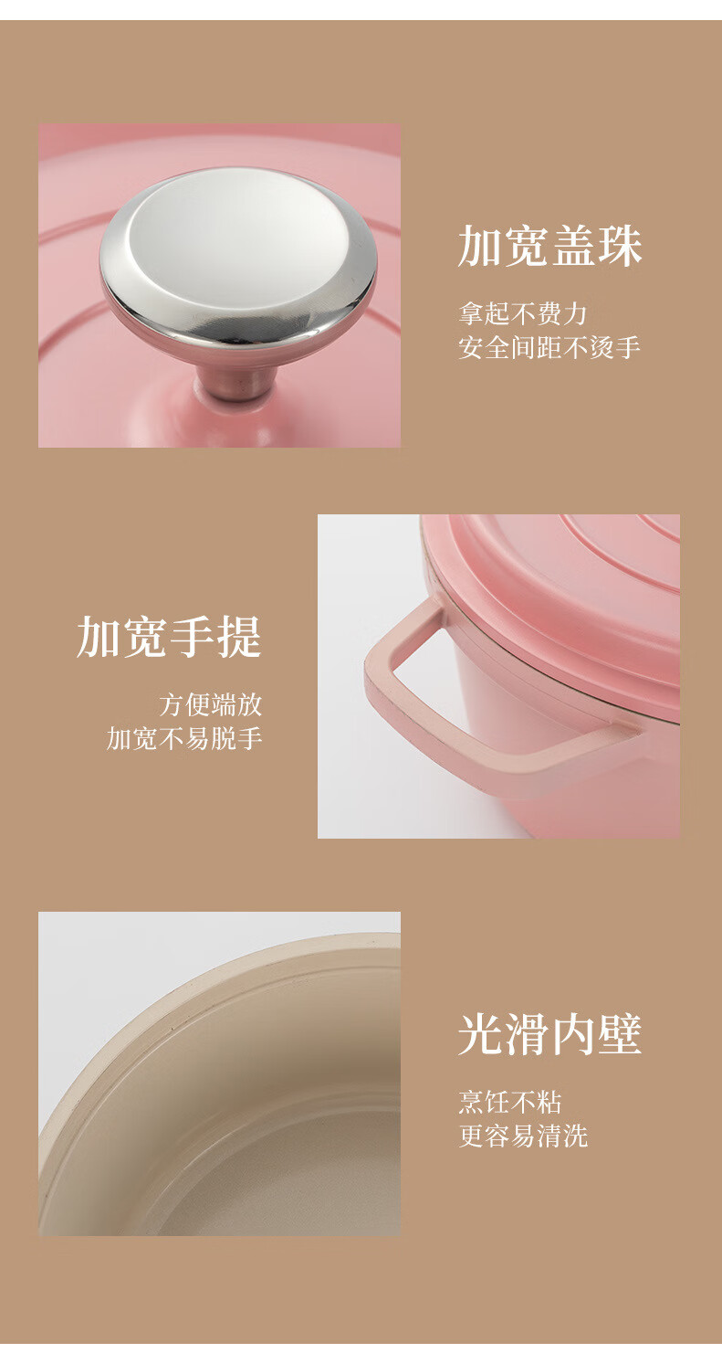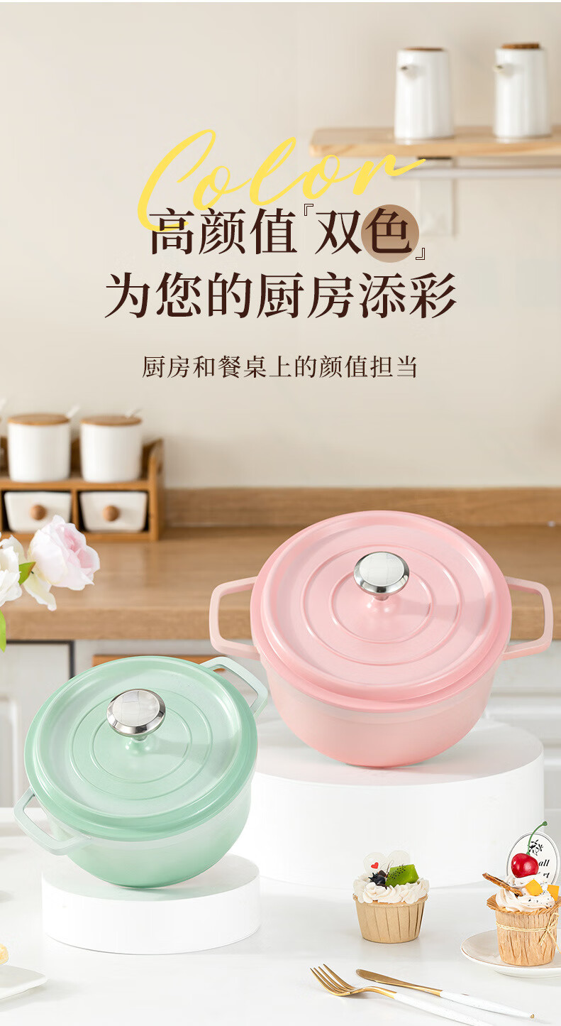 Fat Donglai same style pink high-looking pot household non-stick pot enamel pot kitchen double-ear soup pot induction cooker gas universal pink enlarged 24CM