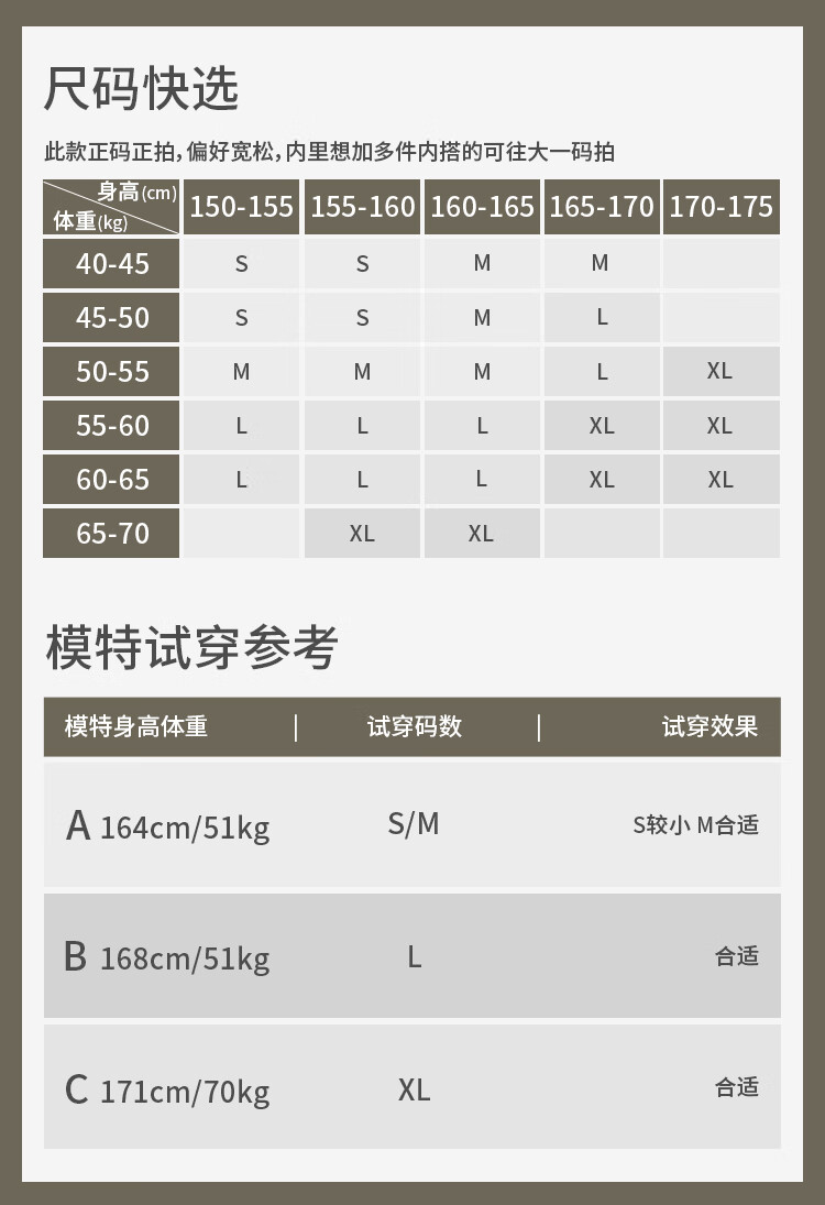 China (cm) 160-165/84-86 165-170 / 88-90 167-172 / 92-96 168-173 / 98-102 170-176 / 106-110