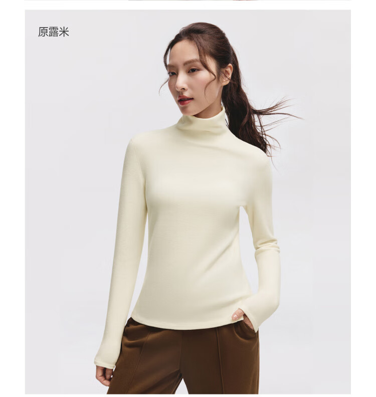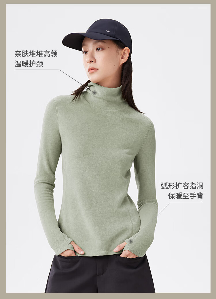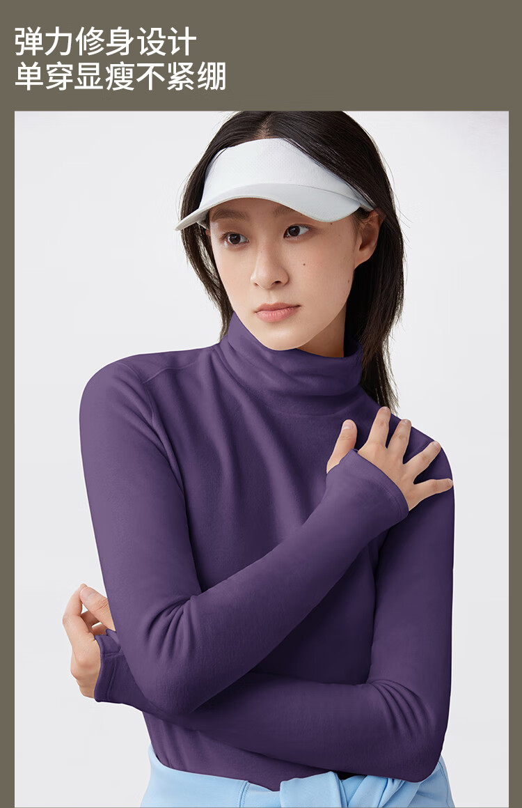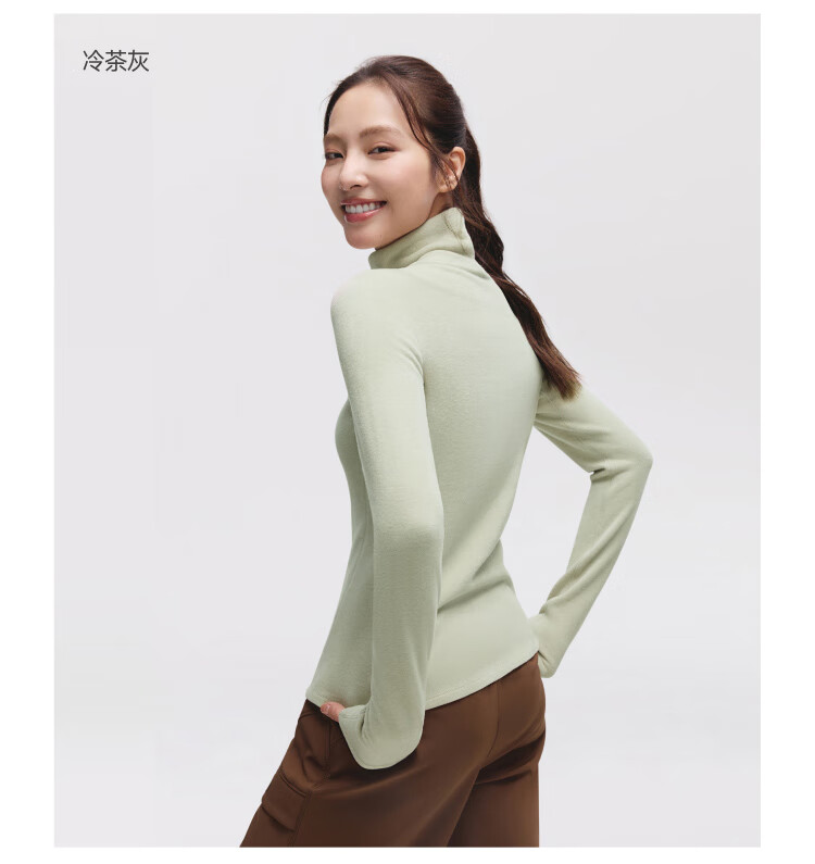 Beneunder bottoming shirt women's turtleneck slim fit autumn and winter new long-sleeved muscle base shirt polar fleece skin-friendly inner top high warmth double-sided velvet cold tea gray L
