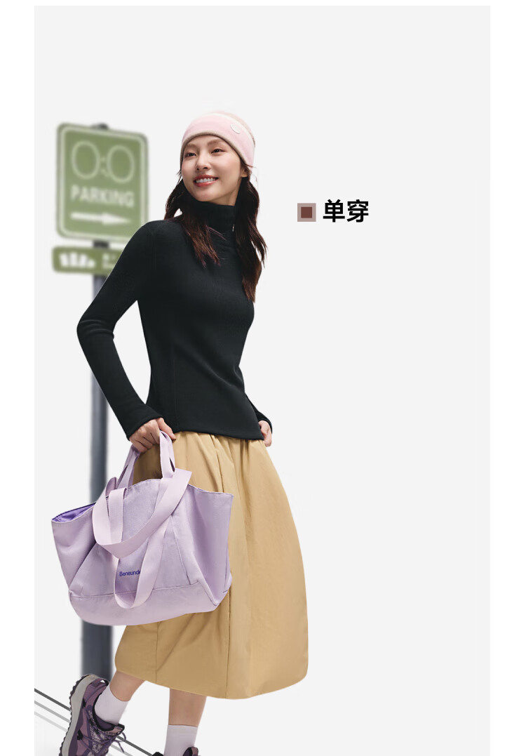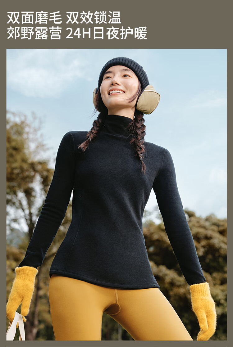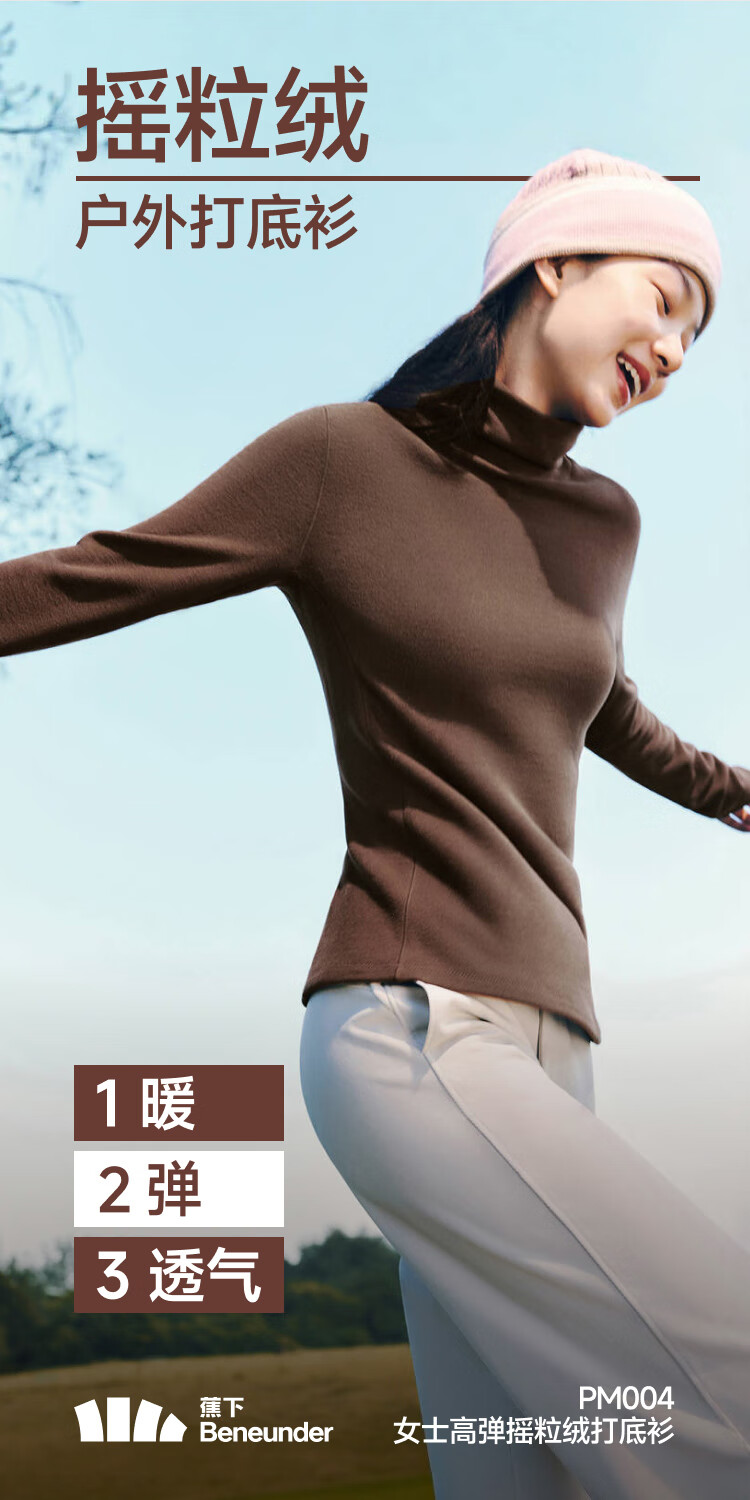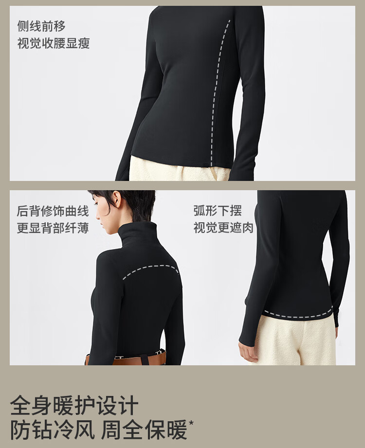 Beneunder bottoming shirt women's turtleneck slim fit autumn and winter new long-sleeved muscle base shirt polar fleece skin-friendly inner top high warmth double-sided velvet cold tea gray L